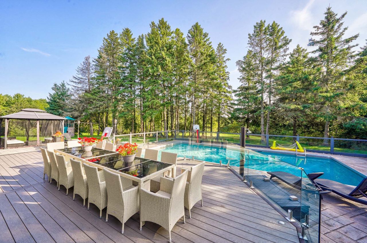 Stunning Home Like Your Own Resort With Forest! Near 5 Acres!Over 6000 Sq Ft Of Total Living Space W/Beautiful Open Concept Layout. Large High Ceiling Family Rm. Customized Luxury Kitchen With High-End Thermador Appliances And Massive Island. Backyard Covered W/lush Greens Surrounded by Dense Trees & Filled With All Kinds Of Recreational Facilities. Large Inground Pool, Hot Tub,Cabana, An Impressive Deck Extends Over The Pool, Round Trampolines And Swing Sets. Main Floor With Steam Sauna! Double Sets of Washer&Dryer! Tons of Recreations In Bsmt! High-Quality Finishes Throughout. You Must See This Perfect Dream Home! Open house on Saturday 2:00-4:00PMAll Appliances. Double Washer & Dryers. 2nd Kitchen On Main. Indoor&Outdoor Full Function Monitoring Devices & Timing Devices.Smart Door Lock System.New AC. New Instant Water Heater. Basketball Court. Garbage RM