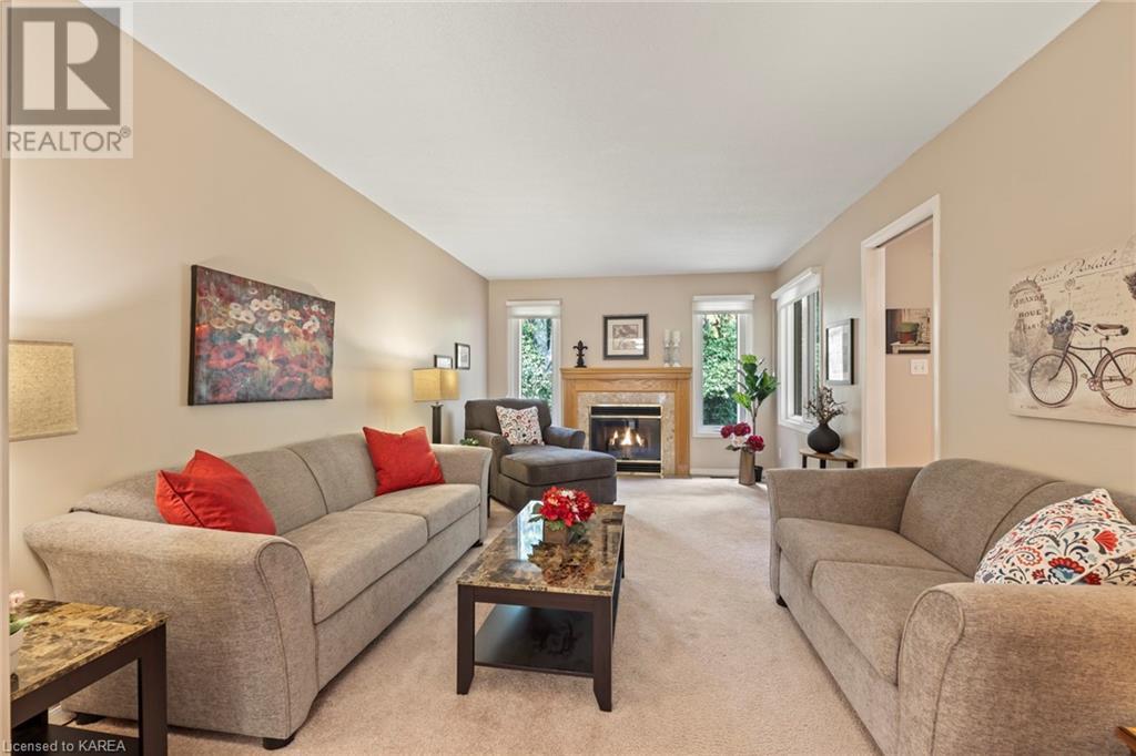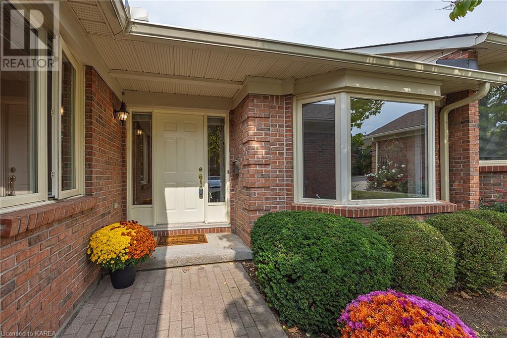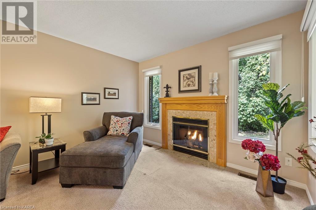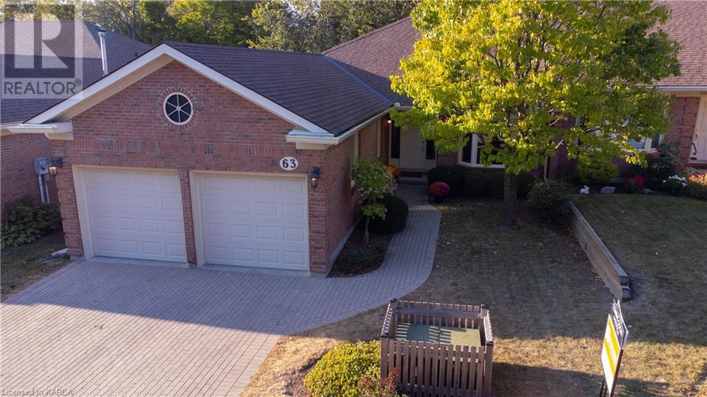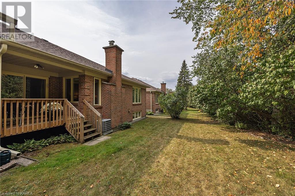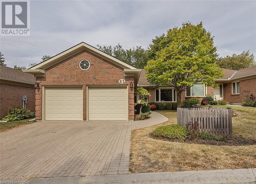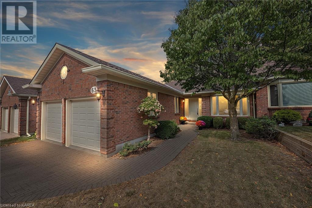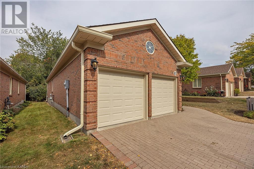 An opportunity awaits in the coveted waterfront community of Rideau Village on Kingston’s east side. This all-brick, well-maintained, semi-detached bungalow has three bedrooms, two full bathrooms and 1630 ft2 of finished space. The dining room features hardwood floors and a sunny bay window filling the room with lots of light. Hardwood floors flow through to the kitchen and dinette area, pairing perfectly with natural maple cabinetry. The spacious family room has a cozy gas fireplace to enjoy on cool autumn nights. Open the sliding patio doors onto the covered deck and private backyard with a beautiful treed view. The large primary bedroom can accommodate a king-sized bed and features a walk-in closet and 4-piece ensuite with a separate shower and soaker tub. There are two more bedrooms for family, guests or a home office. The convenient main floor laundry has direct inside entry to the two-car garage. The lower level awaits your future plans for finishing and boasts an abundance of storage space. Professionally painted throughout and fully-equipped with appliances. Exterior maintenance including landscaping and snow removal is covered by the condominium corporation. Be a part of the carefree lifestyle this community has to offer, swim in the private outdoor pool or a walk along the trails. Conveniently located just minutes to downtown and surrounded by amenities. Don’t wait! (id:22211)
