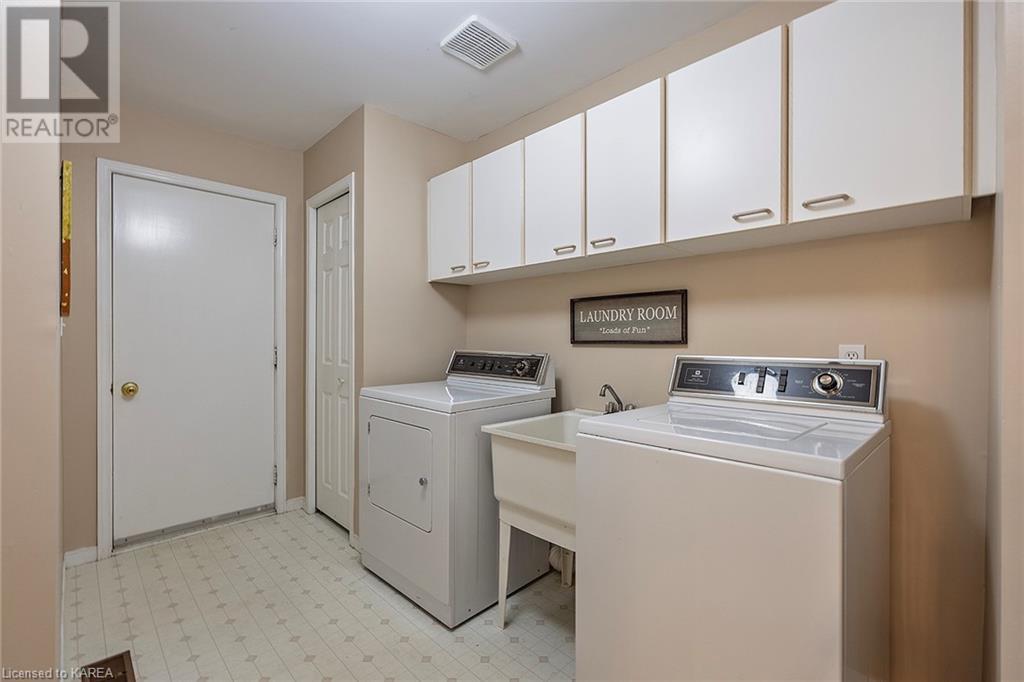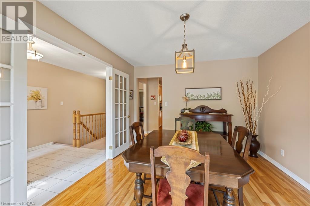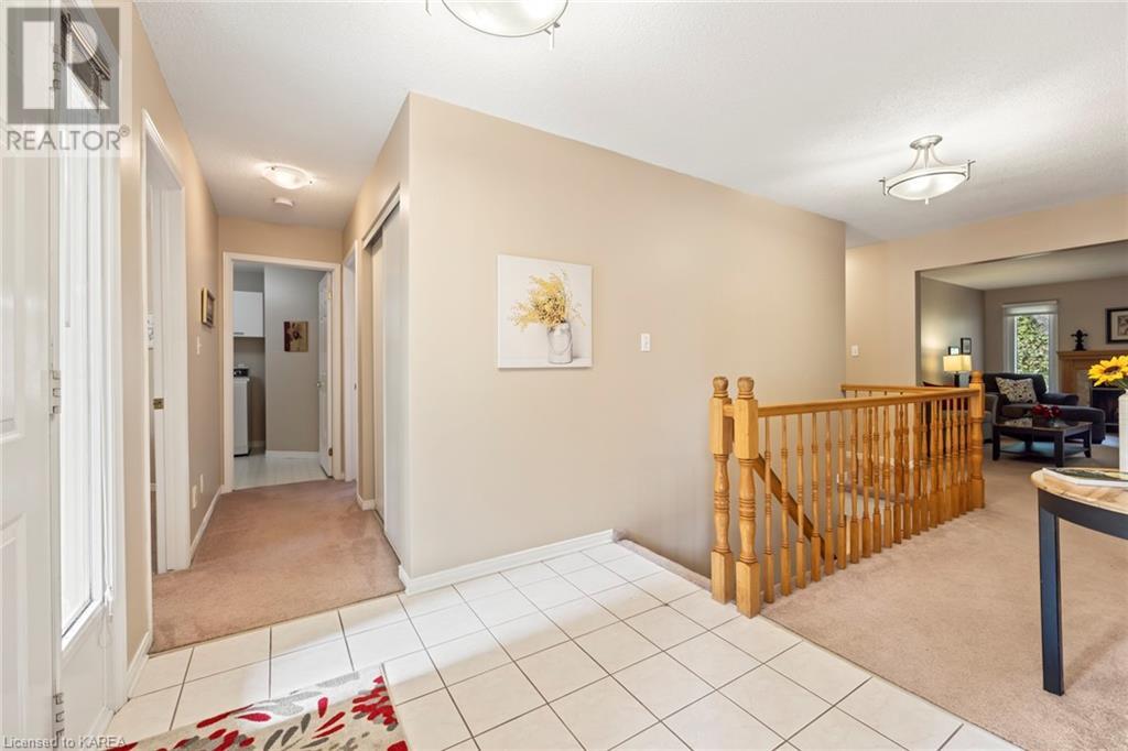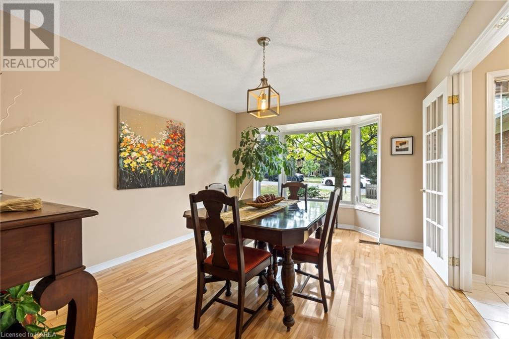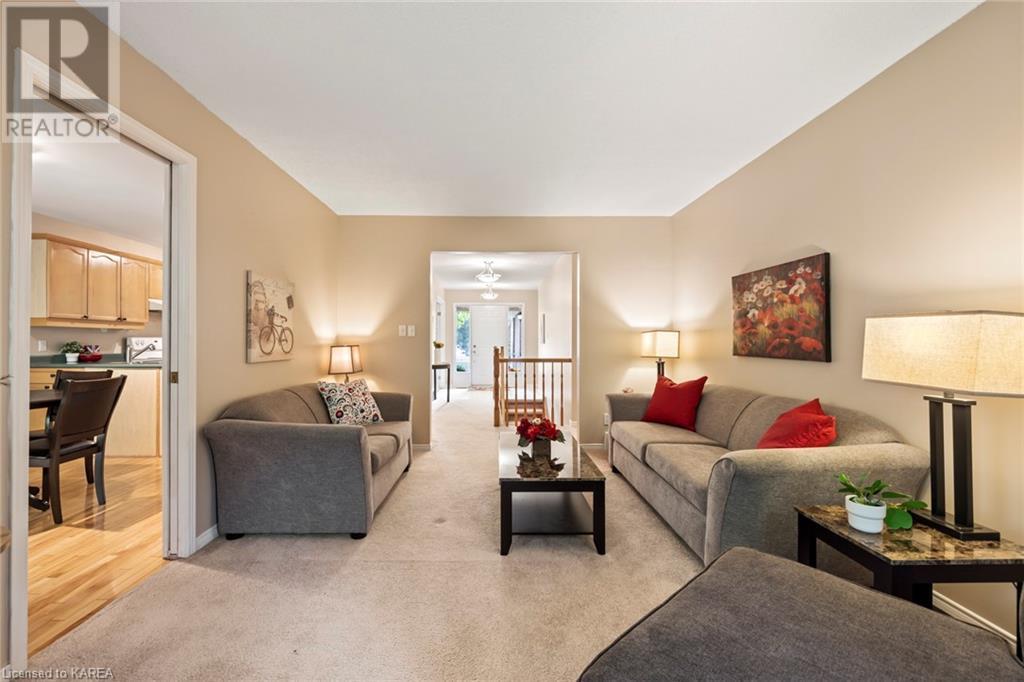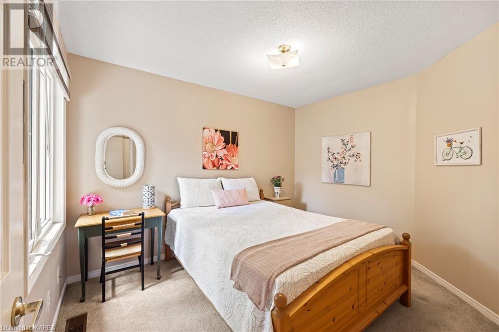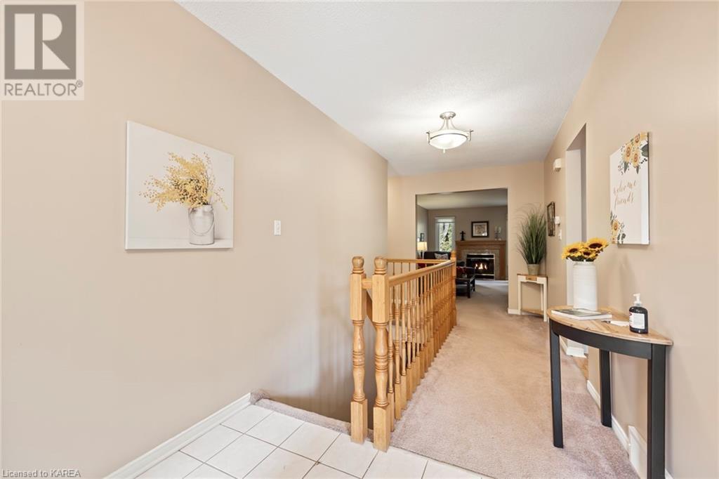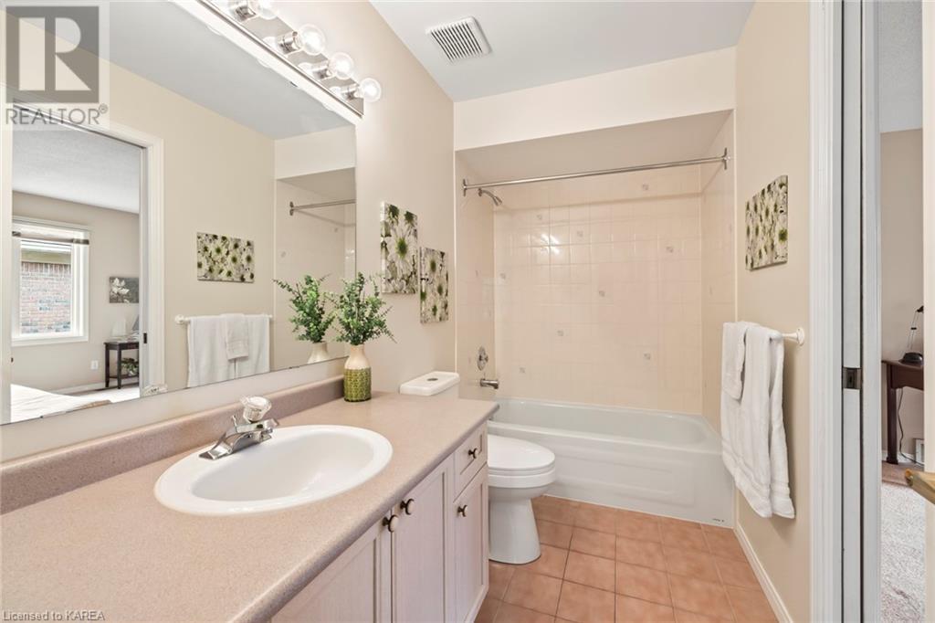 An opportunity awaits in the coveted waterfront community of Rideau Village on Kingston’s east side. This all-brick, well-maintained, semi-detached bungalow has three bedrooms, two full bathrooms and 1630 ft2 of finished space. The dining room features hardwood floors and a sunny bay window filling the room with lots of light. Hardwood floors flow through to the kitchen and dinette area, pairing perfectly with natural maple cabinetry. The spacious family room has a cozy gas fireplace to enjoy on cool autumn nights. Open the sliding patio doors onto the covered deck and private backyard with a beautiful treed view. The large primary bedroom can accommodate a king-sized bed and features a walk-in closet and 4-piece ensuite with a separate shower and soaker tub. There are two more bedrooms for family, guests or a home office. The convenient main floor laundry has direct inside entry to the two-car garage. The lower level awaits your future plans for finishing and boasts an abundance of storage space. Professionally painted throughout and fully-equipped with appliances. Exterior maintenance including landscaping and snow removal is covered by the condominium corporation. Be a part of the carefree lifestyle this community has to offer, swim in the private outdoor pool or a walk along the trails. Conveniently located just minutes to downtown and surrounded by amenities. Don’t wait! (id:22211)