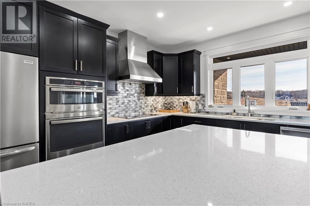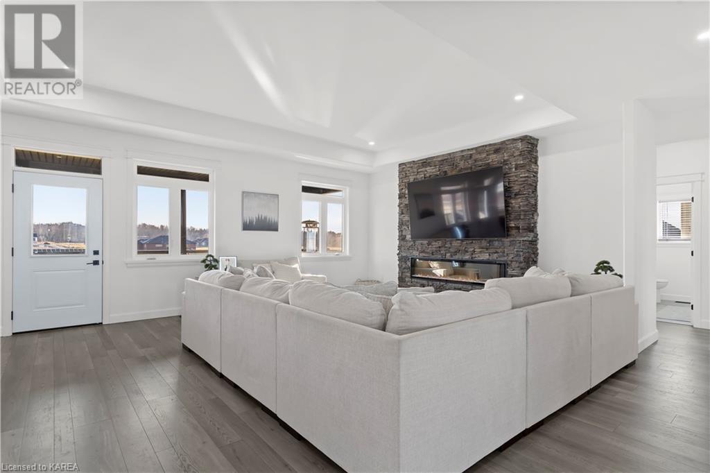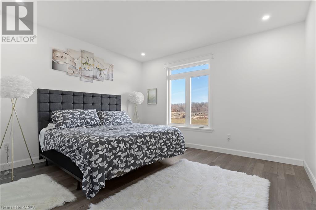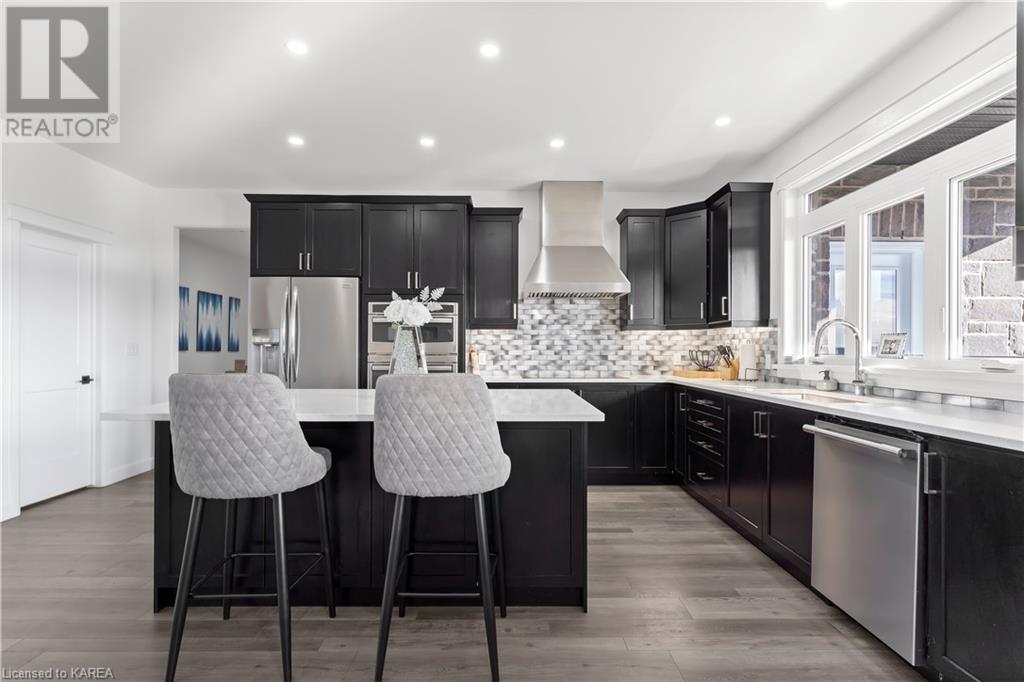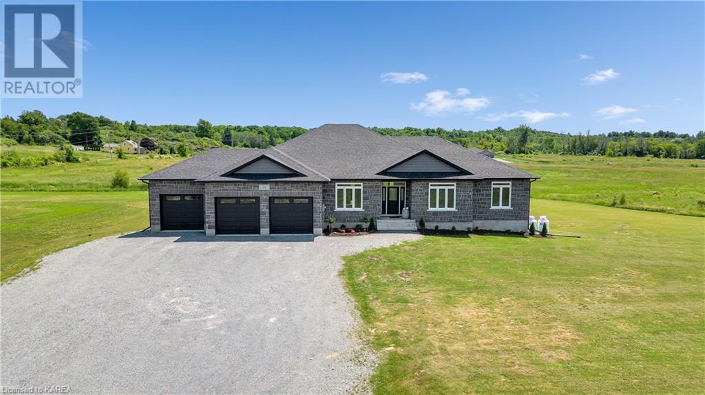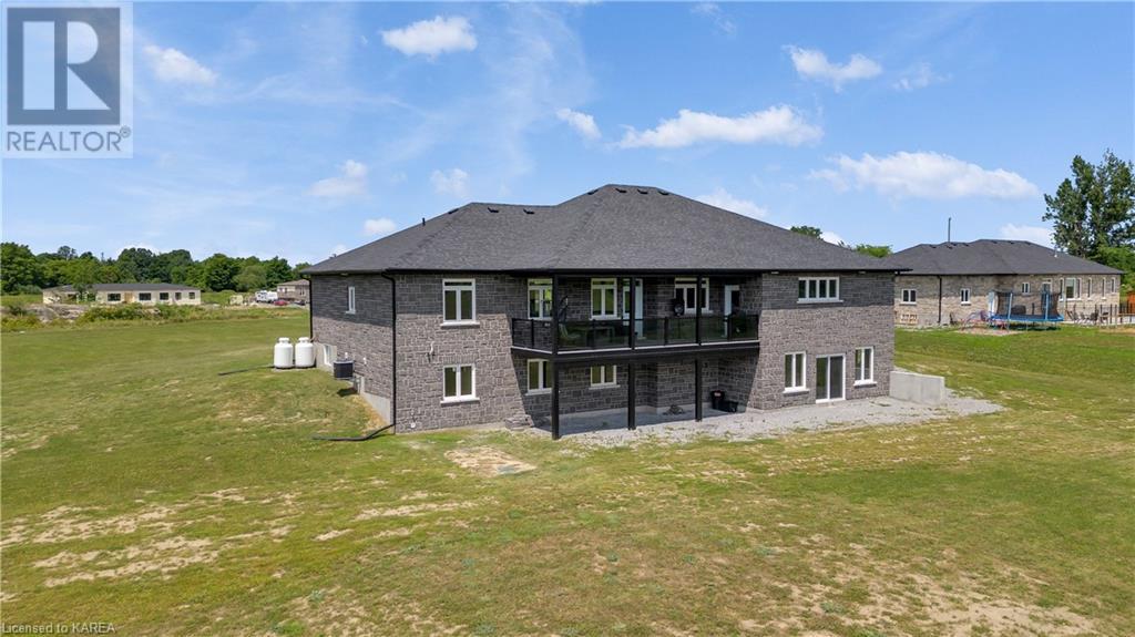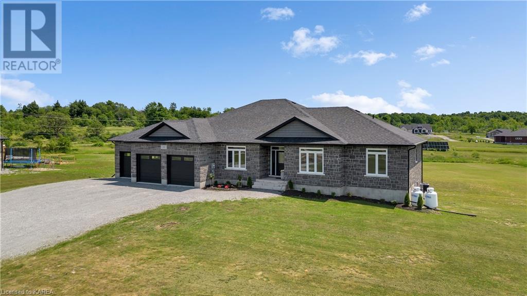 Gibraltar Estates one of Kingston's newest premier Estate Lot communities now offers some of Kingston's finest new construction homes and this is one of them! The flexible floorplan offers 3+3 bedrooms with the potential for a 4th bedroom on the main level. Built without compromise in October of 2021 and fully finished on both levels by the builder creating appx 5,000 sq ft of finished living space, this modern / elegant all custom bungalow features an Estate stone exterior, triple car garage, covered rear deck and a jaw dropping lower level, that offers inlaw suite potential with separate entrance! Once you enter the front foyer, you really get a sense of what the home owner in collaboration with the designer created. The Open concept M/L Floorplan is an entertainers dream and one space flows effortlessly into another. Quartz counters, massive center Island, walk in panty and SS appliances accent the spacious main level kitchen. Butlers pantry with its own Quartz counters, sink and beverage fridge balances between the kitchen and formal dining area creating easy access from both locations. Vaulted 10 ft ceilings in the living room and tray ceilings in the formal Dining Room create a wonderful contrast between each space. The extensive use of pot lighting and tasteful trim throughout the home is thoughtful and impressive. Stepping out onto your covered deck to relax and watch the sunset is a great way to end the day! The owner wanted the lower level finishing's to be equally matched to the main level and it is, complete with large sliding doors and bright windows that flood the space with light. 3 generous bedrooms, 4pc bath, kitchen/Dining area open to the living space is bright and impressive. This level also includes laundry facilities. Just minutes north of the city, but still in the city limits, makes this home ideally located to be downtown Kingston in minutes. An extensive list of upgrades has been attached to listing in the documents section. (id:22211)