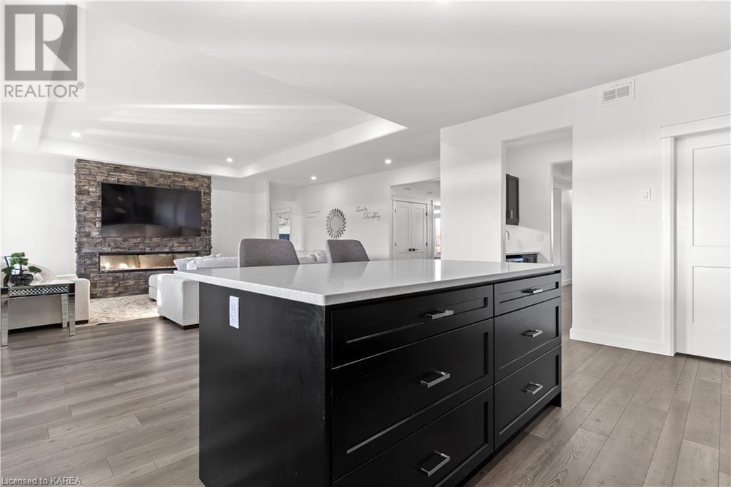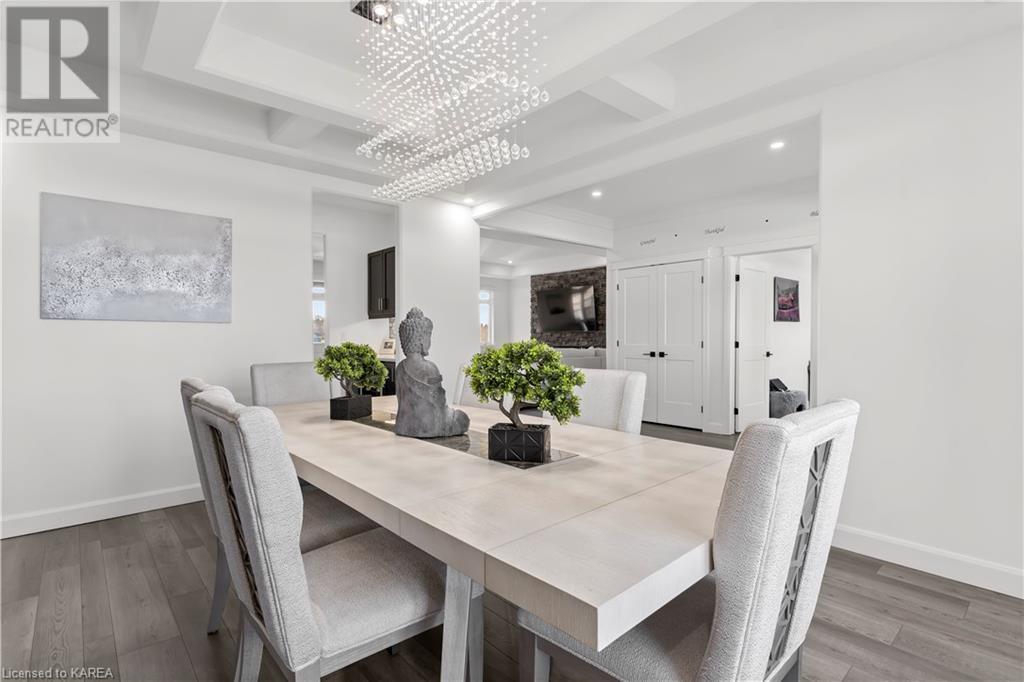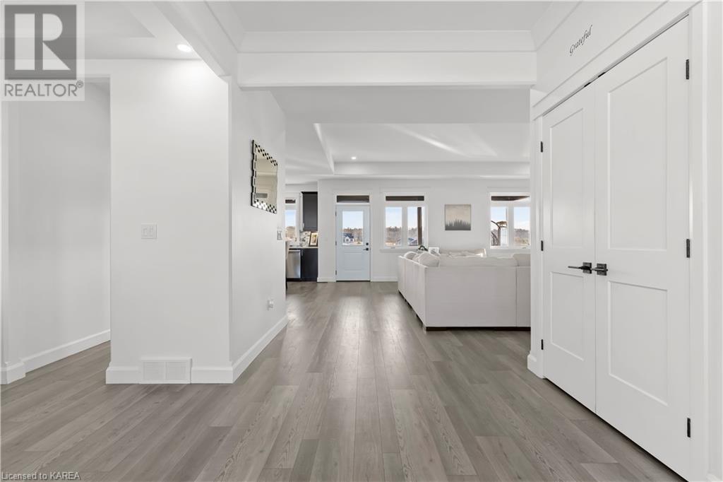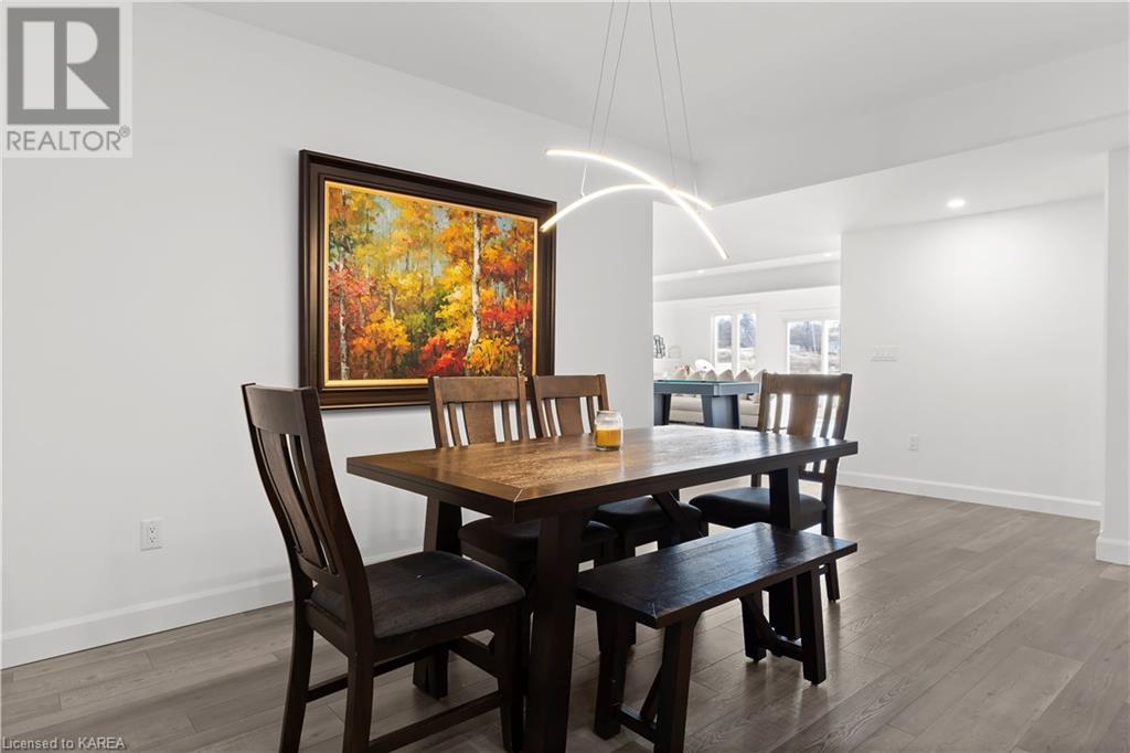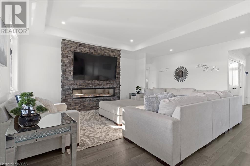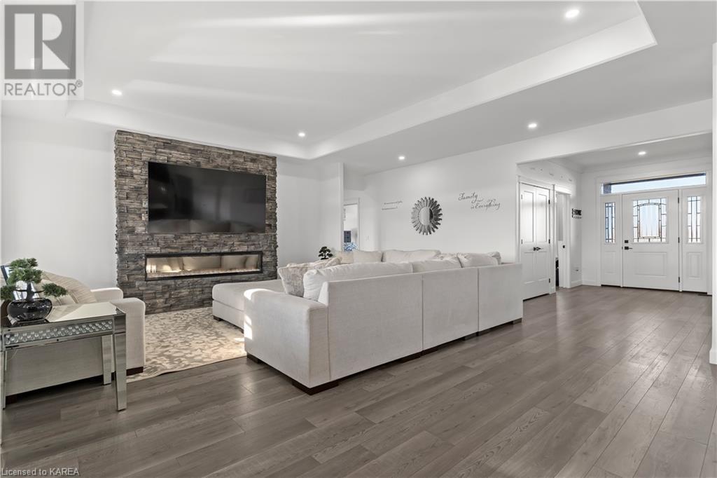 Gibraltar Estates one of Kingston's newest premier Estate Lot communities now offers some of Kingston's finest new construction homes and this is one of them! The flexible floorplan offers 3+3 bedrooms with the potential for a 4th bedroom on the main level. Built without compromise in October of 2021 and fully finished on both levels by the builder creating appx 5,000 sq ft of finished living space, this modern / elegant all custom bungalow features an Estate stone exterior, triple car garage, covered rear deck and a jaw dropping lower level, that offers inlaw suite potential with separate entrance! Once you enter the front foyer, you really get a sense of what the home owner in collaboration with the designer created. The Open concept M/L Floorplan is an entertainers dream and one space flows effortlessly into another. Quartz counters, massive center Island, walk in panty and SS appliances accent the spacious main level kitchen. Butlers pantry with its own Quartz counters, sink and beverage fridge balances between the kitchen and formal dining area creating easy access from both locations. Vaulted 10 ft ceilings in the living room and tray ceilings in the formal Dining Room create a wonderful contrast between each space. The extensive use of pot lighting and tasteful trim throughout the home is thoughtful and impressive. Stepping out onto your covered deck to relax and watch the sunset is a great way to end the day! The owner wanted the lower level finishing's to be equally matched to the main level and it is, complete with large sliding doors and bright windows that flood the space with light. 3 generous bedrooms, 4pc bath, kitchen/Dining area open to the living space is bright and impressive. This level also includes laundry facilities. Just minutes north of the city, but still in the city limits, makes this home ideally located to be downtown Kingston in minutes. An extensive list of upgrades has been attached to listing in the documents section. (id:22211)