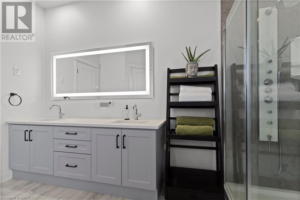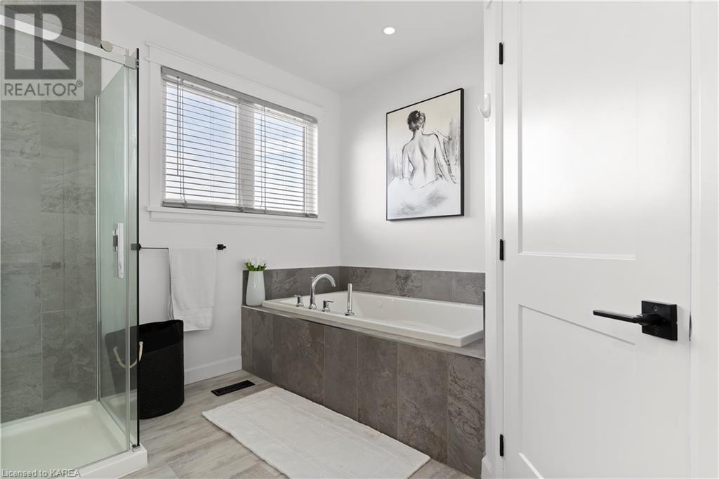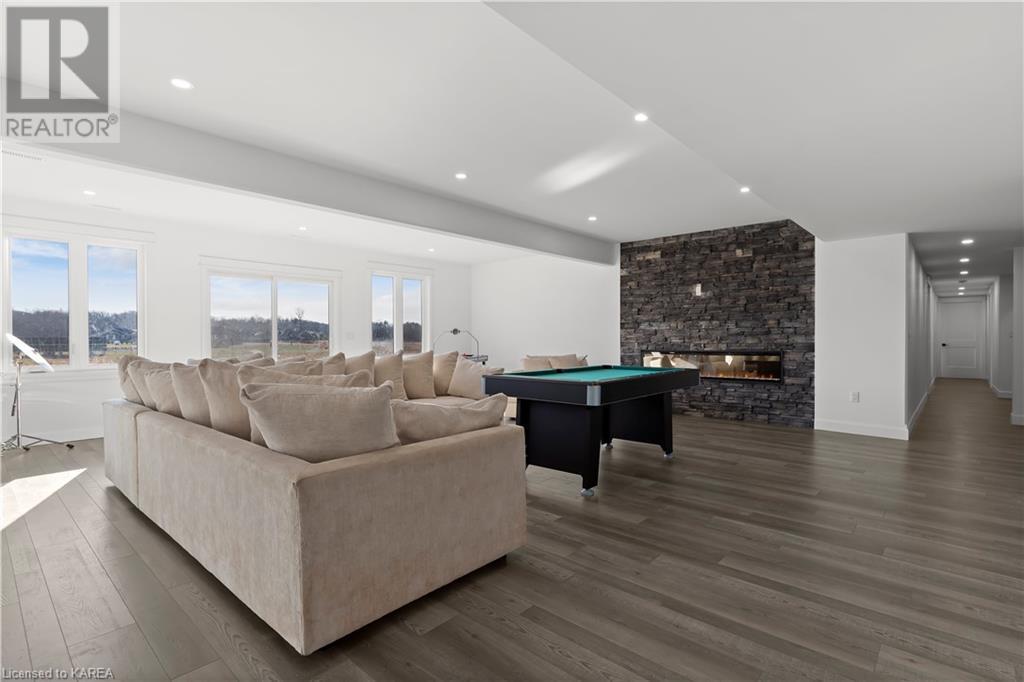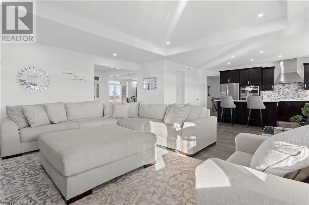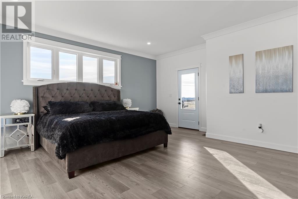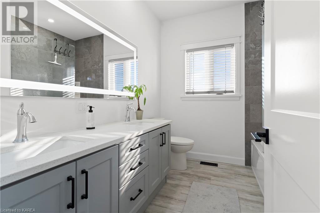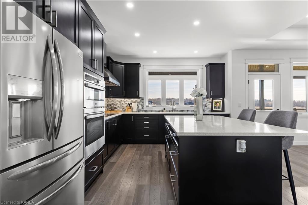 Gibraltar Estates one of Kingston's newest premier Estate Lot communities now offers some of Kingston's finest new construction homes and this is one of them! The flexible floorplan offers 3+3 bedrooms with the potential for a 4th bedroom on the main level. Built without compromise in October of 2021 and fully finished on both levels by the builder creating appx 5,000 sq ft of finished living space, this modern / elegant all custom bungalow features an Estate stone exterior, triple car garage, covered rear deck and a jaw dropping lower level, that offers inlaw suite potential with separate entrance! Once you enter the front foyer, you really get a sense of what the home owner in collaboration with the designer created. The Open concept M/L Floorplan is an entertainers dream and one space flows effortlessly into another. Quartz counters, massive center Island, walk in panty and SS appliances accent the spacious main level kitchen. Butlers pantry with its own Quartz counters, sink and beverage fridge balances between the kitchen and formal dining area creating easy access from both locations. Vaulted 10 ft ceilings in the living room and tray ceilings in the formal Dining Room create a wonderful contrast between each space. The extensive use of pot lighting and tasteful trim throughout the home is thoughtful and impressive. Stepping out onto your covered deck to relax and watch the sunset is a great way to end the day! The owner wanted the lower level finishing's to be equally matched to the main level and it is, complete with large sliding doors and bright windows that flood the space with light. 3 generous bedrooms, 4pc bath, kitchen/Dining area open to the living space is bright and impressive. This level also includes laundry facilities. Just minutes north of the city, but still in the city limits, makes this home ideally located to be downtown Kingston in minutes. An extensive list of upgrades has been attached to listing in the documents section. (id:22211)