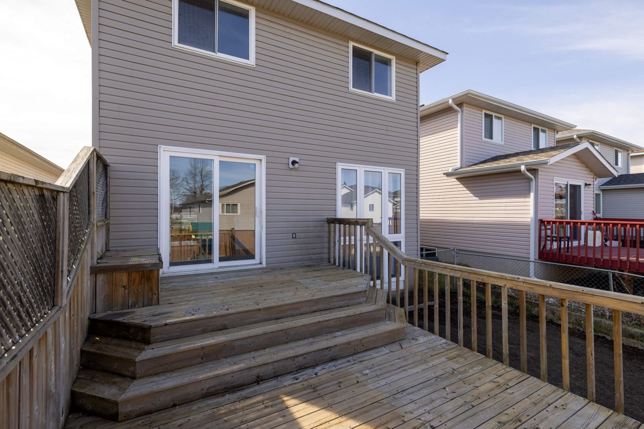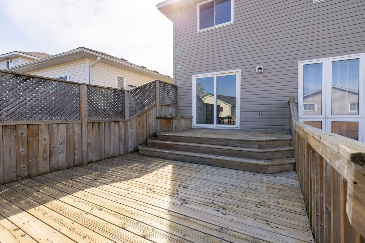Move-in ready and thoughtfully updated, this charming two-storey home is located in a family-friendly West End neighbourhood close to parks, schools, and amenities. Built 2003, the property offers 3 bedrooms, 1.5 bathrooms, and a host of recent upgrades for peace of mind and style. Inside, you'll find freshly painted interiors (including ceilings, doors, and closets), new 12mm laminate flooring throughout the main, second floor, and basement, and luxury waterproof vinyl in the kitchen, bathrooms, and entrance. The kitchen shines with professionally painted cabinetry, new quartz countertops, a polished ceramic backsplash, and a new stainless steel sink, complemented by Samsung stainless steel appliances (approximately 4 years old). Additional features include a rough-in for a bathroom in the basement, central vac, newly installed light fixtures and ceiling fans, and a new garage door opener. The deck has been pressure washed and prepped for staining. Major mechanical updates include a brand-new AC (July 2024), new roof (2022, with 10-year warranty), and original but well-maintained furnace (serviced in 2024). The curb appeal is enhanced with a new sidewalk to the front entrance, painted garage and utility room floors, and updated landscaping. A wonderful opportunity to own a meticulously cared-for home just move in and enjoy!
