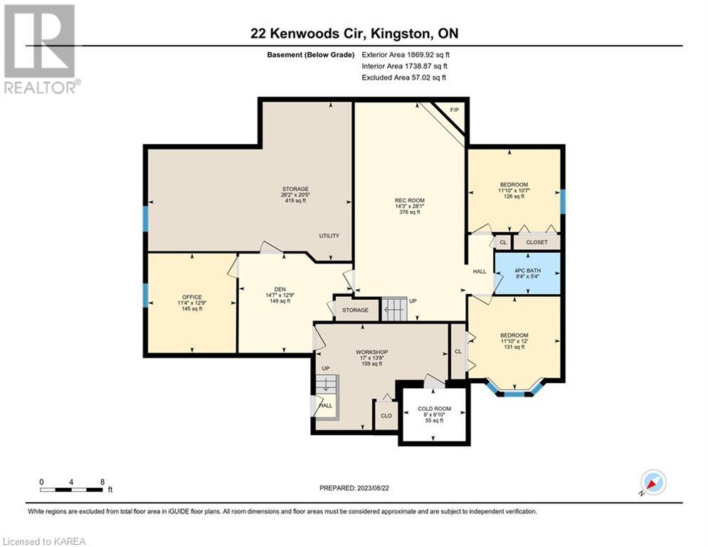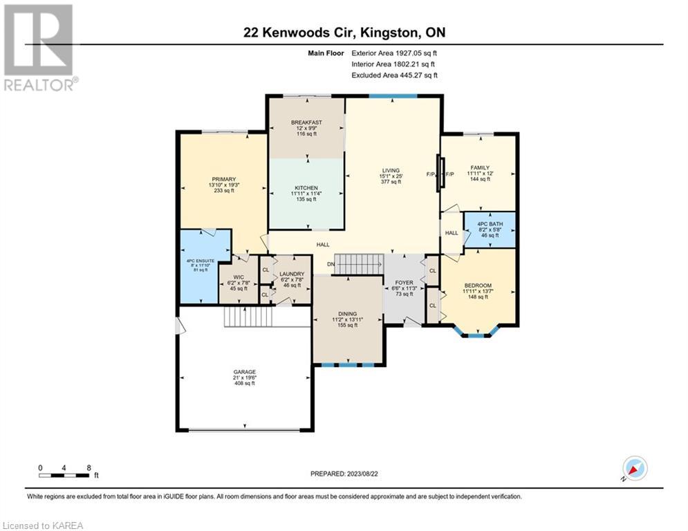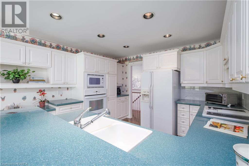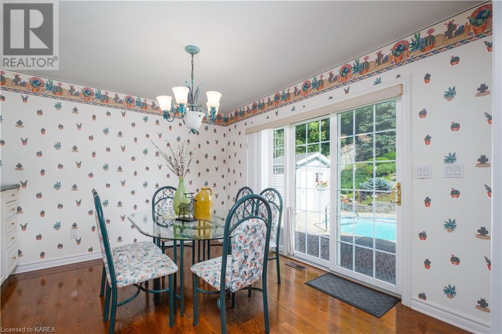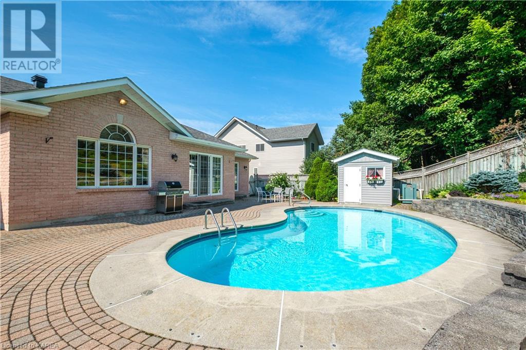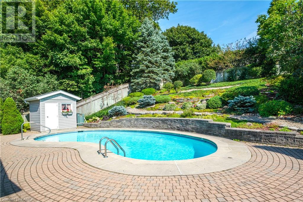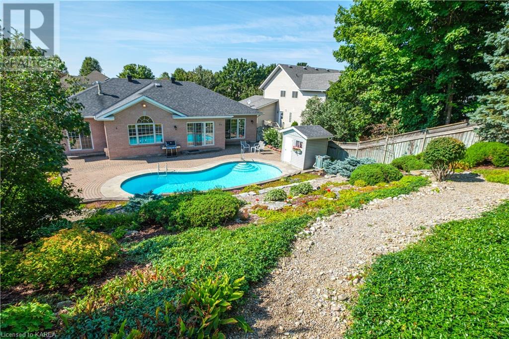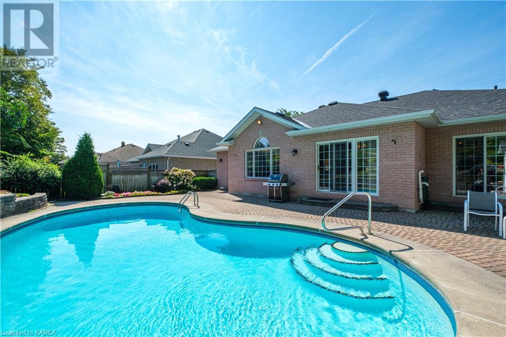 Welcome to 22 Kenwoods Circle in one of Kingston’s most coveted neighborhoods. This beautiful brick bungalow exudes immense curb appeal and is situated on a large, deep lot. The main floor features a welcoming foyer, a separate formal dining room, a warm & inviting living room with a gas fireplace, a bright eat-in kitchen with patio doors that lead out to the backyard, a primary bedroom with a walk-in closet and ensuite bathroom, a bonus family room that offers exterior access with sliding patio doors, a 4pc bathroom, a laundry room with inside entry to the double car garage and an additional bedroom. The basement hosts 2 additional bedrooms, a large office, a 4pc bathroom, a generous rec room, a workshop area with a walk- up to the garage and ample storage space. The fully fenced backyard is a paradise of its own that offers tranquility with meticulously maintained gardens, interlock patio, irrigation system and in-ground pool. This property is situated in a highly sought after neighborhood and close to many East End amenities, parks, trails, schools, CFB Kingston and a short drive to downtown Kingston. (id:22211)