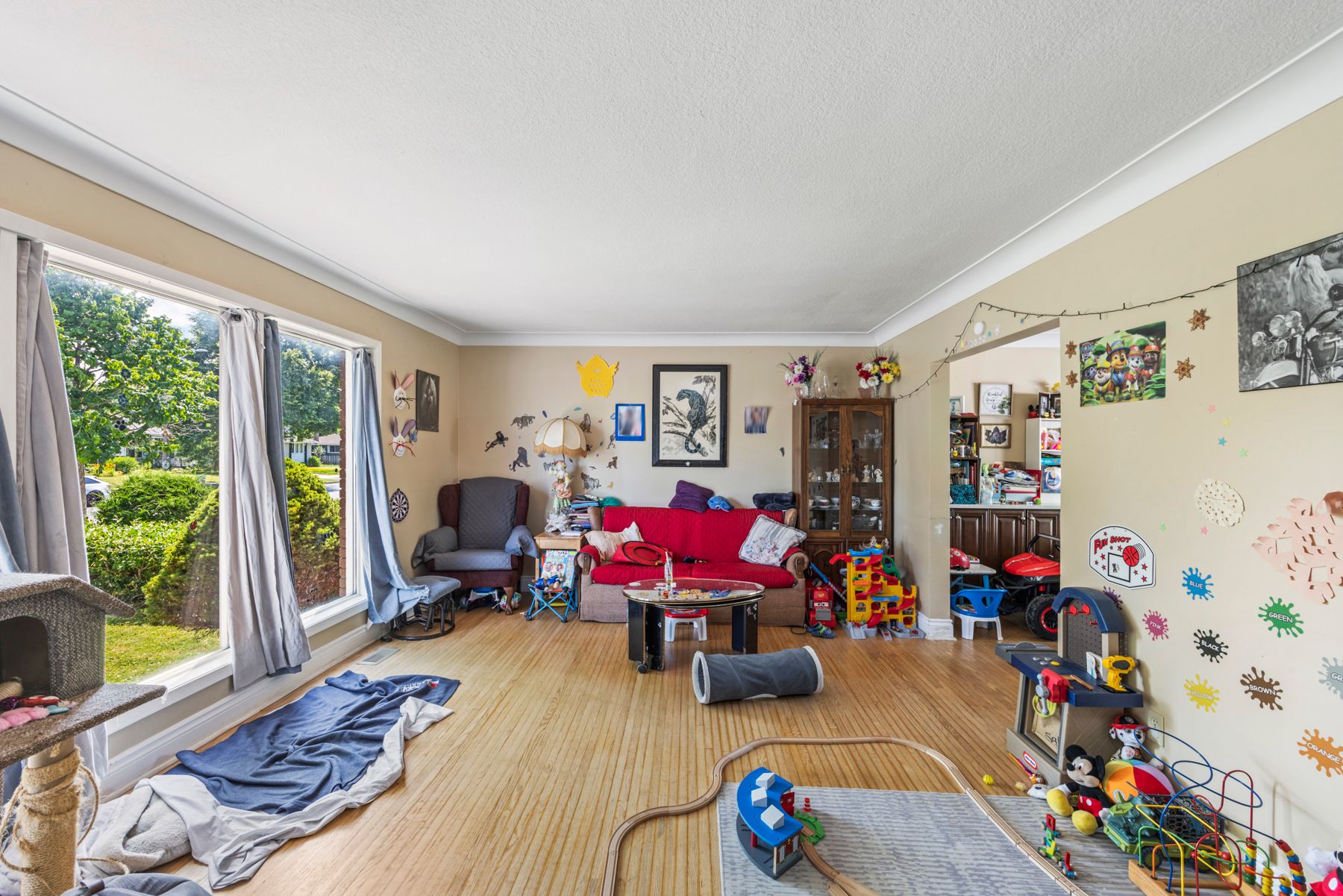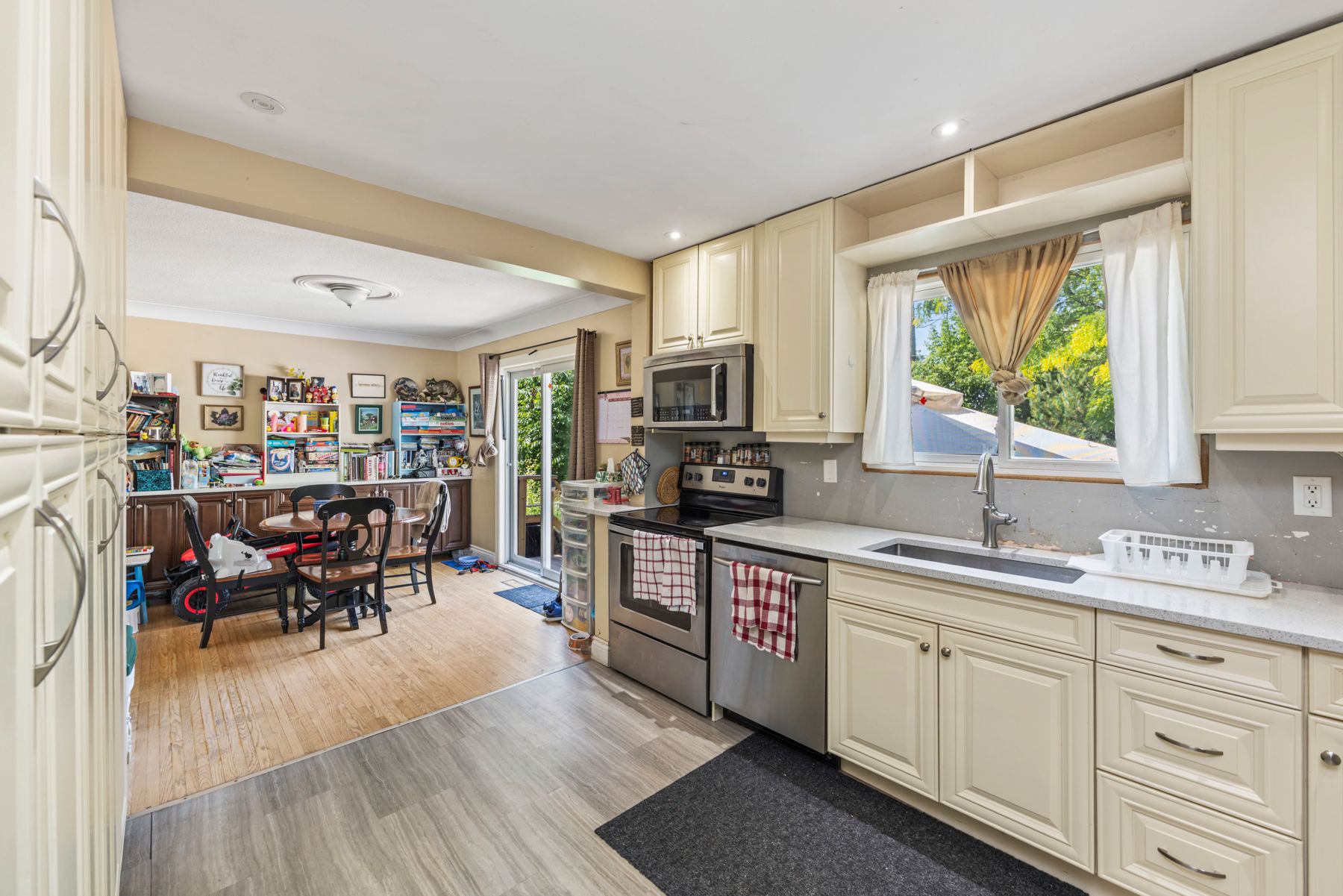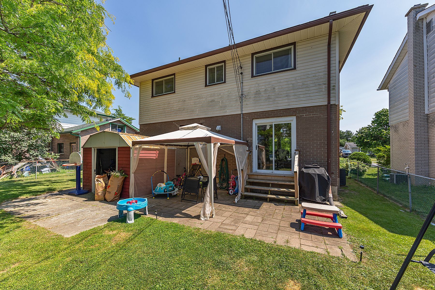 Great Central Location. Two story 4 Bedroom home. Close to schools, bus routes, gym, places of worship, shopping and a short bus ride to St . Lawrence College. Bright and spacious main floor with large windows on both the north and south side. Wood flooring in the living and dining rooms. Kitchen redone in recent years with high quality cabinets and quartz counters. Upstairs on the second floor are 4 bedrooms and a 4 piece bathroom. The basement level has a finished Rec room and a generous area with laundry and storage. Updates include a newer hotwater tank and electrical panel. Mature fenced backyard with one storage shed, deck and plenty of room for children to play.