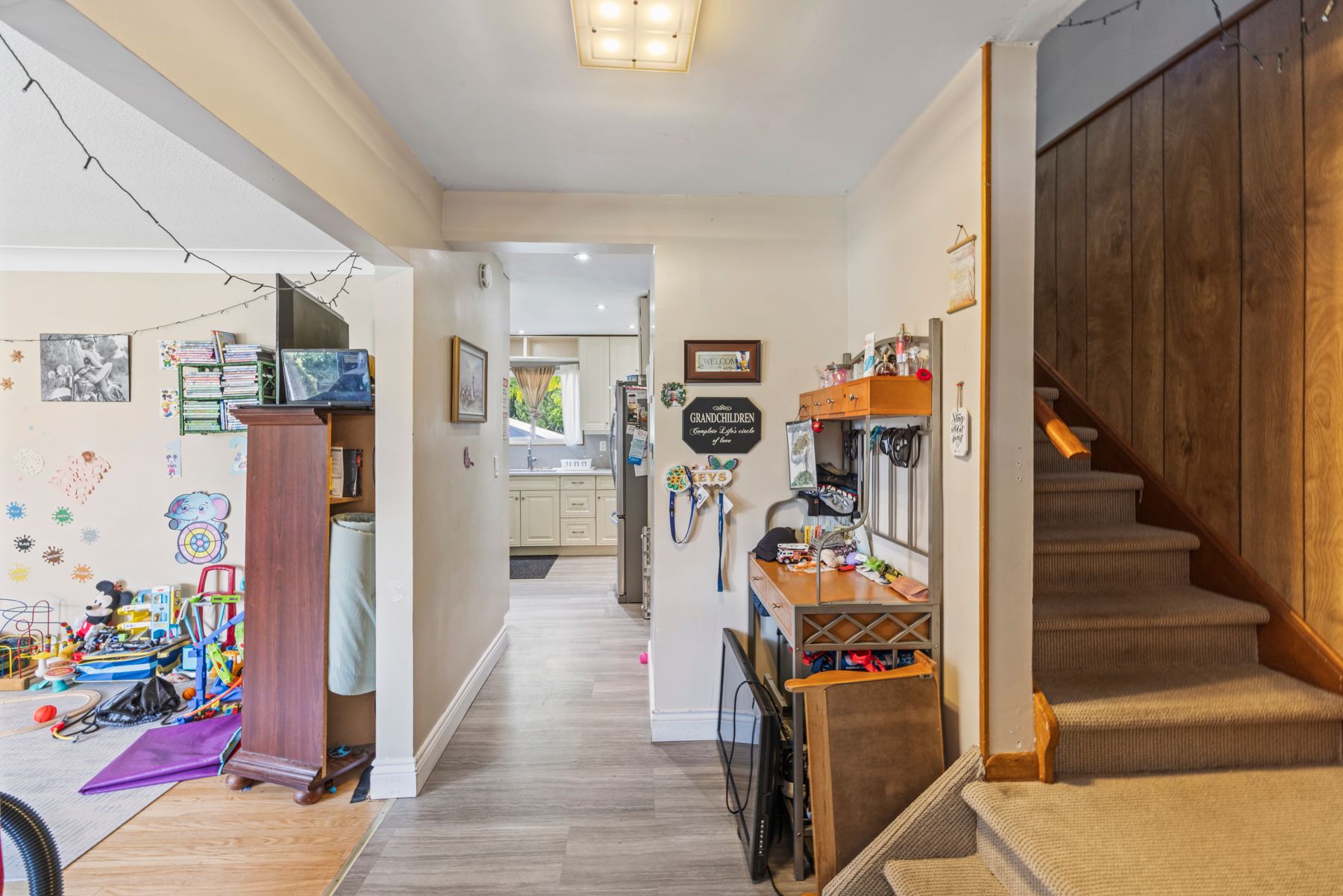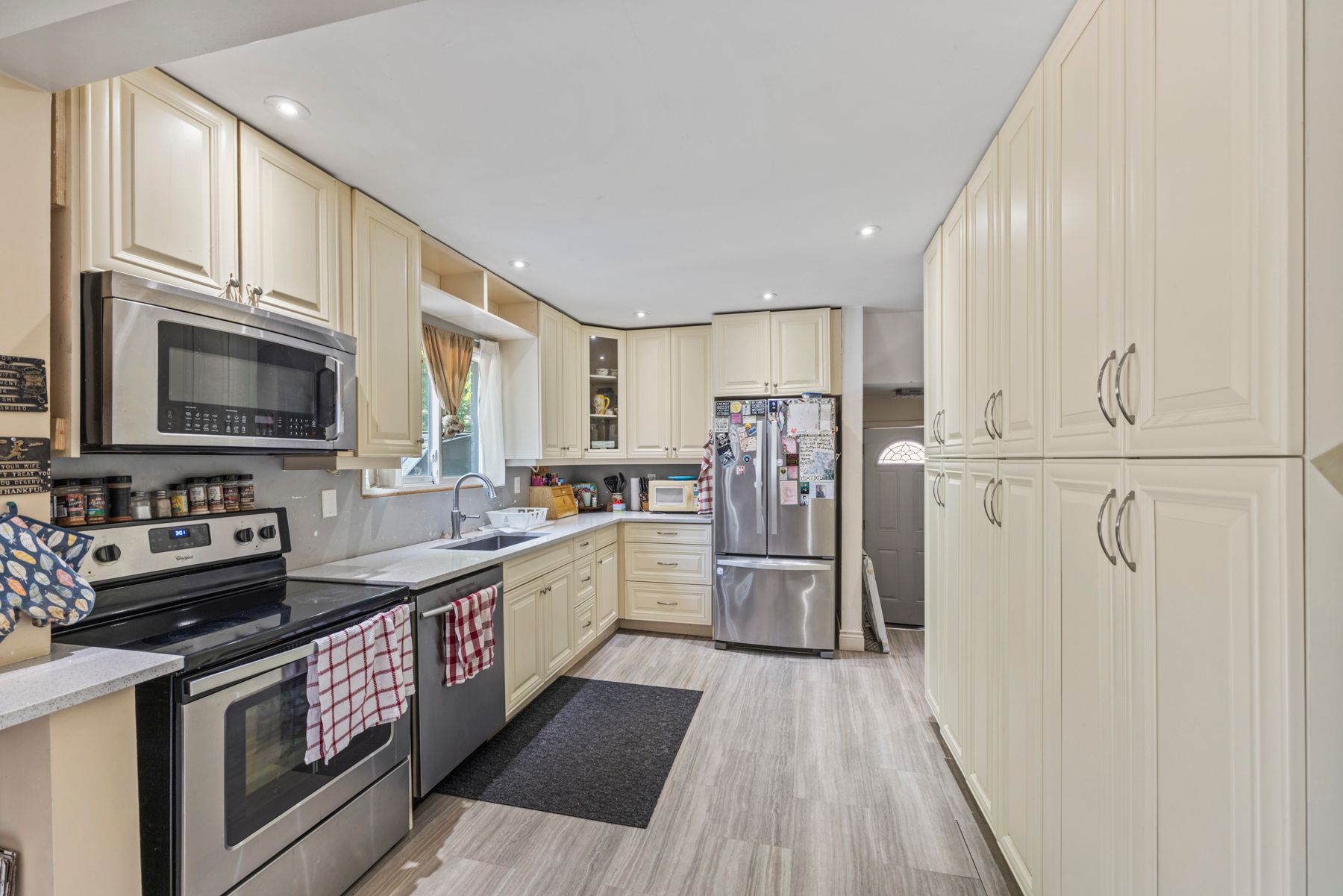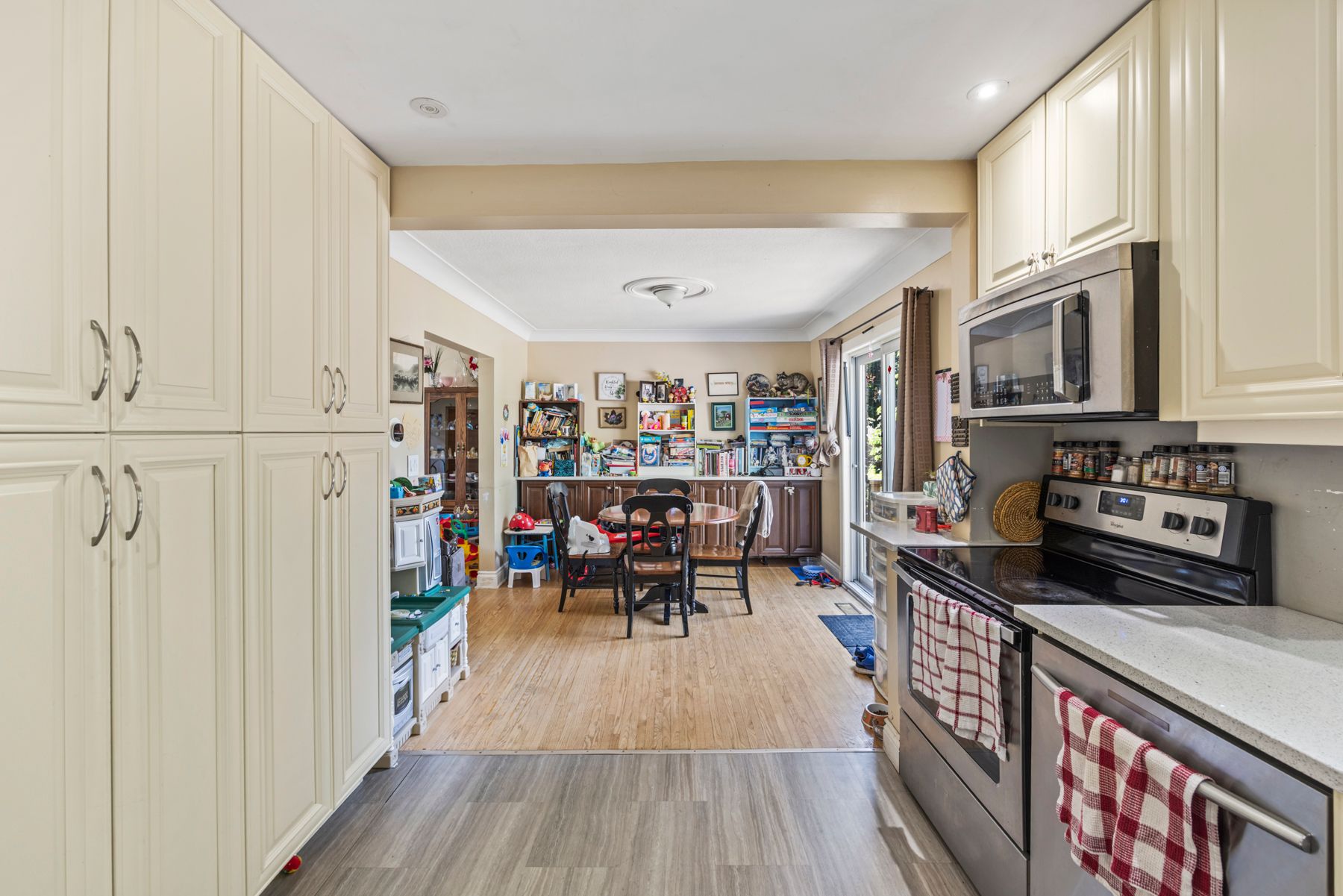 Great Central Location. Two story 4 Bedroom home. Close to schools, bus routes, gym, places of worship, shopping and a short bus ride to St . Lawrence College. Bright and spacious main floor with large windows on both the north and south side. Wood flooring in the living and dining rooms. Kitchen redone in recent years with high quality cabinets and quartz counters. Upstairs on the second floor are 4 bedrooms and a 4 piece bathroom. The basement level has a finished Rec room and a generous area with laundry and storage. Updates include a newer hotwater tank and electrical panel. Mature fenced backyard with one storage shed, deck and plenty of room for children to play.