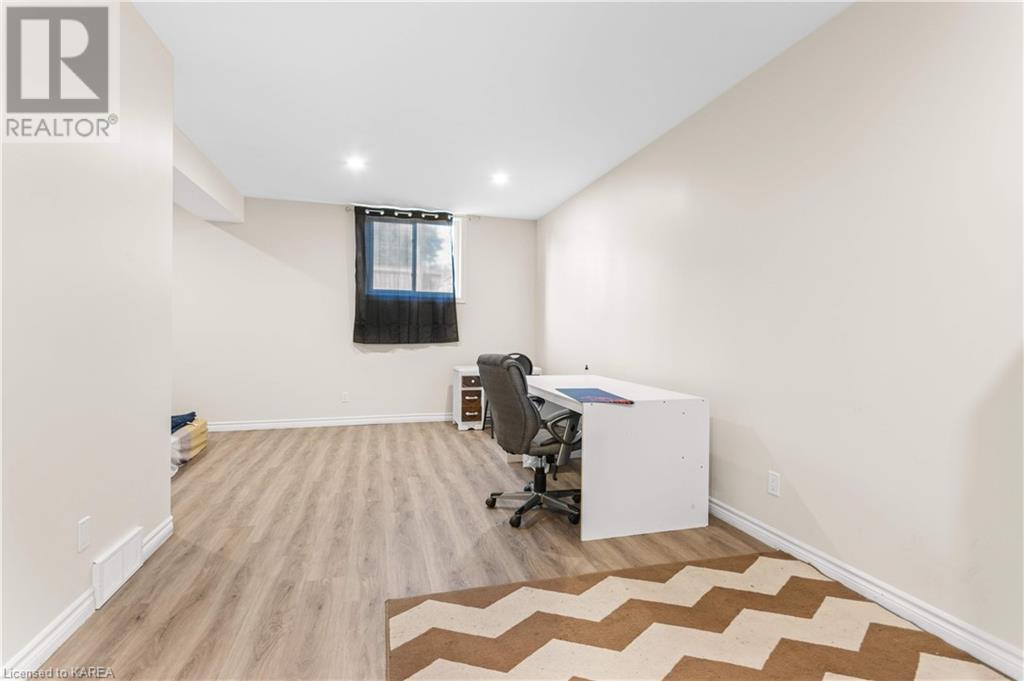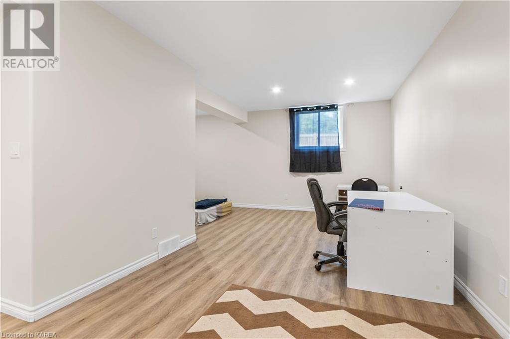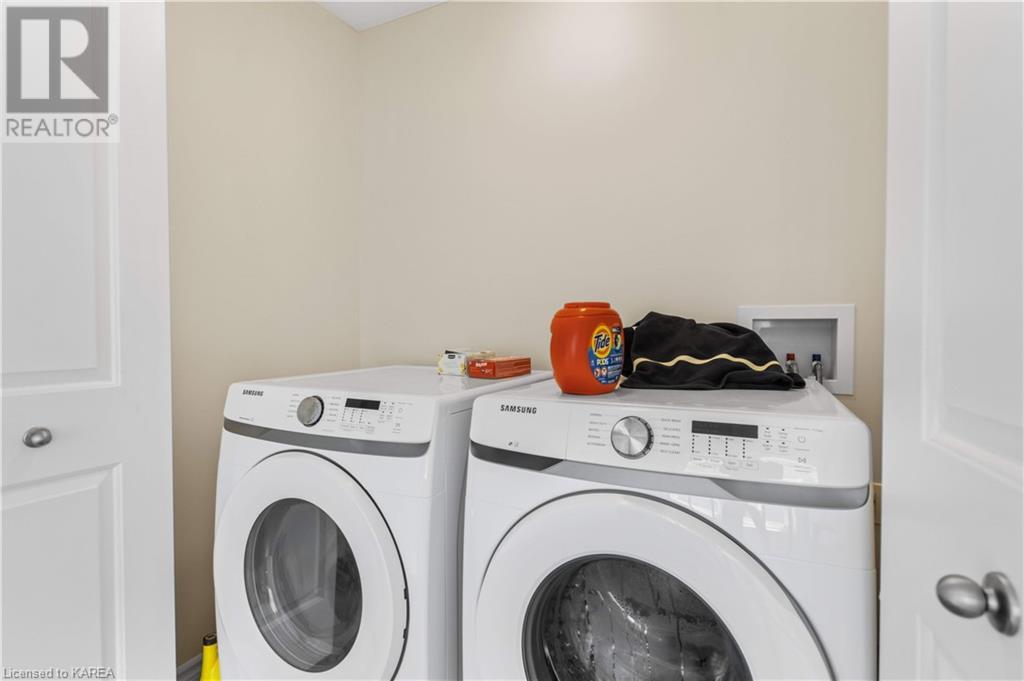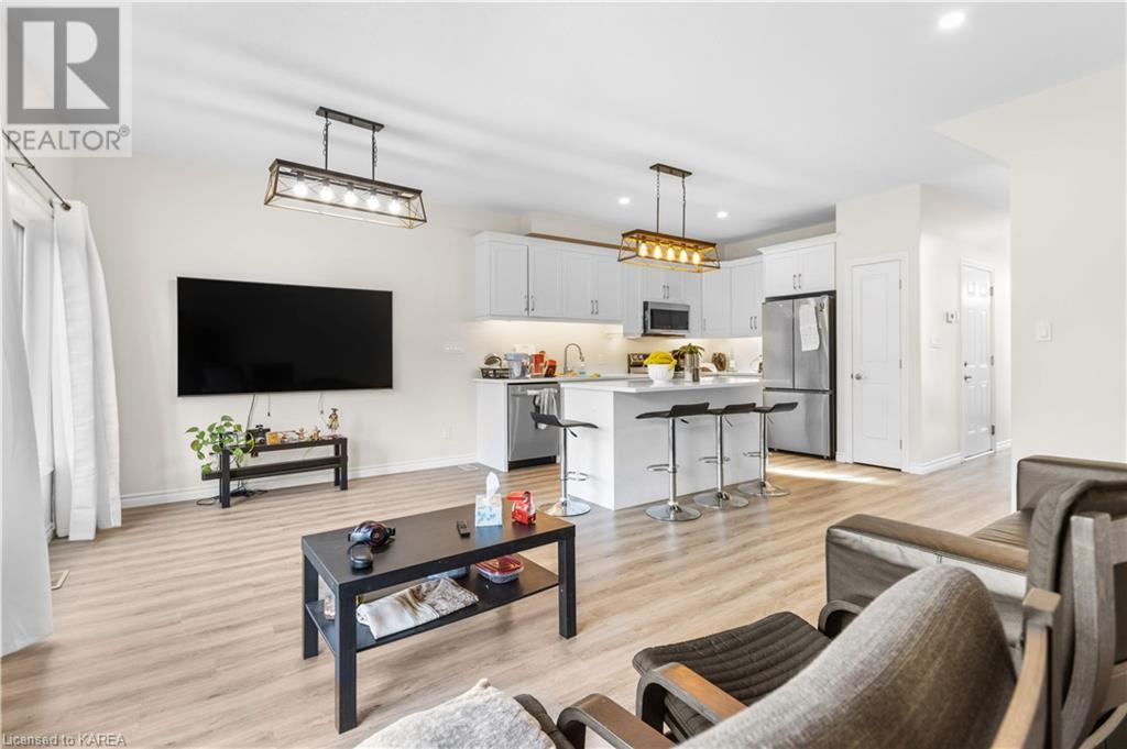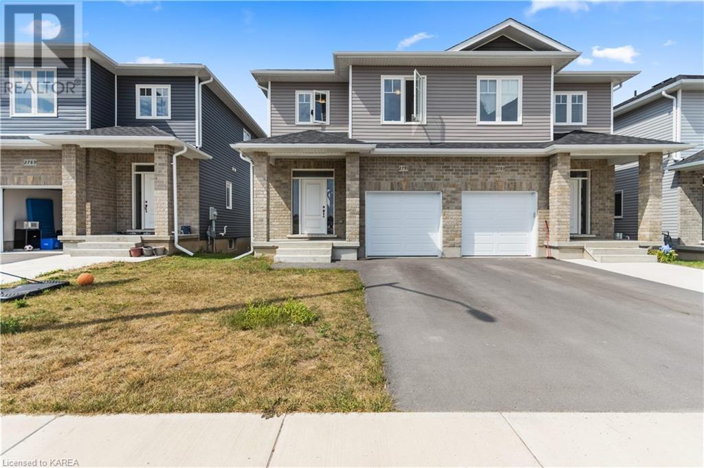 Welcome to this ideal pet free, smoke free and carpet free family home in Cataraqui North, Kingston, ON built by MARQUES HOMES, where convenience and comfort meet! This 2 YEARS OLD semidetached beauty is not only stunning inside but also perfectly situated near parks, schools, malls, Walmart, Costco and public transport, making it a prime location for daily essentials and recreational activities. An excellent opportunity for homeowners and investors alike. Step inside to discover a spacious living area filled with natural light from large windows and 9 ft ceilings. The ground level features a convenient powder washroom for both residents and guests. Step outside to the backyard oasis with a big patio door. The kitchen is a chef's dream, featuring an eating bar with stools, ideal for casual dining and entertaining. You'll find an abundance of kitchen cabinets, offering ample storage for all your culinary needs. Plus, all the appliances are top-of-the-line Samsung Stainless Steel and conveniently operated by wifi, adding a touch of modernity to your daily routine. The stove even comes with a built-in airfryer, adding a healthy touch to your culinary adventures. The attached garage provides secure parking and additional storage space for your belongings. Moving upstairs, you'll find three generously sized rooms. The primary room has ample space and a walk-in closet. The ensuite washroom features modern amenities with privacy and luxury you deserve. The two additional bedrooms are equally impressive, featuring large windows and big closets. The main washroom is tastefully designed with a tub and modern amenities. To top it all off, the convenience of having the washer and dryer upstairs, hidden behind modern closet doors, adds to the functionality and appeal of this incredible home. The basement is fully finished with large windows and a big rec room, you have the flexibility to turn this area into anything your heart desires. Early closing possible (id:22211)