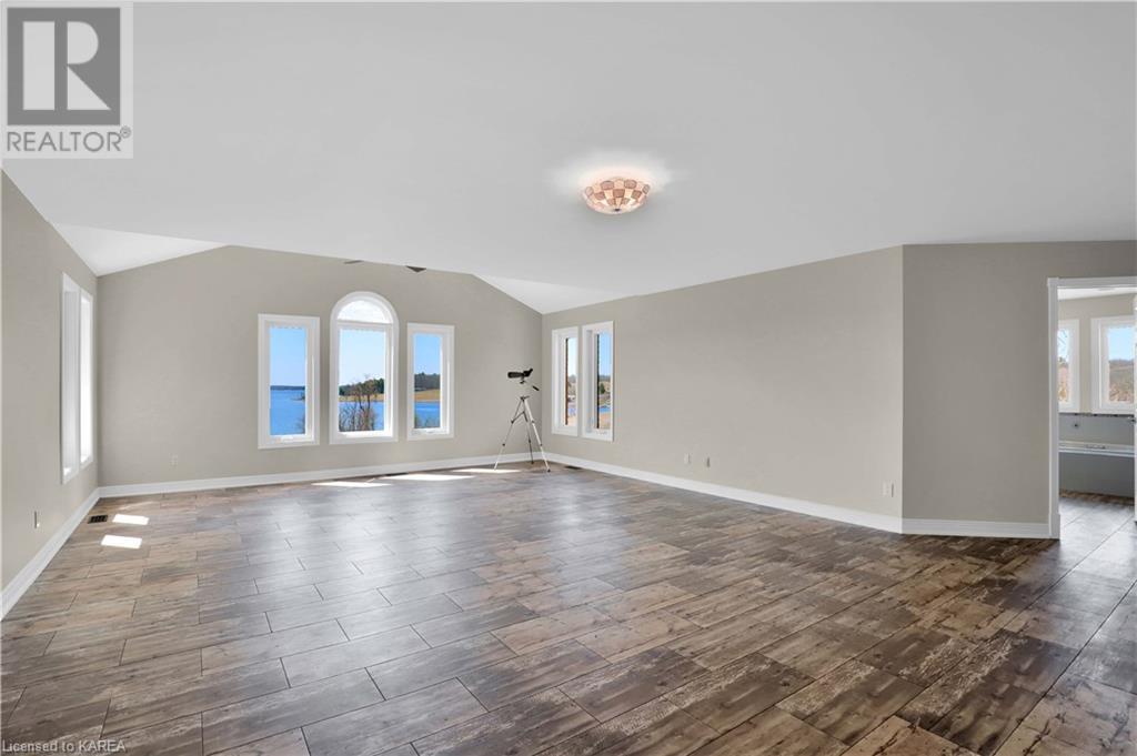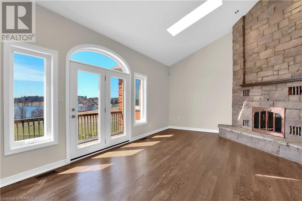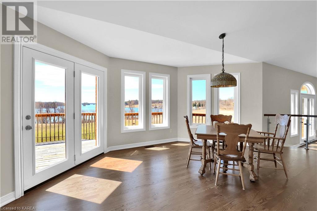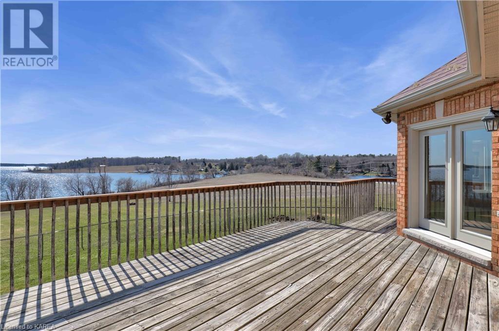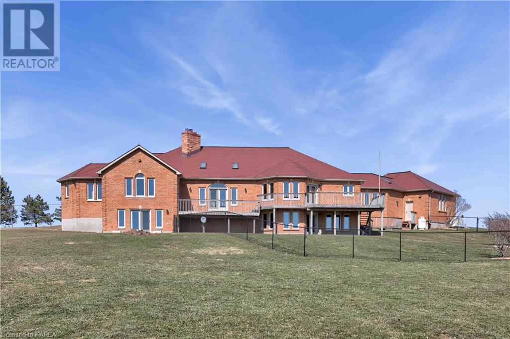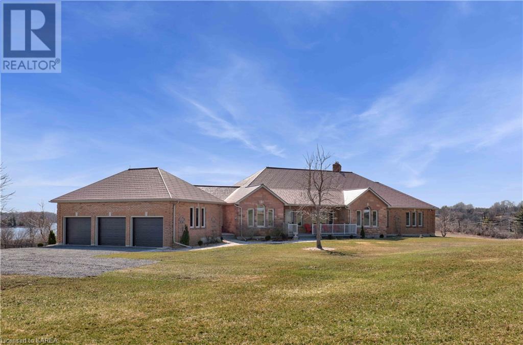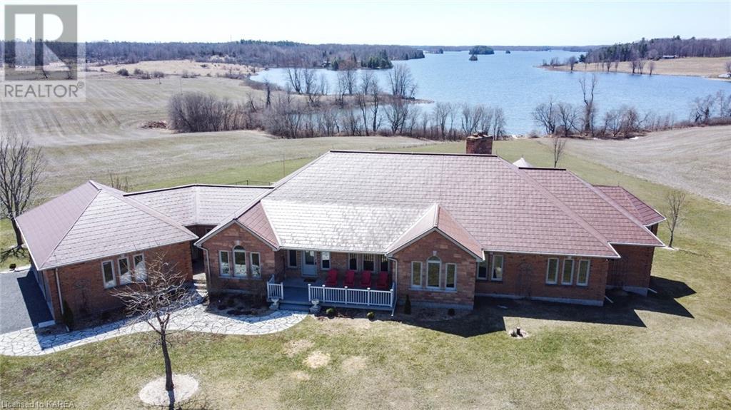 Brass Point is ideally situated on the World Heritage Designated Rideau Canal system. Just minutes from historic Kingston, this extraordinary, 3860 square-foot custom-built bungalow is situated on 221 picturesque acres with over 3500 feet of waterfront on Cranberry Lake, and the property is adjacent to the Brass Point Bridge with frontage on Burnt Hills Road and Leo Lake Road. As you enter this home, you will enjoy sweeping views of the Rideau waterway, cathedral ceilings, a stunning floor-to-ceiling wood-burning fireplace, updated flooring, windows, and newer oak front and rear stairs. Other updates include Generac in 2020, a steel roof in 2017, a geothermal furnace in 2023 and to be installed-new decking and glass rails. Currently, there are 2 parcels on the acreage being farmed for hay and soybeans, which totals approximately 80 acres. (id:22211)