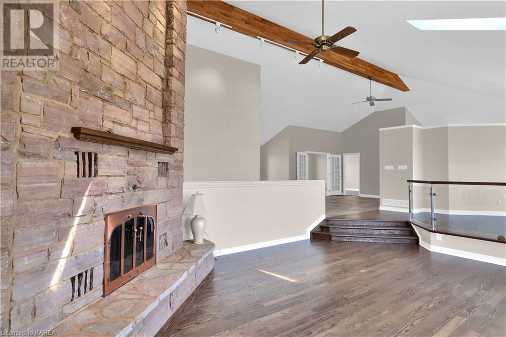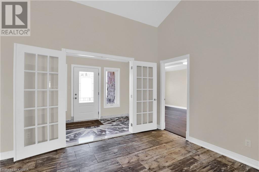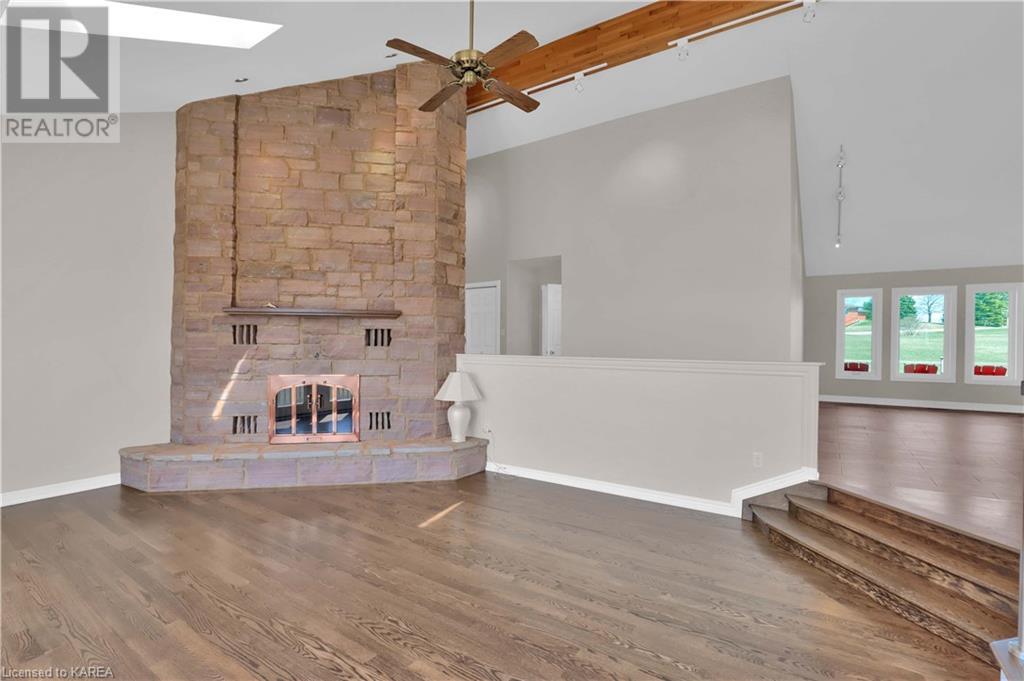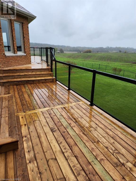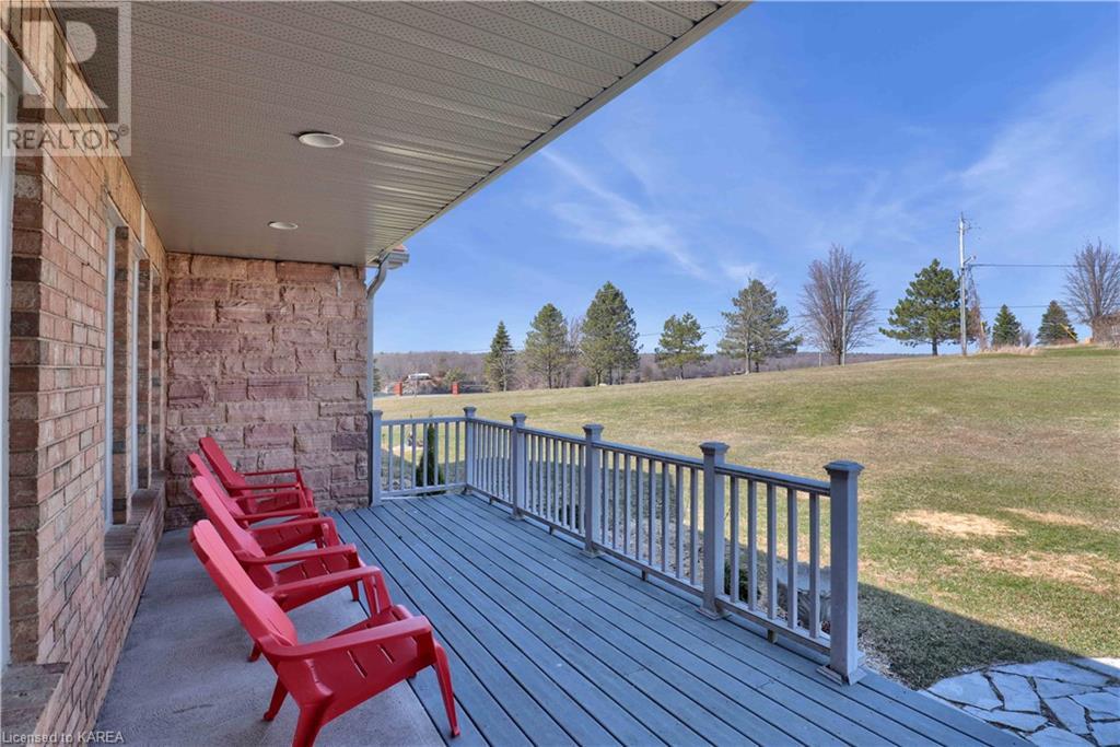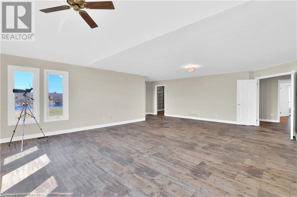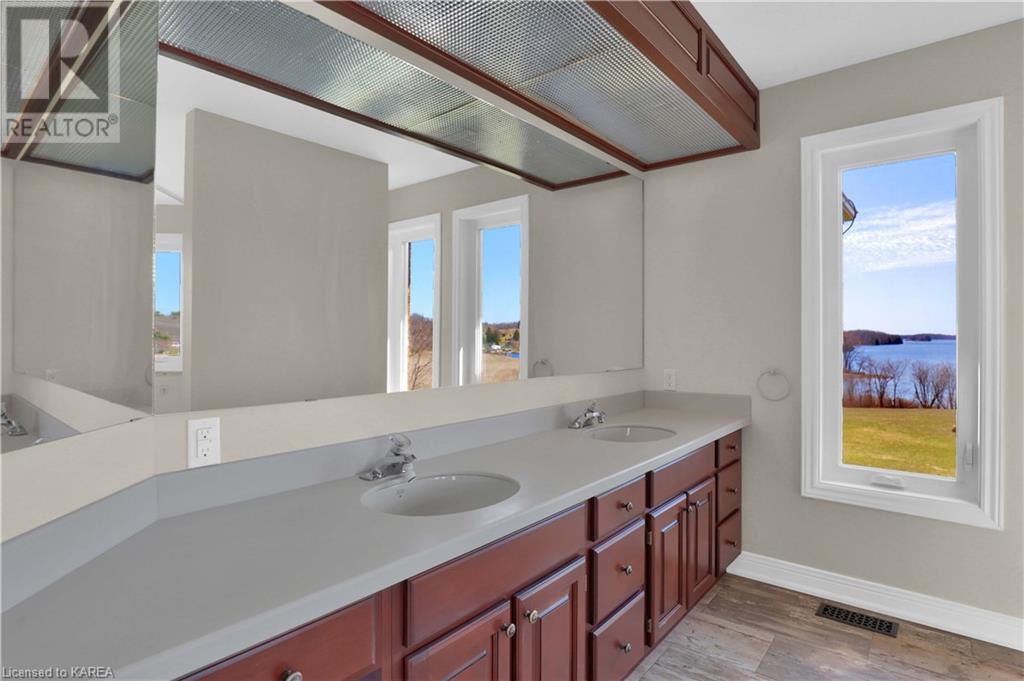 Brass Point is ideally situated on the World Heritage Designated Rideau Canal system. Just minutes from historic Kingston, this extraordinary, 3860 square-foot custom-built bungalow is situated on 221 picturesque acres with over 3500 feet of waterfront on Cranberry Lake, and the property is adjacent to the Brass Point Bridge with frontage on Burnt Hills Road and Leo Lake Road. As you enter this home, you will enjoy sweeping views of the Rideau waterway, cathedral ceilings, a stunning floor-to-ceiling wood-burning fireplace, updated flooring, windows, and newer oak front and rear stairs. Other updates include Generac in 2020, a steel roof in 2017, a geothermal furnace in 2023 and to be installed-new decking and glass rails. Currently, there are 2 parcels on the acreage being farmed for hay and soybeans, which totals approximately 80 acres. (id:22211)