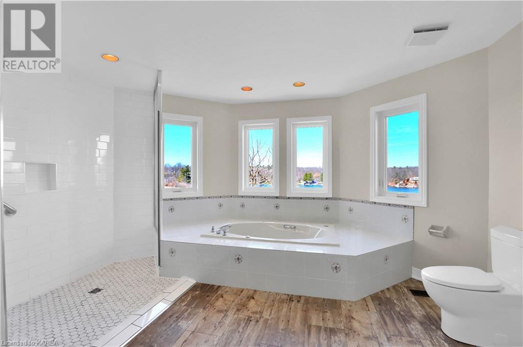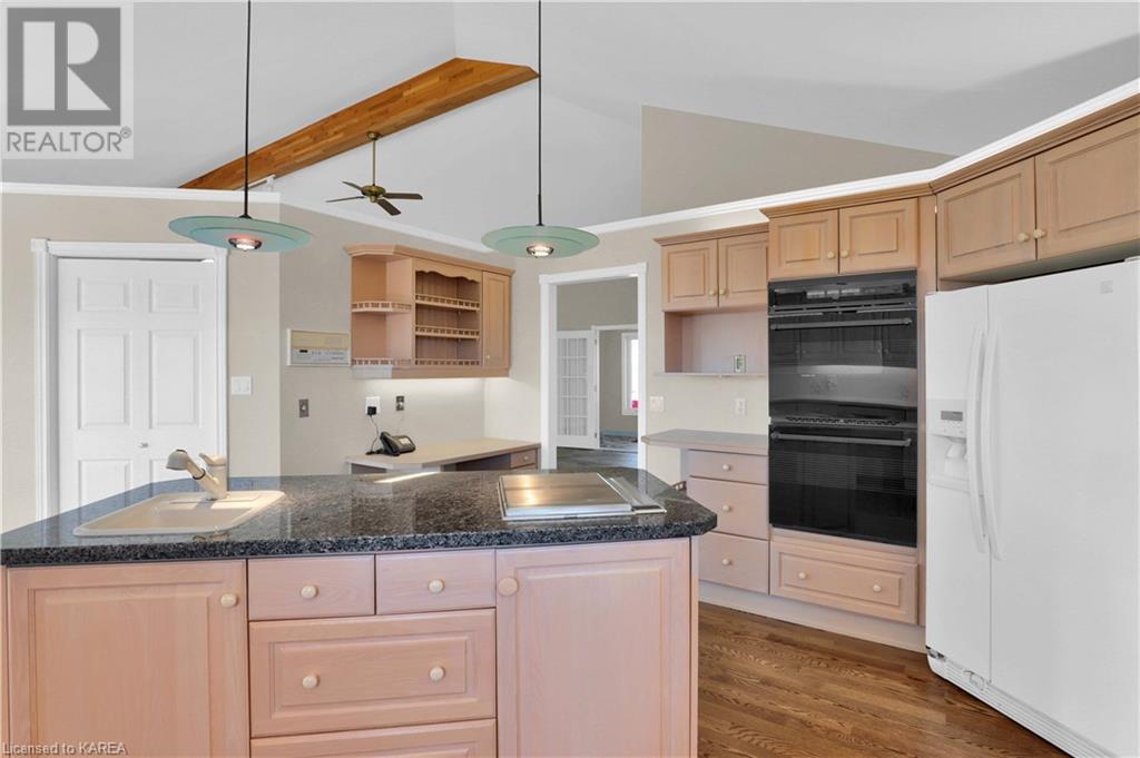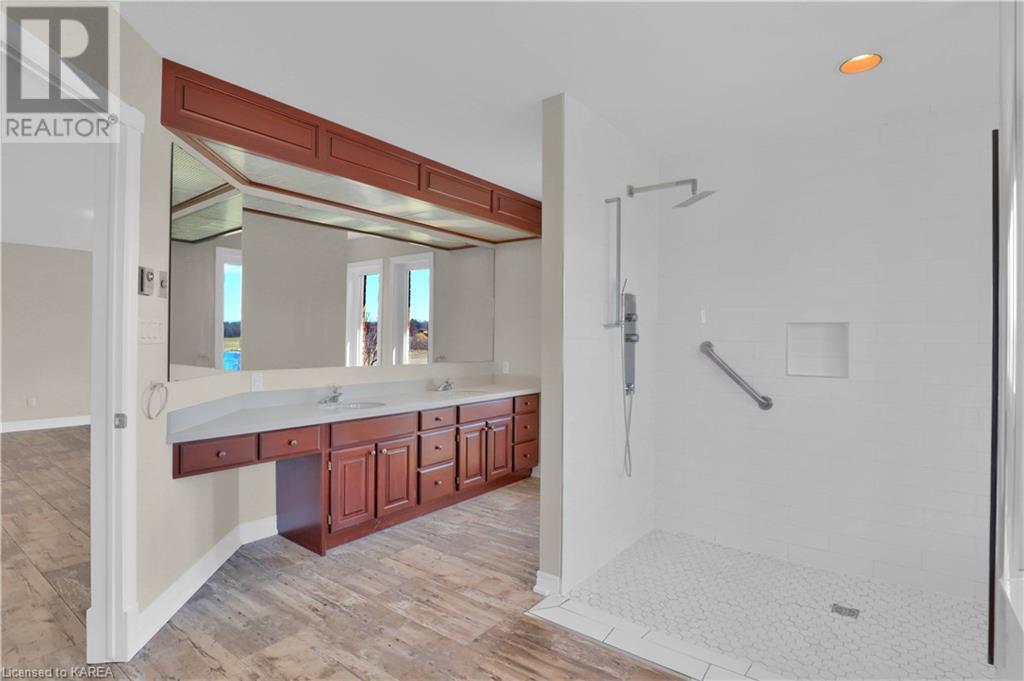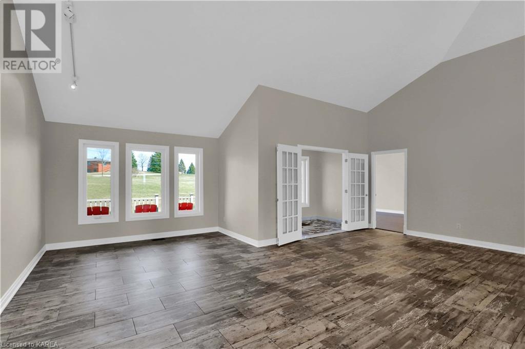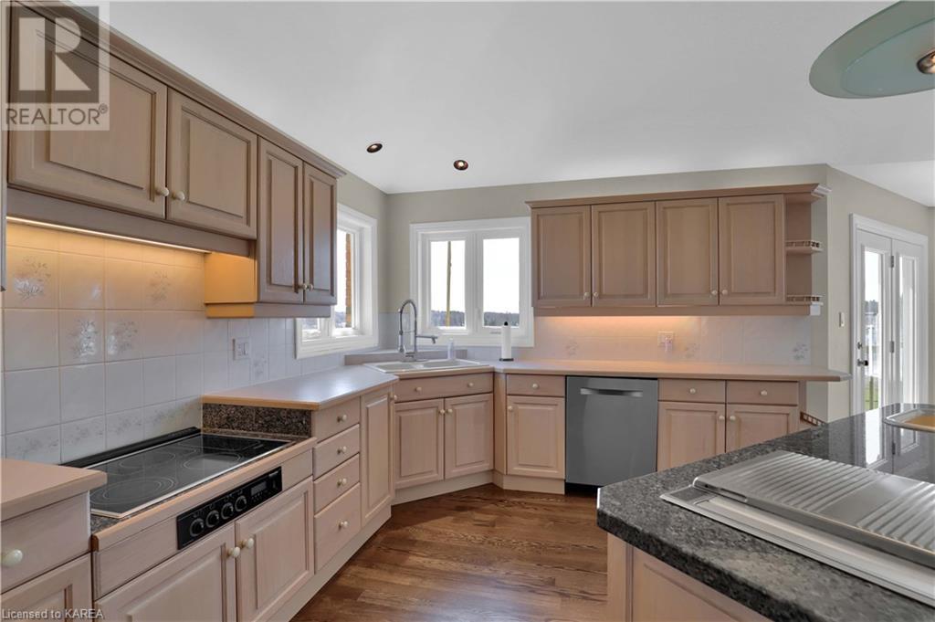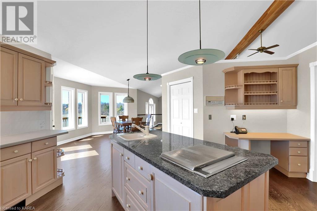 Brass Point is ideally situated on the World Heritage Designated Rideau Canal system. Just minutes from historic Kingston, this extraordinary, 3860 square-foot custom-built bungalow is situated on 221 picturesque acres with over 3500 feet of waterfront on Cranberry Lake, and the property is adjacent to the Brass Point Bridge with frontage on Burnt Hills Road and Leo Lake Road. As you enter this home, you will enjoy sweeping views of the Rideau waterway, cathedral ceilings, a stunning floor-to-ceiling wood-burning fireplace, updated flooring, windows, and newer oak front and rear stairs. Other updates include Generac in 2020, a steel roof in 2017, a geothermal furnace in 2023 and to be installed-new decking and glass rails. Currently, there are 2 parcels on the acreage being farmed for hay and soybeans, which totals approximately 80 acres. (id:22211)
