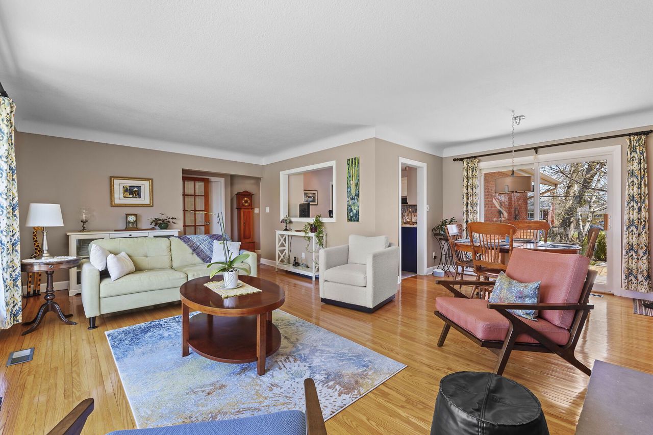 Beautifully maintained updated brick bungalow in sought-after Polson Park. Hardwood floors, updated kitchen and bathroom. Living room with wood burning fireplace, patio door to rear yard deck. Additional side entrance to basement (in law potential), 3 plus one bedrooms, large rec room with electric fireplace, lot of storage. Furnace high efficiency (2023), refrigerator (2021), stove (2021), washer, dryer (gas), dishwasher (2021), all window coverings included. Conveniently located to Ecole, Polson Park school and three additional schools, St. Lawrence College, parks and public transit. Close to mid town amenities. Don't miss to see this exceptional home in a great neighbourhood.