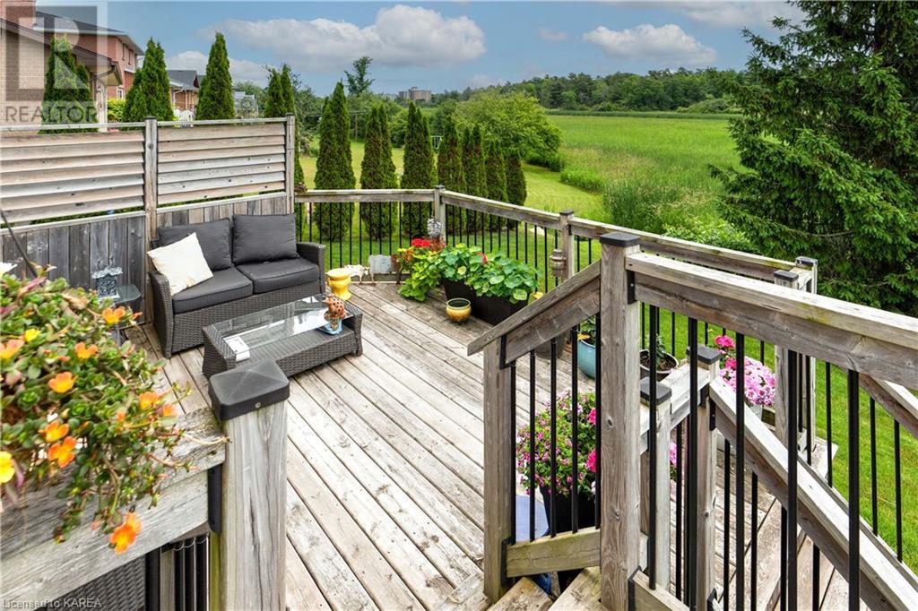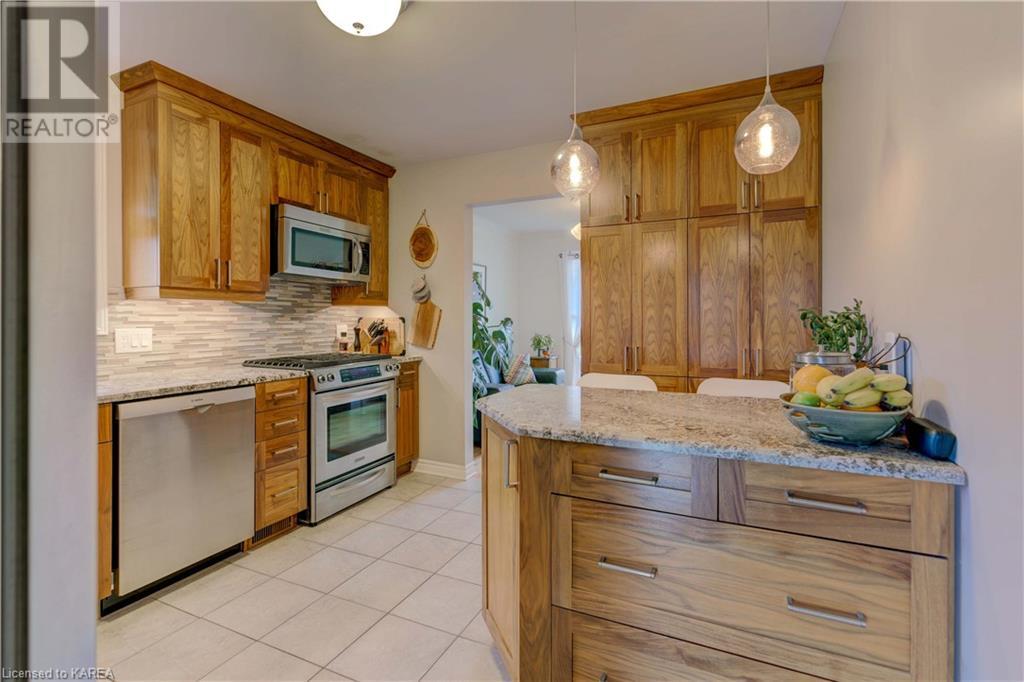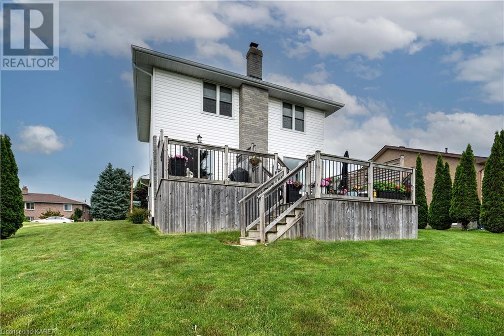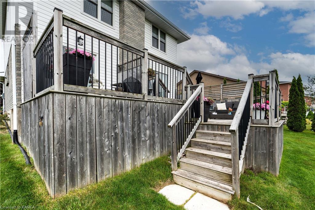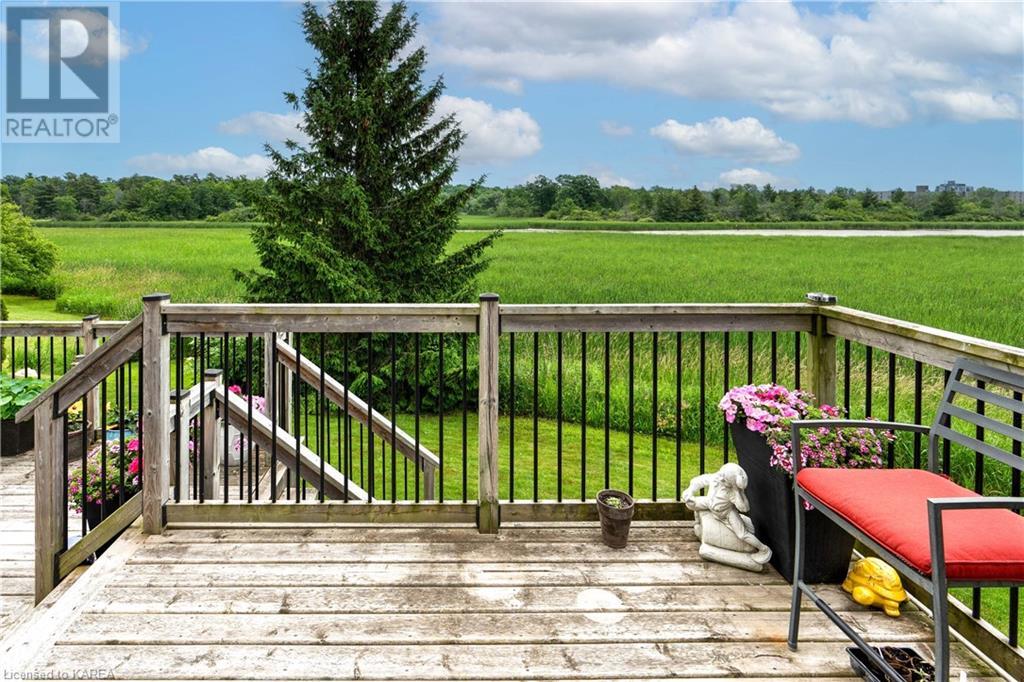 Talk about the perfect location! Backing onto conservation area and a park on your right side, all centrally located in the city, on a private cul-de-sac. Only 10 minutes to downtown, hospital, Queen’s and St. Lawrence College. With a short walk to shopping, playground, and dog park. This 3 bedroom 3 bath 2 storey is in mint condition with extensive renovations including the following. Roof, windows, furnace, air conditioning, garage and entrance door. All flooring updated, 3 bathrooms updated, wood burning fireplace in living room and finished rec room, rough in for future washroom. All major appliances- fridge, stove, washer, dryer, dishwasher, microwave included plus window coverings. Watch the deer, water birds and many other interesting wildlife from your two tier deck. (id:22211)