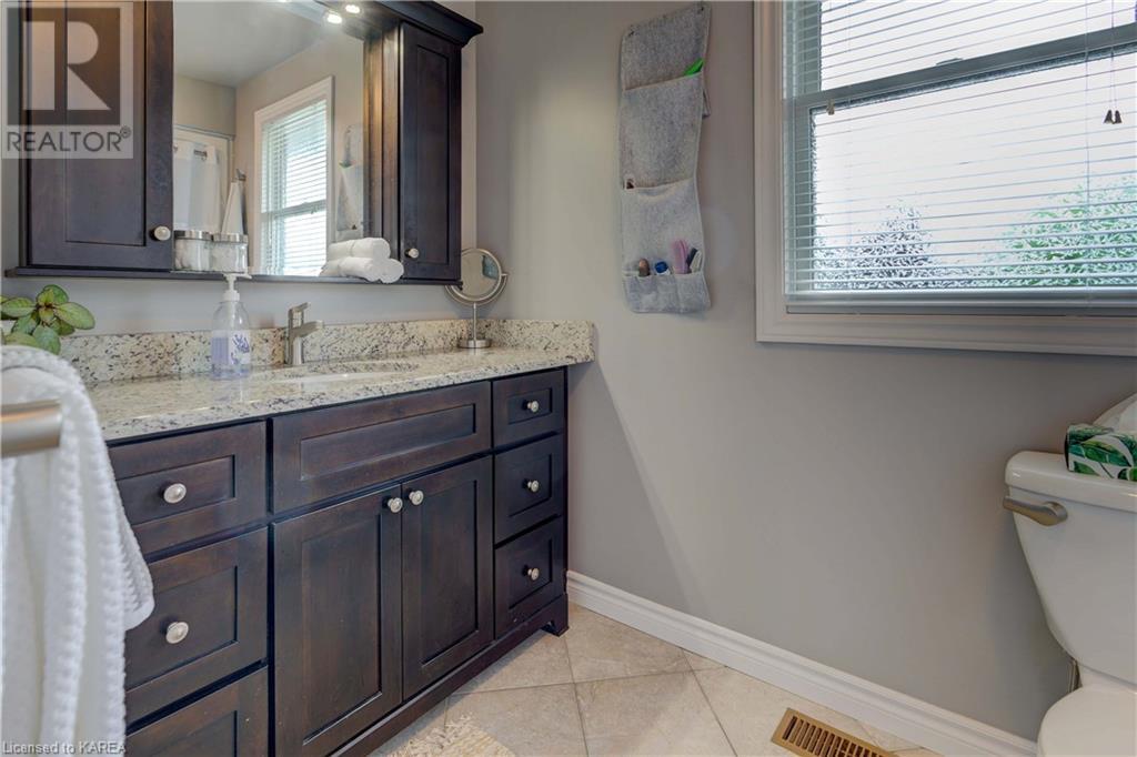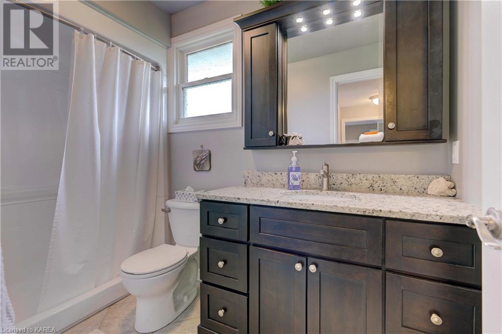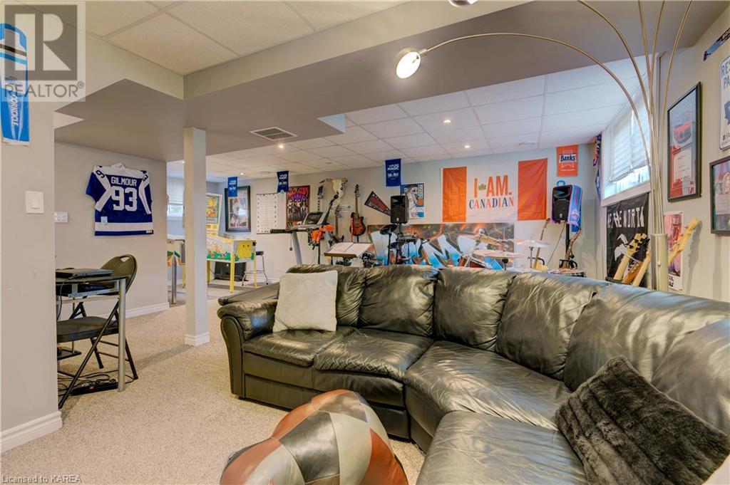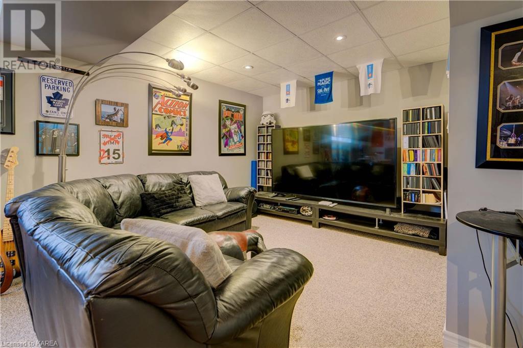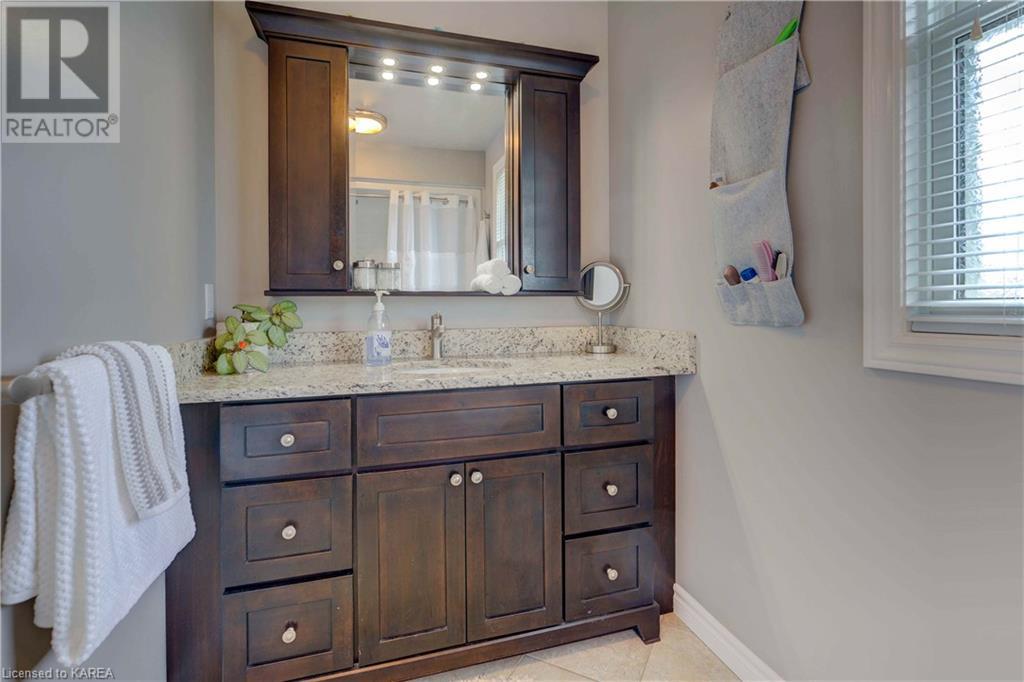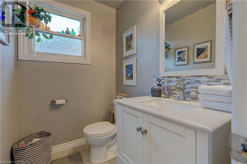 Talk about the perfect location! Backing onto conservation area and a park on your right side, all centrally located in the city, on a private cul-de-sac. Only 10 minutes to downtown, hospital, Queen’s and St. Lawrence College. With a short walk to shopping, playground, and dog park. This 3 bedroom 3 bath 2 storey is in mint condition with extensive renovations including the following. Roof, windows, furnace, air conditioning, garage and entrance door. All flooring updated, 3 bathrooms updated, wood burning fireplace in living room and finished rec room, rough in for future washroom. All major appliances- fridge, stove, washer, dryer, dishwasher, microwave included plus window coverings. Watch the deer, water birds and many other interesting wildlife from your two tier deck. (id:22211)