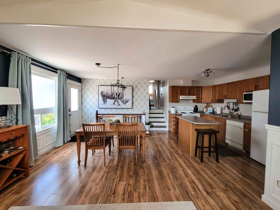 Charming 2 bedroom, 2 bath semi-detached south facing backsplit with a large backyard that backs ontogreenspace. The main level of this beautiful home offers a foyer with a custom closet (2020), an open concept living & dining room with a custom electric fireplace entertainment unit (2020) a large window overlooking the front yard, an open concept kitchen with a centre island & a breakfast bar. The 2nd level features a sizeable primary bedroom with a wood feature wall and a walk-in closet, a 2nd bedroom, and the main 4-piece bath. The lower level offers a recreation room, 3-piece bath, and laundry room. The large backyard is fully fenced with a deck that is perfect for entertaining & a garden shed. Conveniently located in Kingston’s west-end near the Cataraqui Woods Elementary School, Cataraqui Woods Park, public transit, shops, restaurants, and entertainment of the surrounding area. There is easy access to Highway 401 & just a short drive to historic downtown Kingston.See Schedule A for complete details. Please note photos were taken when sellers lived in home. The property is now vacant.