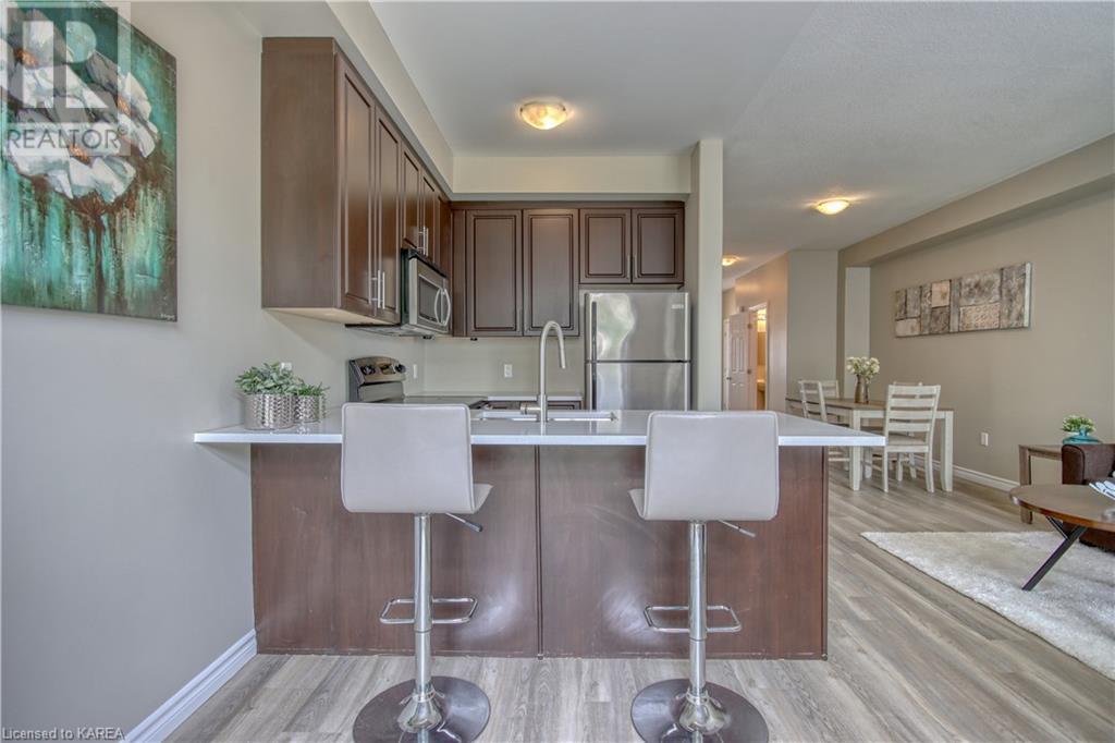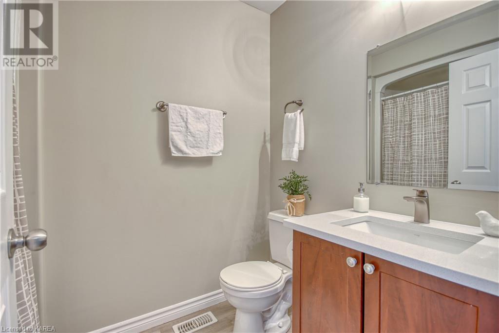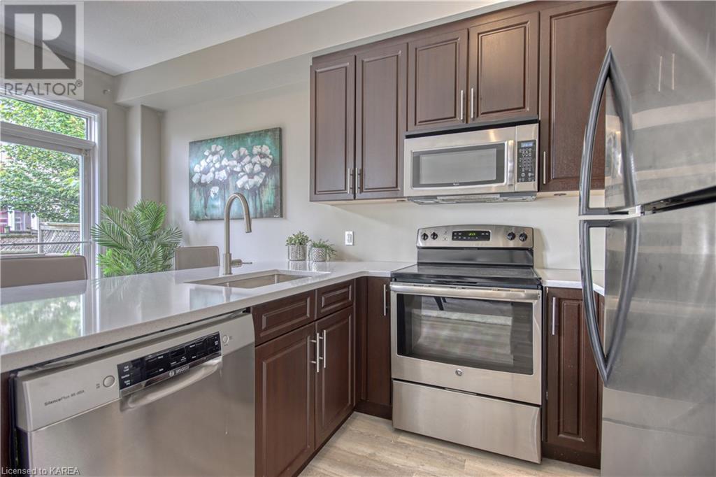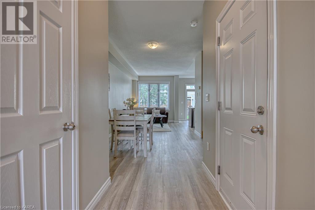 Move-in ready and exuding style, this sweet townhouse in Riverpark is a true gem! 9-foot ceilings throughout make for a spacious and airy atmosphere. Featuring 3 bedrooms and 2.5 baths, with the primary bedroom offering a generously sized walk-in closet and 4-piece ensuite bath. Recently renovated with meticulous attention to detail, this home has been professionally painted from top to bottom and boasts all-new flooring throughout. The wet areas feature beautiful quartz countertops, including the kitchen with an extended eating bar and fully equipped with all appliances. The lower level is partially finished, awaiting your personal touches to make it your own. Just steps from the picturesque Cataraqui River, minutes from the vibrant downtown core and conveniently situated next to the new Waaban crossing, providing easy access to CFB Kingston and the 401 Highway. (id:22211)