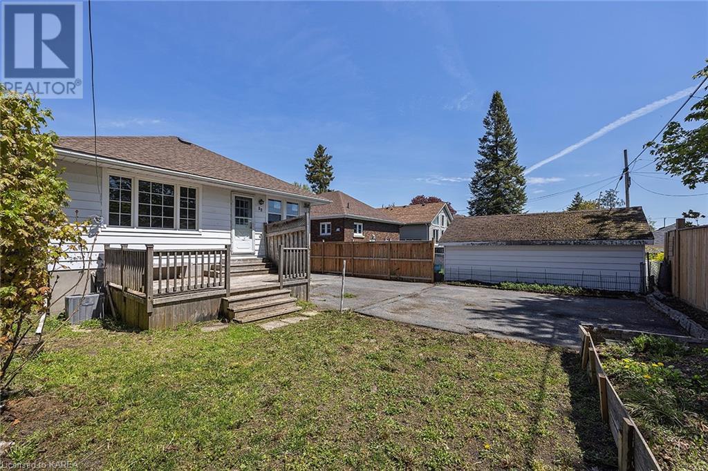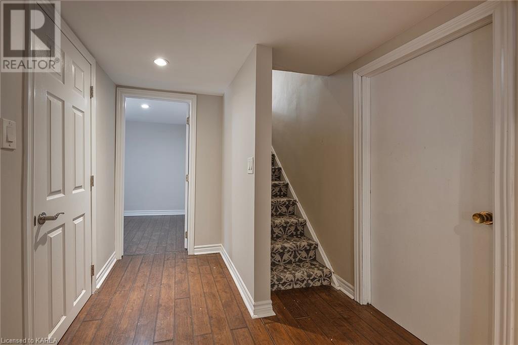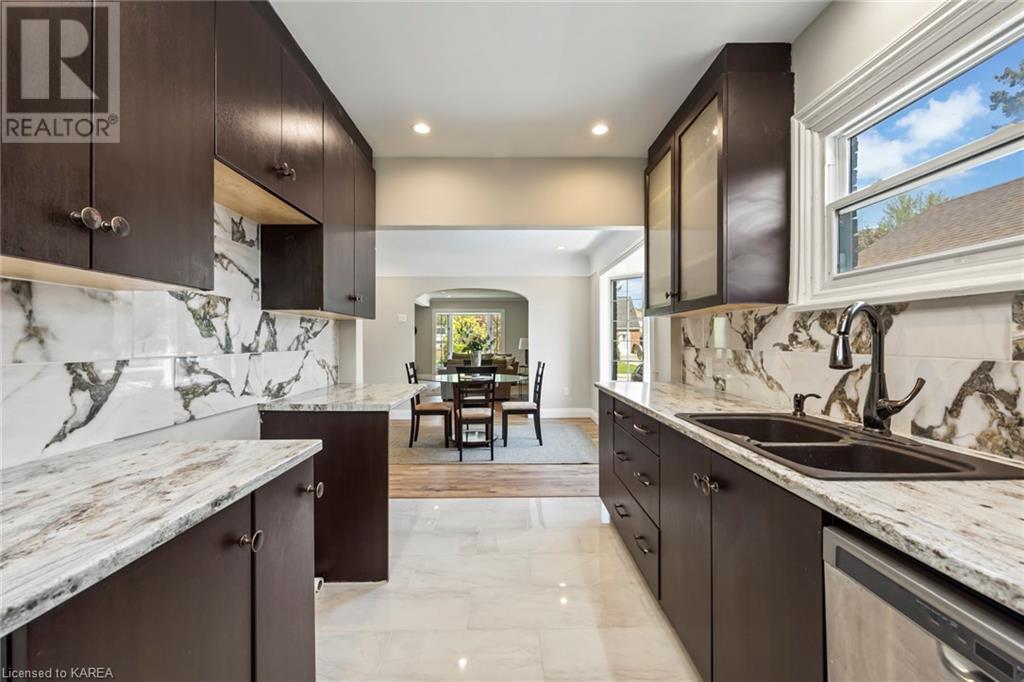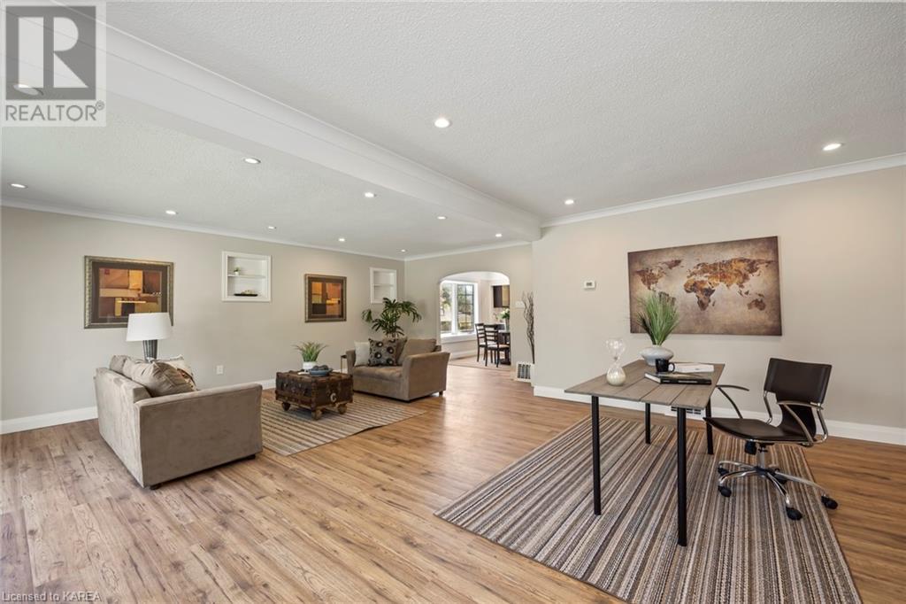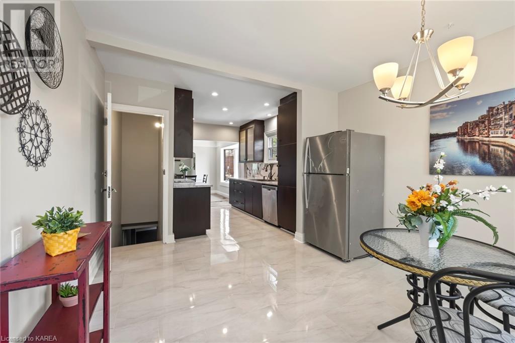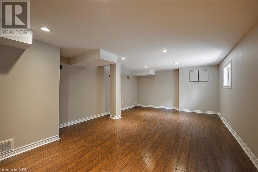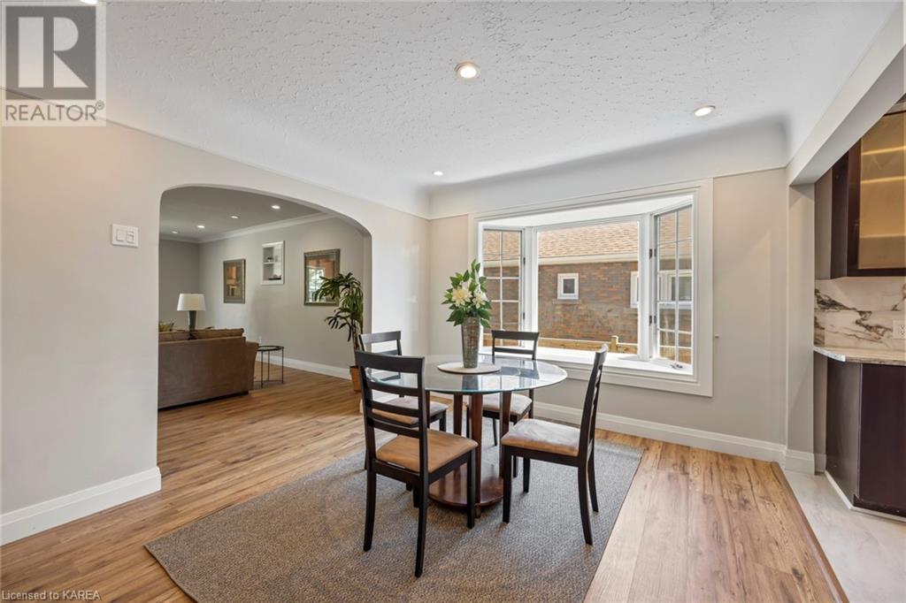 Charming and tastefully renovated elevated bungalow located in central Kingston! Only 10 min walk to downtown Kingston and situated on a quiet residential street near all amenities. Excellent schools, grocery stores, hospitals, restaurants all in the immediate area. This spacious 2 bedroom bungalow will provide you with lots of space to live and you will love the new renovations to flooring, main bathroom along with elegant pot lighting throughout the main floor. The living room is massive and bright! It is ideal for entertaining and could easily be reduced to allow for a 3rd upper level bedroom/office. The gallery kitchen offers lots of room for storage and leads to a dining nook with access to the backyard. The lower level is partly finished offering a large rec room ideal for an entertainment centre or play area for children. The basement is complete with a bathroom (2 piece) and a bonus room which could serve multiple purposes. Newer roof shingles (2021). The backyard can park 2 cars and there is a small deck leading to a small low maintenance backyard space. Quick possession available. (id:22211)