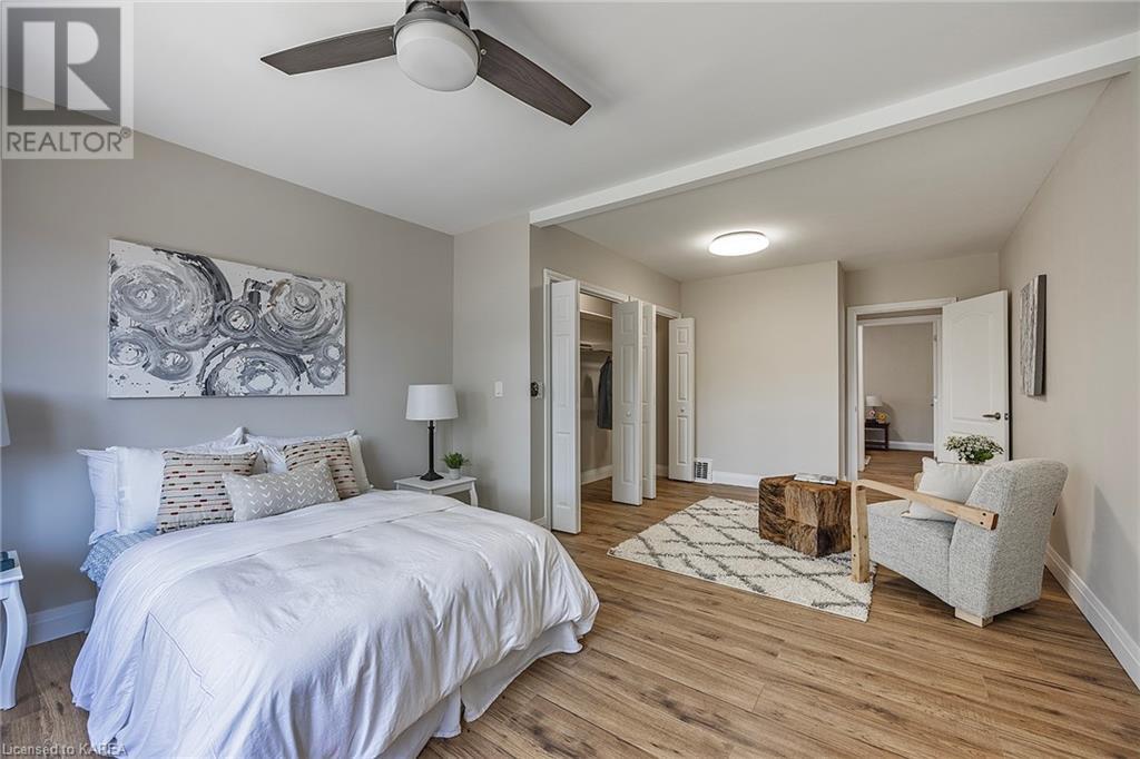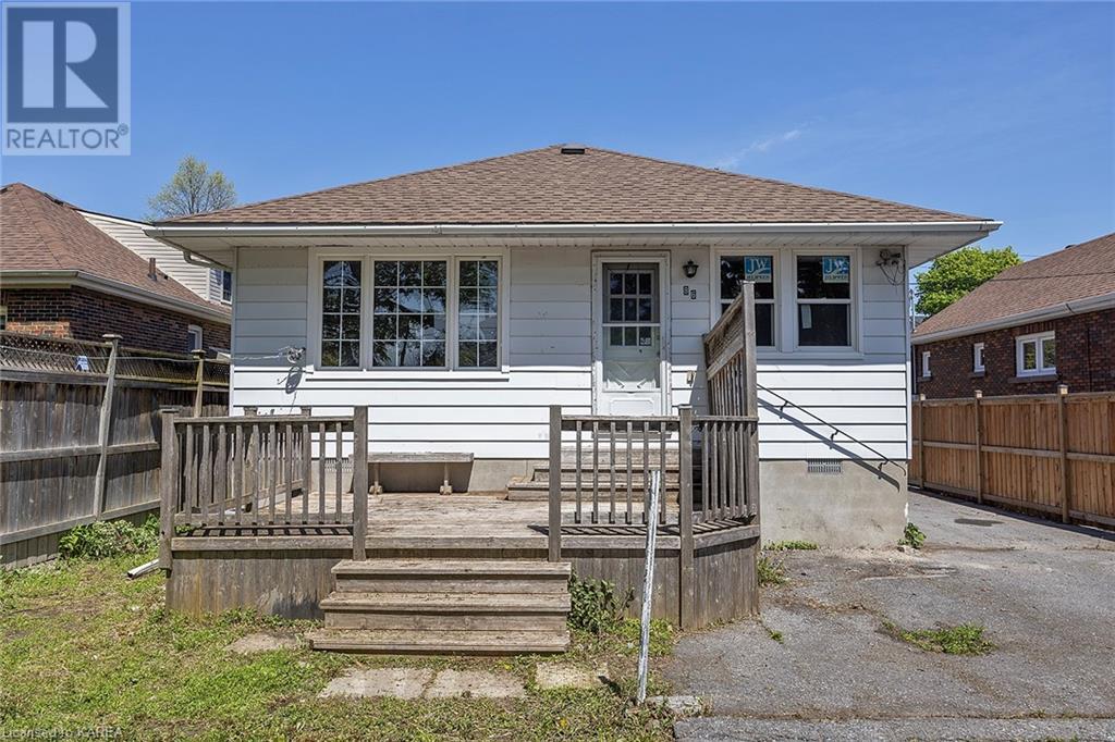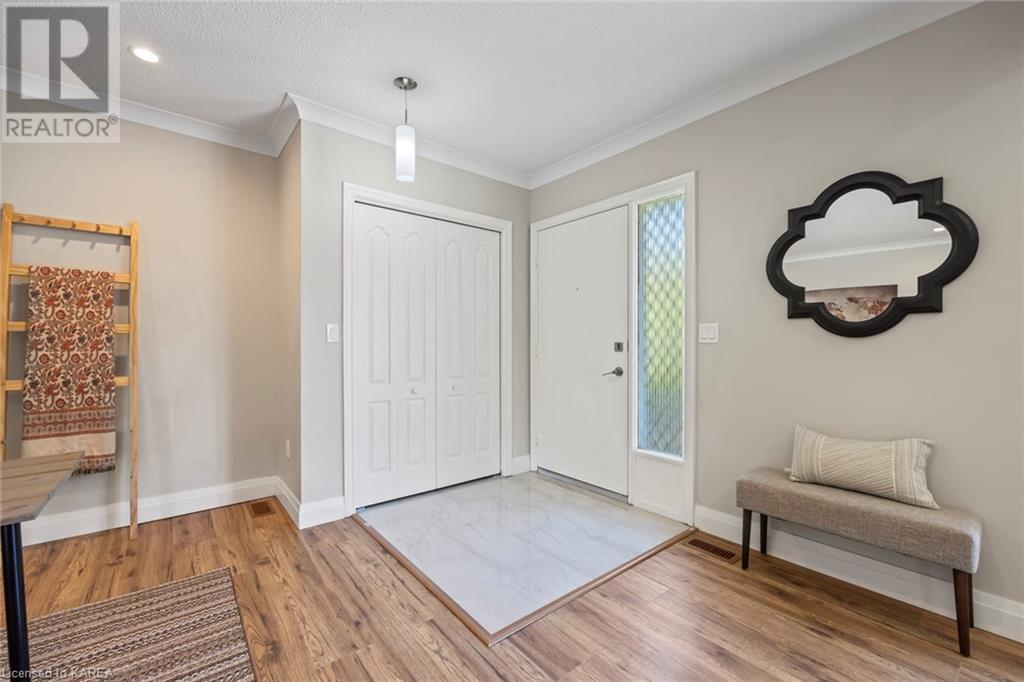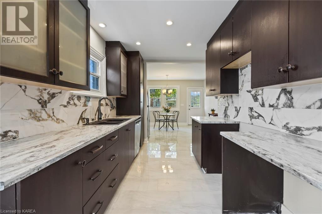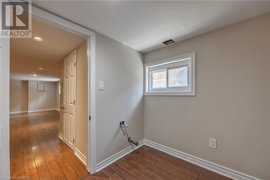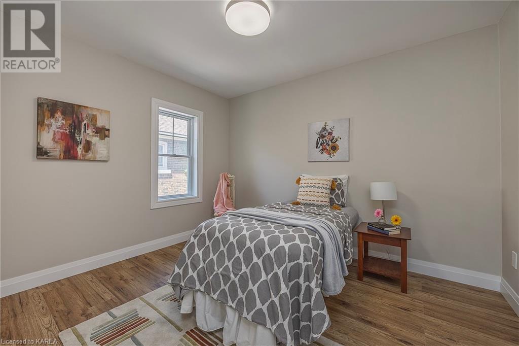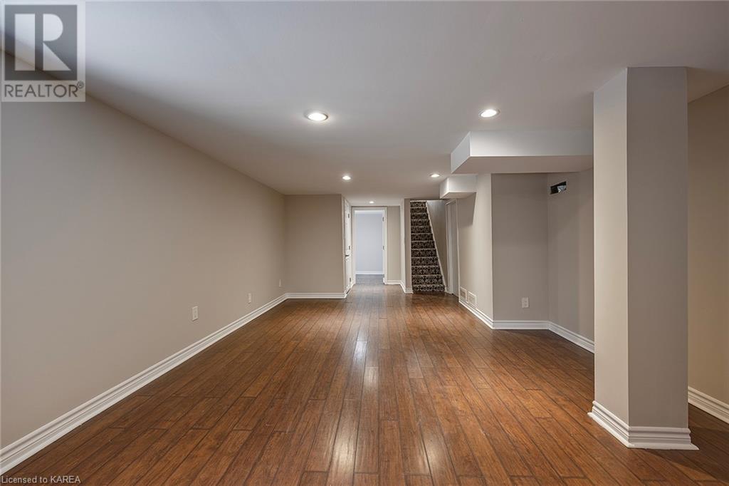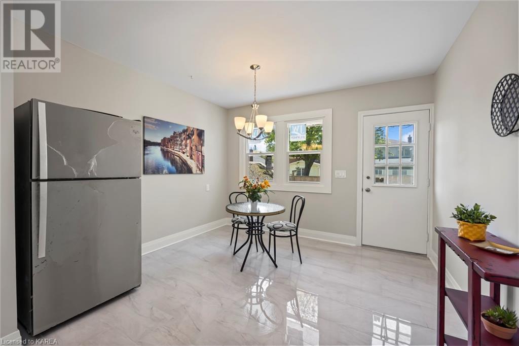 Charming and tastefully renovated elevated bungalow located in central Kingston! Only 10 min walk to downtown Kingston and situated on a quiet residential street near all amenities. Excellent schools, grocery stores, hospitals, restaurants all in the immediate area. This spacious 2 bedroom bungalow will provide you with lots of space to live and you will love the new renovations to flooring, main bathroom along with elegant pot lighting throughout the main floor. The living room is massive and bright! It is ideal for entertaining and could easily be reduced to allow for a 3rd upper level bedroom/office. The gallery kitchen offers lots of room for storage and leads to a dining nook with access to the backyard. The lower level is partly finished offering a large rec room ideal for an entertainment centre or play area for children. The basement is complete with a bathroom (2 piece) and a bonus room which could serve multiple purposes. Newer roof shingles (2021). The backyard can park 2 cars and there is a small deck leading to a small low maintenance backyard space. Quick possession available. (id:22211)