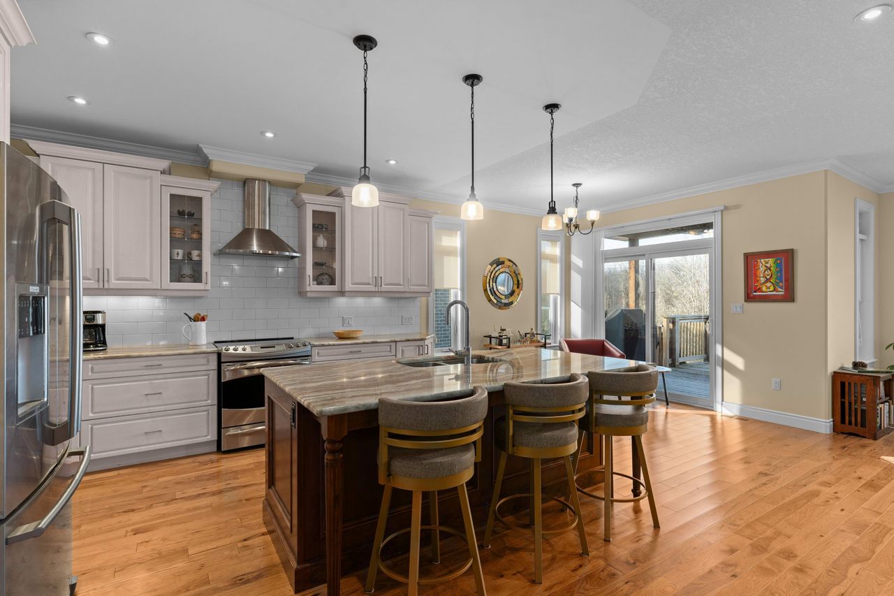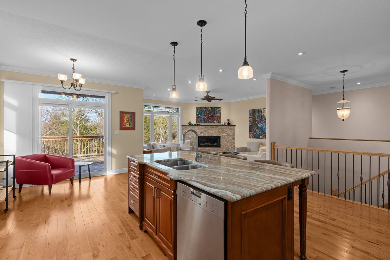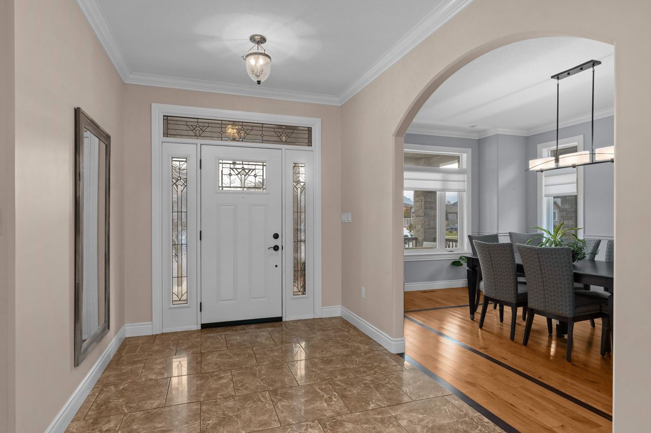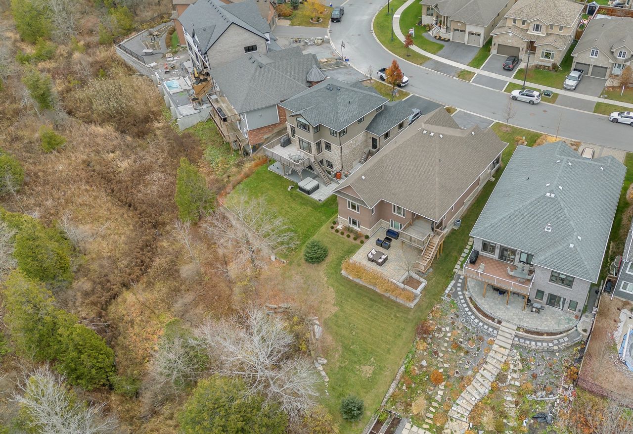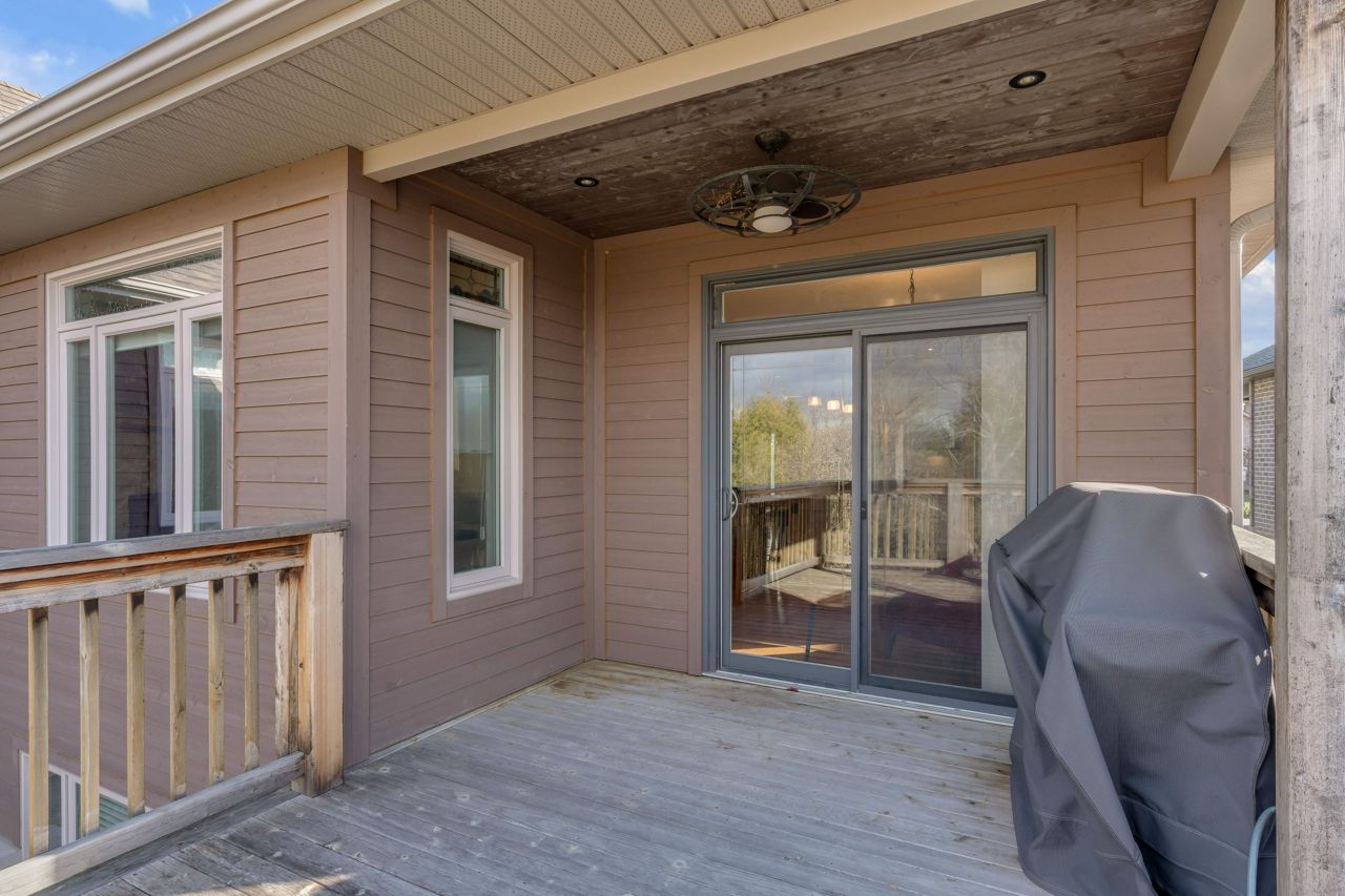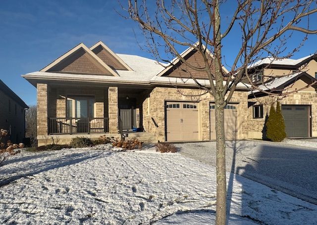 Executive bungalow located in the quiet neighborhood known as Westbrook Meadows. This custom home features a contemporary layout and design. Enjoy your morning coffee as you sit on the eastern facing covered porch. As you step inside to this open concept floor plan the upgrades are apparent. Gracious formal dining room with an adjoining Butler and walk-in pantry. The gourmet kitchen that features an abundance of cabinetry, granite countertops, subway tile backsplash, stainless steel appliances, a large center island and a breakfast nook with patio doors to the rear deck. The great room with a corner gas fireplace. The Primary suite with double closets, oversized windows and a tray ceiling with pot lights. A luxurious 5-piece ensuite bathroom with a soaker air tub, double vanity, walk in glass shower and in-floor heating. The second bedroom has a 4-piece semi ensuite bathroom. Convenient laundry room and an entrance to the 2-car attached garage. The Hardwood staircase leads you to the walk out lower level with a huge recreation room. The ideal flex space could that offers options such as a media room, gym or office. There are 2 additional bedrooms and a 3-piece bathroom and expansive storage and mechanical rooms. In 2022, the Scott Wentworth group designed and completed a spectacular backyard oasis complete with stone patios, retaining walls and lush perennial gardens. Highlighted by the views of the green space. The ultimate in outdoor living. This home is steps to the park and walking paths. Enjoy this quiet enclave that is close to all amenities.