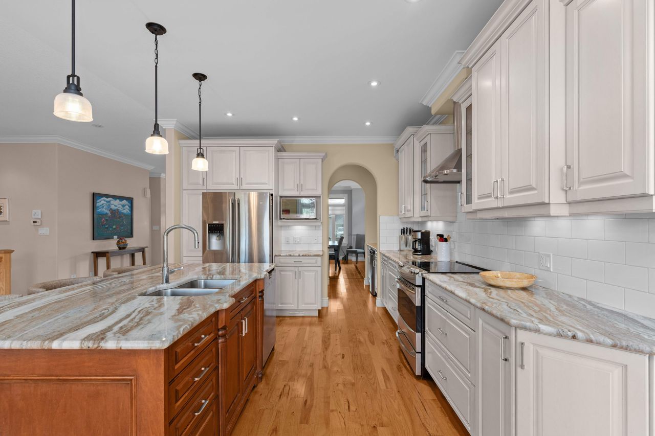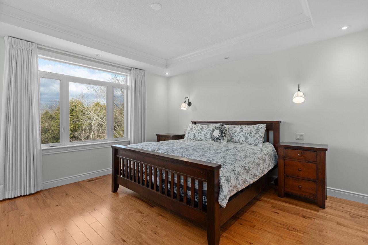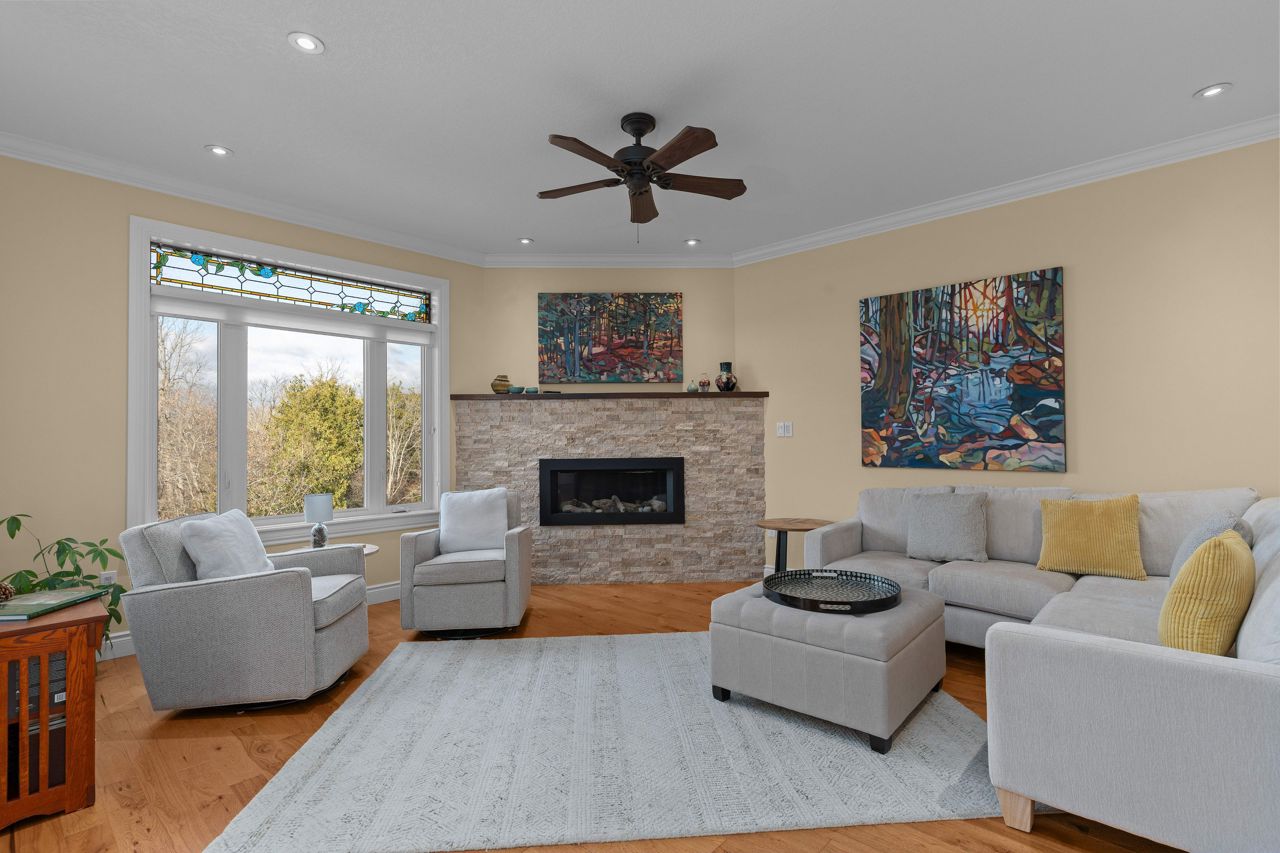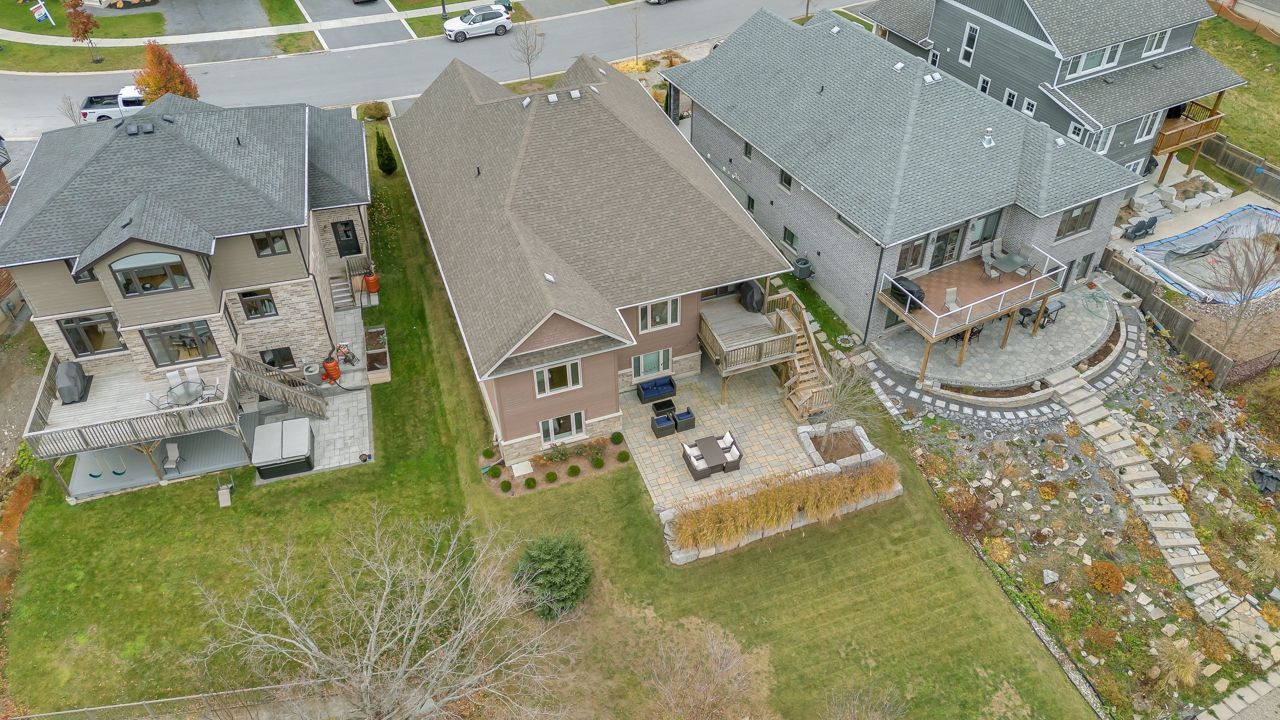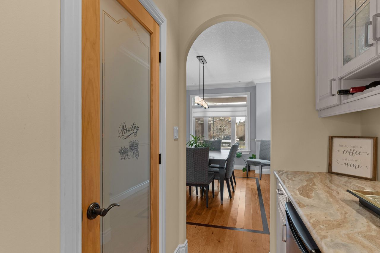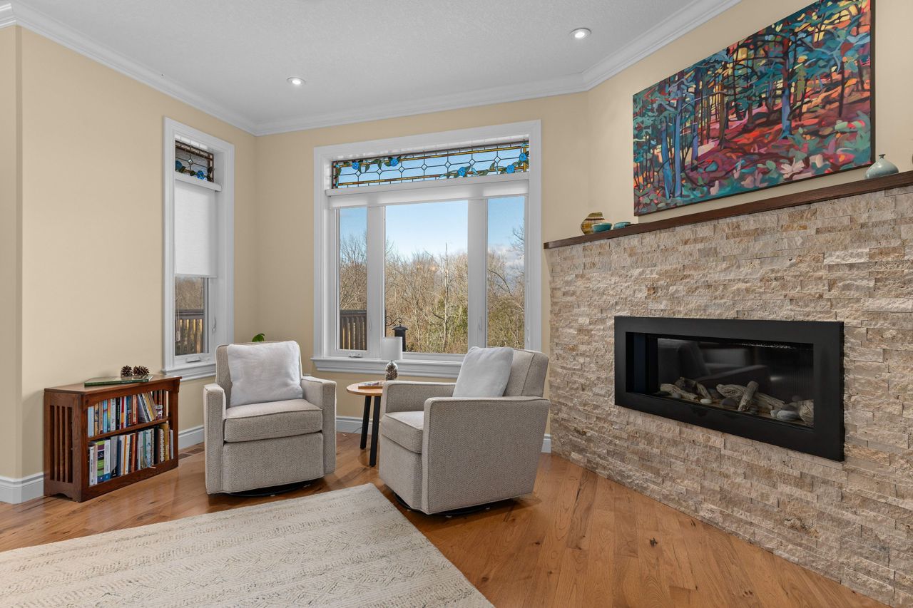 Executive bungalow located in the quiet neighborhood known as Westbrook Meadows. This custom home features a contemporary layout and design. Enjoy your morning coffee as you sit on the eastern facing covered porch. As you step inside to this open concept floor plan the upgrades are apparent. Gracious formal dining room with an adjoining Butler and walk-in pantry. The gourmet kitchen that features an abundance of cabinetry, granite countertops, subway tile backsplash, stainless steel appliances, a large center island and a breakfast nook with patio doors to the rear deck. The great room with a corner gas fireplace. The Primary suite with double closets, oversized windows and a tray ceiling with pot lights. A luxurious 5-piece ensuite bathroom with a soaker air tub, double vanity, walk in glass shower and in-floor heating. The second bedroom has a 4-piece semi ensuite bathroom. Convenient laundry room and an entrance to the 2-car attached garage. The Hardwood staircase leads you to the walk out lower level with a huge recreation room. The ideal flex space could that offers options such as a media room, gym or office. There are 2 additional bedrooms and a 3-piece bathroom and expansive storage and mechanical rooms. In 2022, the Scott Wentworth group designed and completed a spectacular backyard oasis complete with stone patios, retaining walls and lush perennial gardens. Highlighted by the views of the green space. The ultimate in outdoor living. This home is steps to the park and walking paths. Enjoy this quiet enclave that is close to all amenities.
