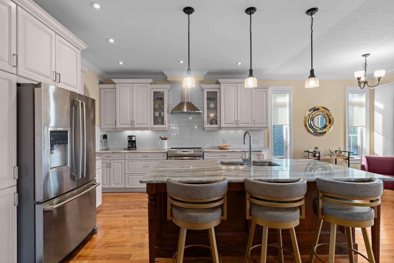 位于宁静的Westbrook Meadows社区的高管别墅。这栋定制住宅拥有现代布局与设计。清晨,您可以在朝东的有顶门廊上享受咖啡时光。步入开放式概念平面图的室内,升级之处显而易见。优雅的正式餐厅,配有相邻的管家储藏室和步入式食品储藏间。美食厨房配备丰富的橱柜、花岗岩台面、地铁瓷砖防溅板、不锈钢电器、大型中央岛台以及通往后方甲板的早餐角。宽敞的客厅设有角落燃气壁炉。主卧套房配有双衣柜、超大窗户和带嵌入式灯具的托盘天花板。豪华的五件套套间浴室,配有浸泡式空气浴缸、双洗手台、步入式玻璃淋浴间和地暖。第二间卧室配有一个四件套半套间浴室。便利的洗衣房和通往两车位连体车库的入口。硬木楼梯引领您通往带有巨大娱乐室的步入式地下室。理想的灵活空间,可用作媒体室、健身房或办公室。还有两间额外的卧室、一个三件套浴室以及宽敞的储物间和机械室。2022年,Scott Wentworth团队设计并完成了壮观的庭院绿洲,包括石质露台、挡土墙和茂盛的多年生花园,以绿地景观为亮点,打造极致户外生活体验。此住宅靠近公园和步行道,让您享受这个靠近所有便利设施的宁静小区。