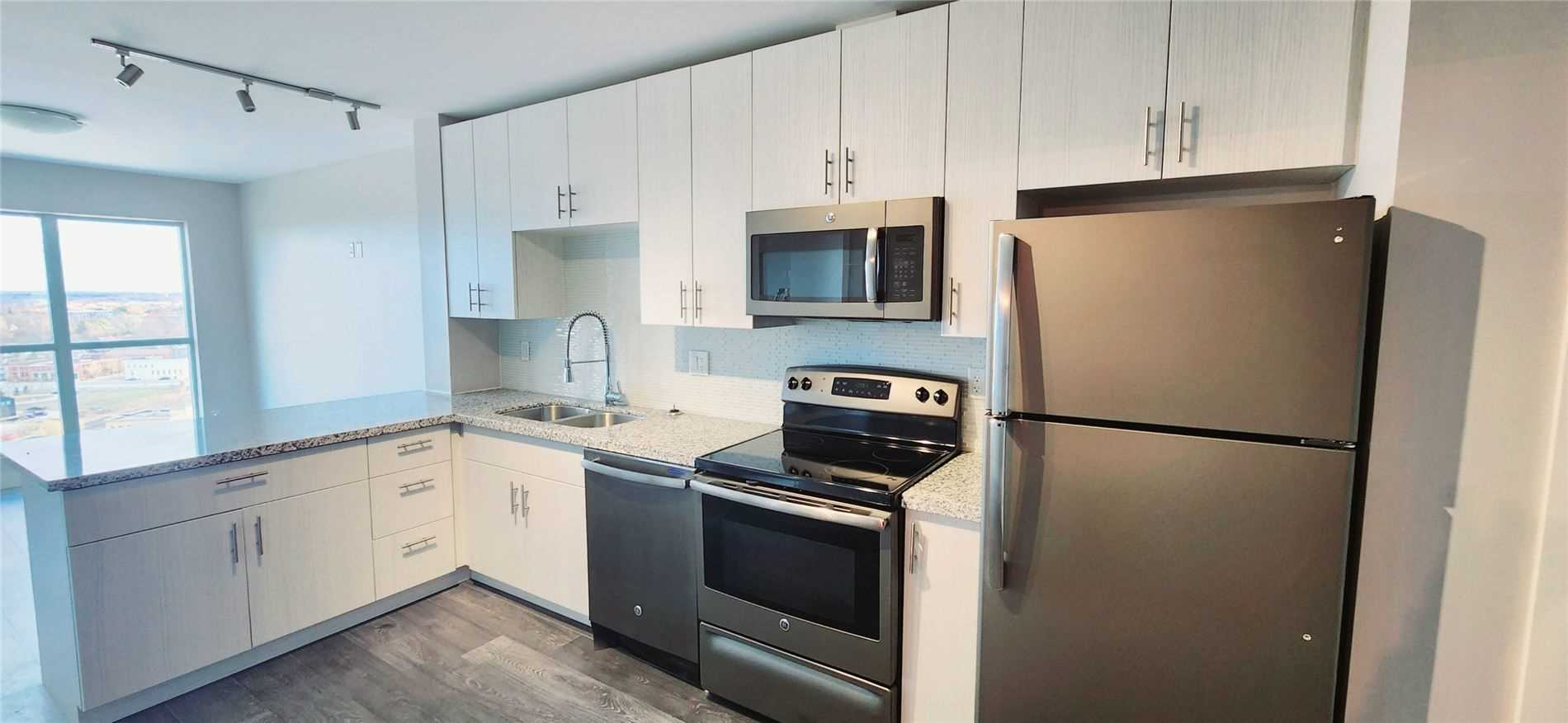 Absolutely Stunning One Victoria Condominium Unit Overlooking King St. This Beauty With One Bed/ One Bath, Modern Kitchen With Backsplash, Quartz Countertops, Stainless Appliances, And Breakfast Bar, Floor Completed W/Laminate, In Unit Laundry, One Underground Parking Space And Locker. Located In The Heart Of The "Innovation District" Steps Away From Google, The Tannery, Down Town Kitchener, U Of W School Of Pharmacy, Lrt, Go Train, Shops And Much More. S/S Fridge, Stove, B/I Dishwasher, B/I Microwave & White Washer And Dryer. Bbqs Allowed, Exercise Room, Media Room, Party/Meeting Room, Visitor Parkiing
