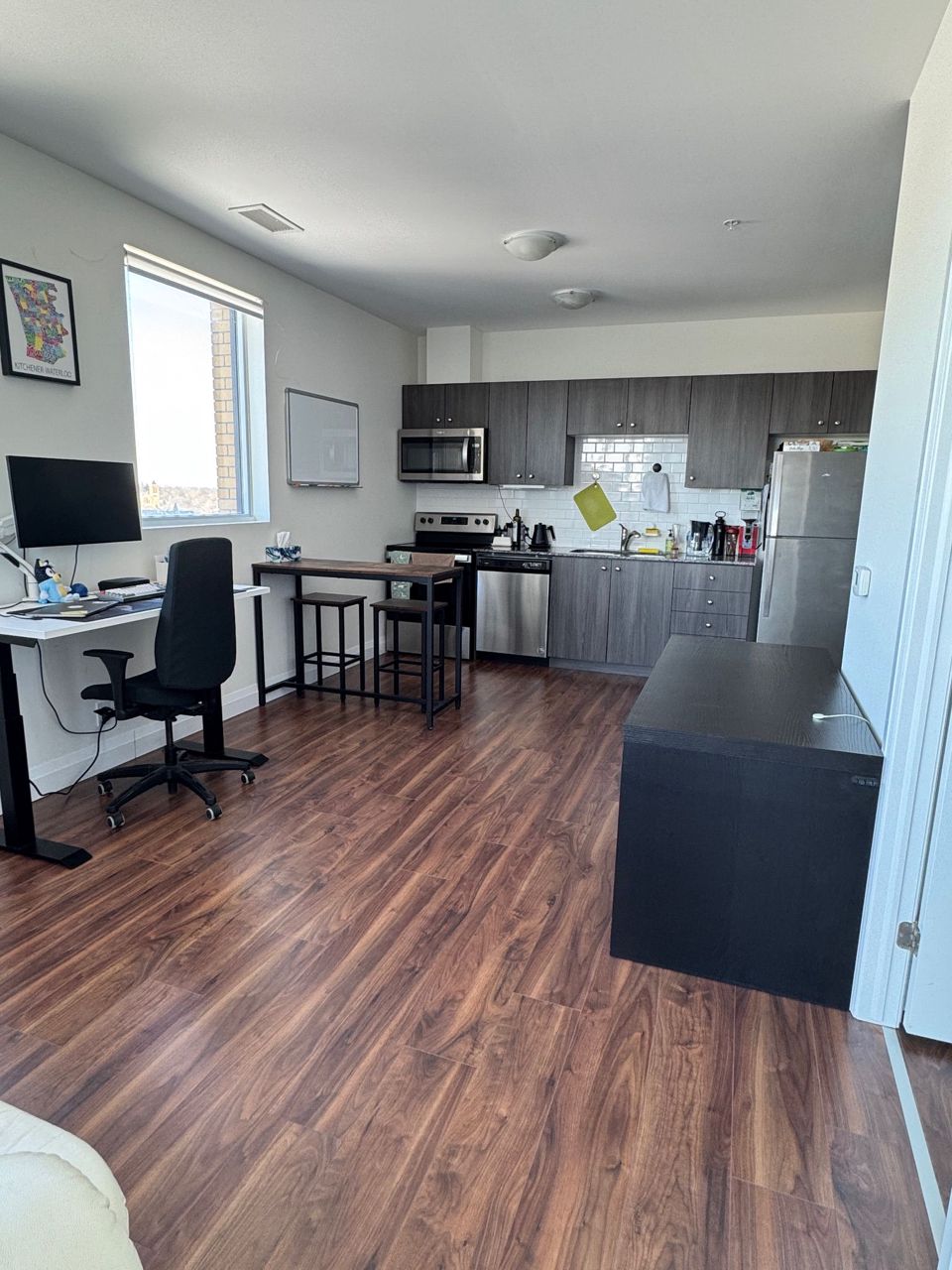 基奇纳市中心超宽敞一居室转角单元出租!!位于市中心黄金地段,几乎全包租金的理想选择!这套位于1107-104 Garment St的大型一居室、一卫转角单元,提供现代宽敞的居住体验,配有室内洗衣机和全景阳台。月租金包含暖气、水费、中央空调、高速网络以及储物柜,确保便利与价值兼具。享受顶级楼宇设施,包括先进健身房、屋顶露台和花园、影院、派对室等。步行指数极高,周边公园、超市、餐厅及多种公共交通(如城市公交、GO火车站点和轻轨)近在咫尺,轻松探索基奇纳和滑铁卢。这是一个难得的机会,以无额外成本享受高端都市生活。立即预约看房吧!**额外亮点** 工程硬木地板,开放式阳台设计,转角单元!!