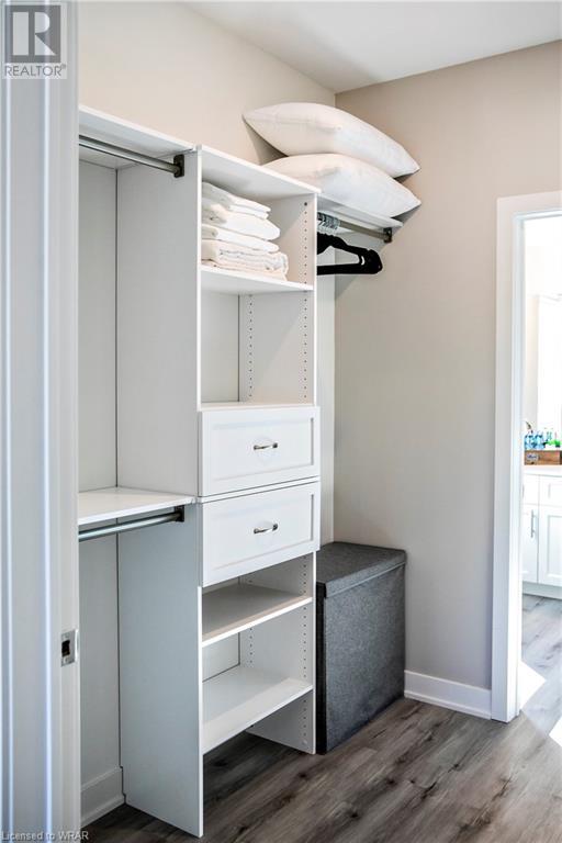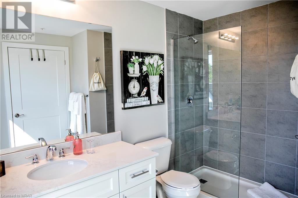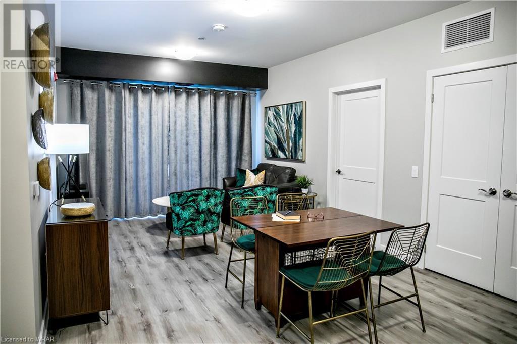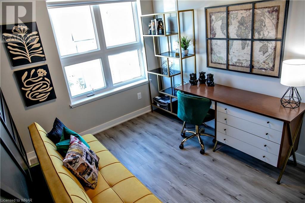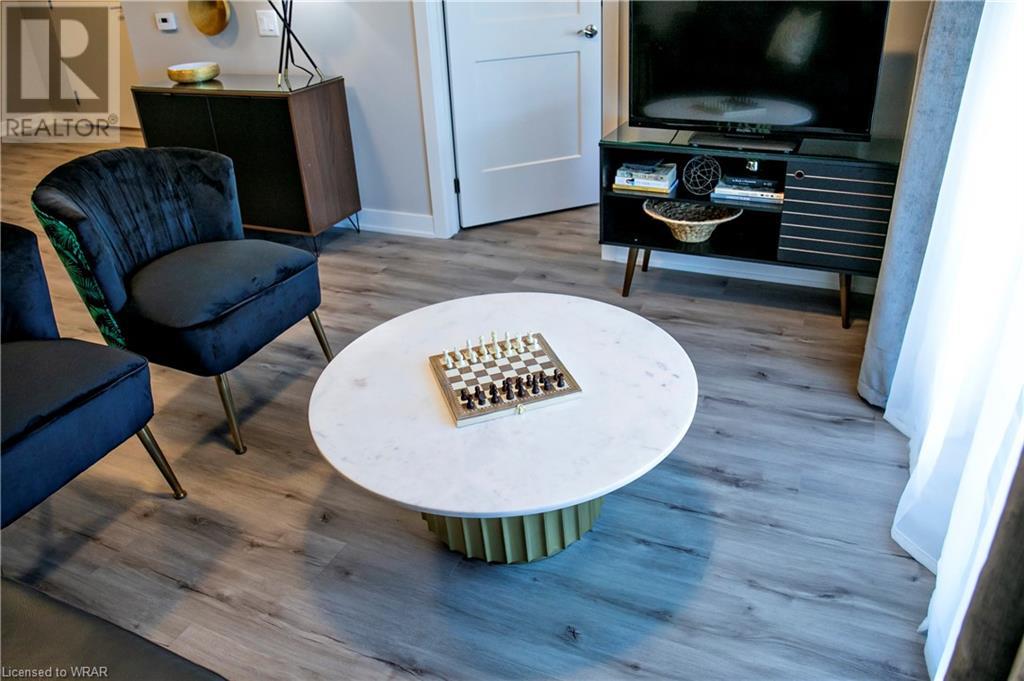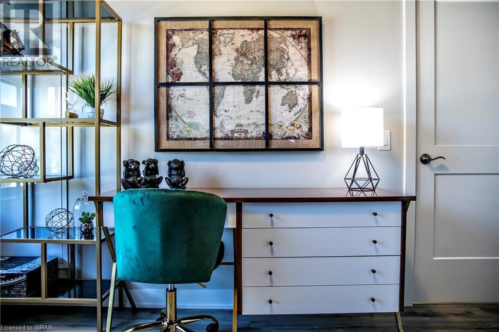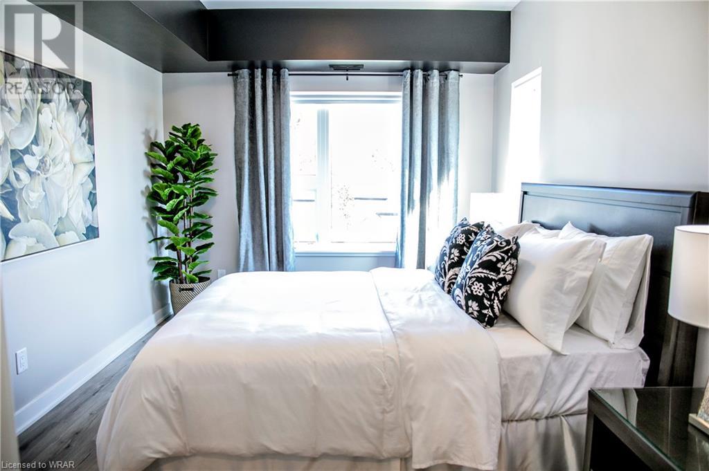 TWO underground parking spots, TWO bedrooms, TWO full baths - Don't miss this one! A suite that has everything you could need. This property is perfect for the divorcee starting over, someone immigrating to the Waterloo Region, the first time buyer leaving the rental scene. Updates include shaker style cabinetry, carpet-free throughout with luxury vinyl plank flooring, primary suite with built-in closet organizers and walk-in shower. This unit is the SEQUOIA floor plan with 9' ceilings, on-demand hot water, stacked washer/dryer, stainless appliances, quartz countertops. The second bedroom is currently set up as a den with an exquisite feature wall, perfect for working from home. This corner unit faces west letting that gorgeous afternoon sun in. Enjoy your morning coffee on your private balcony! Amenities include a stunning courtyard complete with landscaping, outdoor furniture and BBQ; a private party room that anyone would love; moving room, garbage and recycling room and an awesome underground garage complete with bicycle storage area - parking issues are solved this winter! You'll be proud to own this suite! Close to highways, 401, public transit and major shopping centres. All furnishings are available. (id:22211)