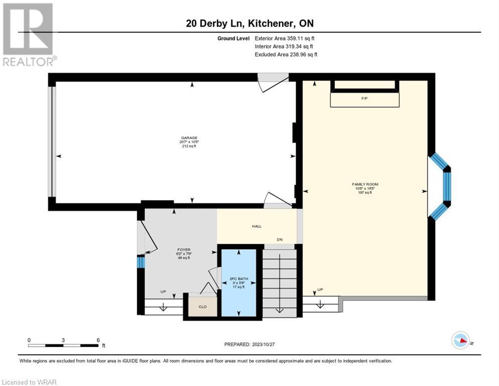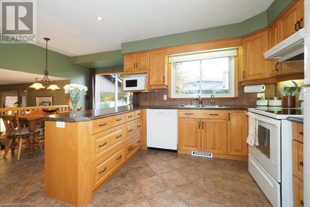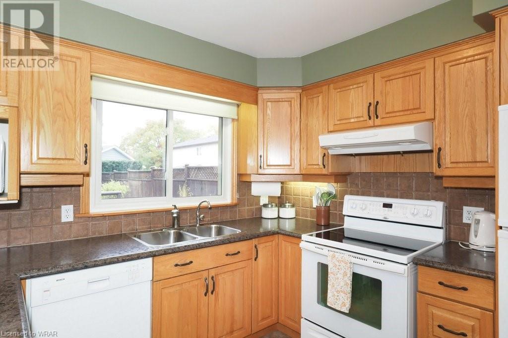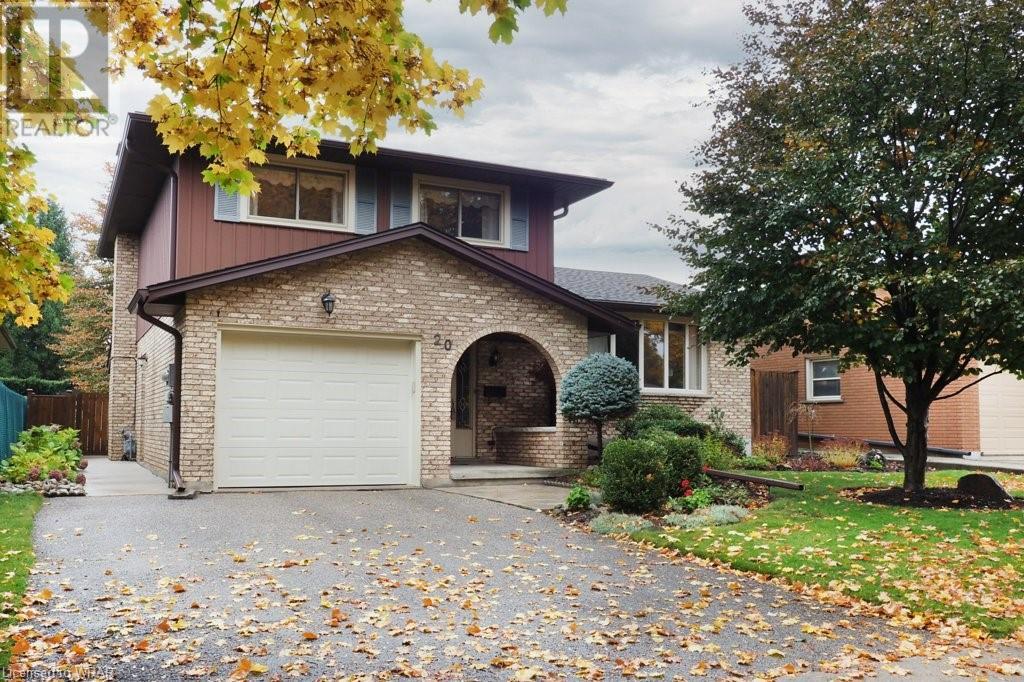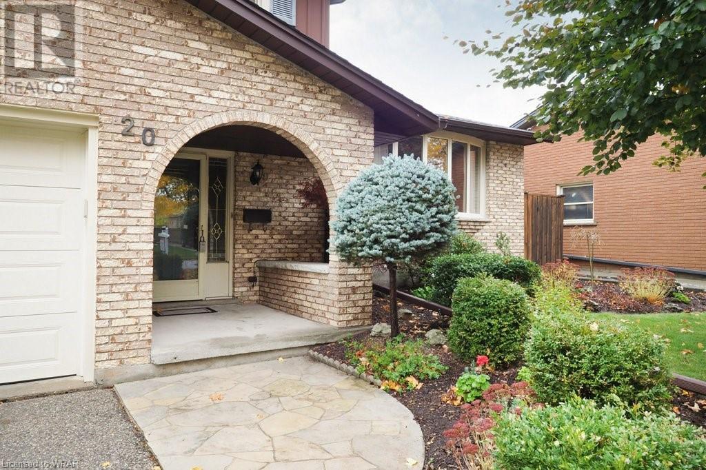 Welcome to 20 Derby Lane in Kitchener, a lovely single, detached side split in the sought-after neighbourhood of Grand River North. This well cared for home features 3 bedrooms and 2 1/2 bathrooms. The main floor includes a cozy family room with a fireplace and a 2 piece bathroom. Walk up a few steps to the living room, dining area, and the kitchen with quality oak cabinetry. Walk out to the beautiful yard with a covered patio and gardens. Finished rec room with lots of storage areas and laundry. Single car garage and driveway parking for 3 vehicles. Close to shopping, Chicopee Ski Hills and amenities! (id:22211)
