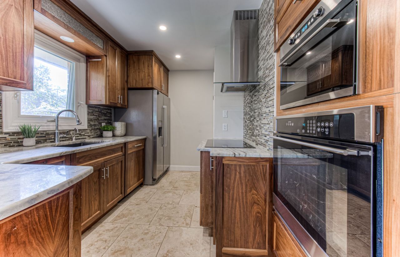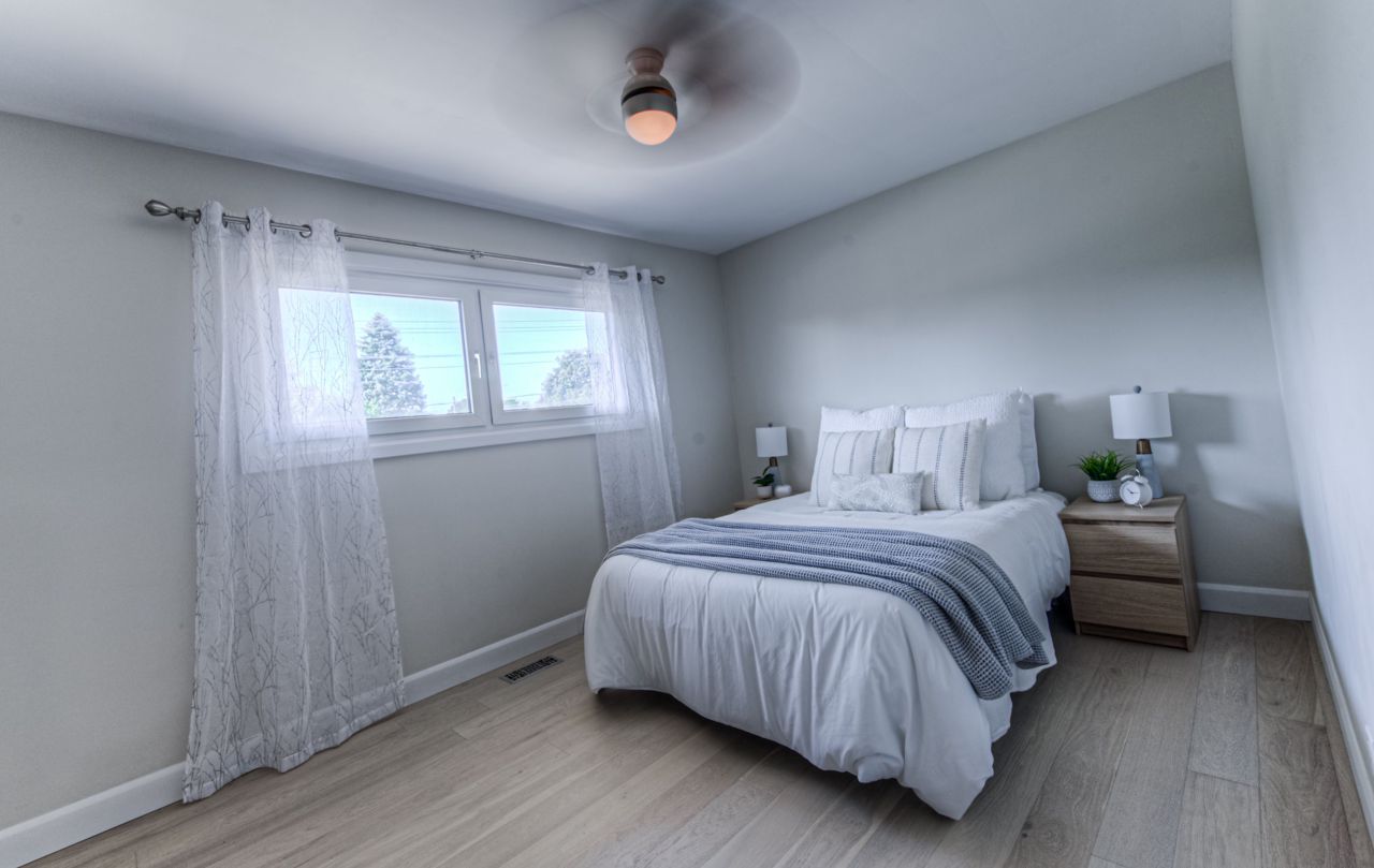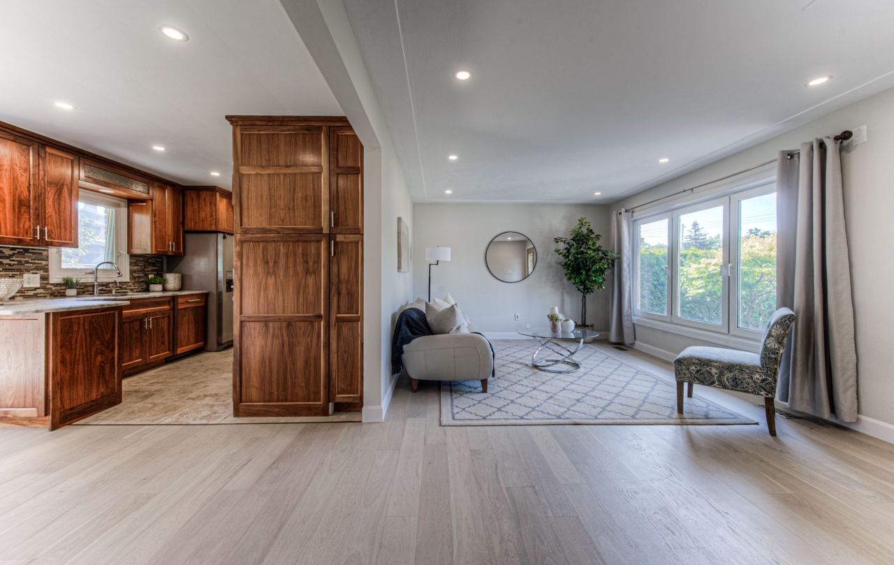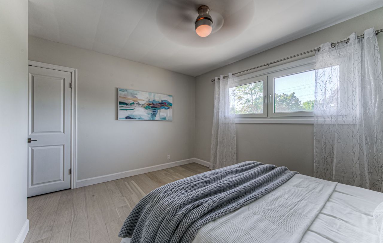 Introducing this charming raised bungalow with a single garage, stamped concrete driveway, and manmade stone steps to the covered front porch. Inside, the spacious living room is bathed in light. The updated kitchen boasts real wood cabinets, stainless steel appliances, an on-demand hot water tap, and ceramic floors. The adjacent dining area leads to a covered deck and a private fenced yard. Engineered hardwood flooring spans the main level, featuring three bedrooms and an updated 4-piece bathroom. The basement, with a separate side entrance, offers new laminate flooring, laundry, a shower, and a two-piece bathroom. It also has a walk-out to the garage and storage space. Fresh paint throughout enhances its appeal. Situated in a sought-after neighborhood, this home combines comfort, style, and convenience. Don't miss your chance to make it yours!