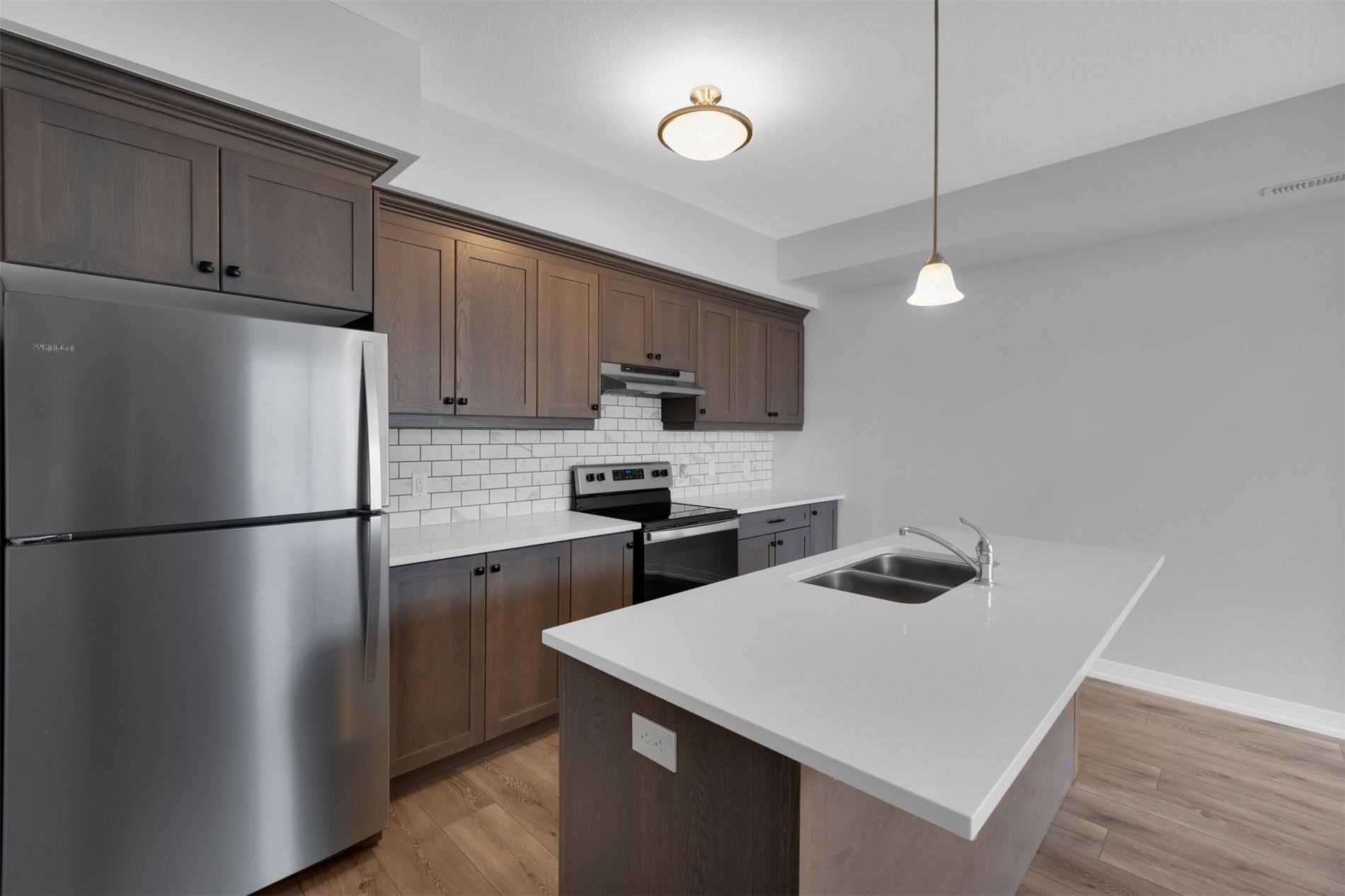 Brand New Townhome Is Beautifully Situated Near Highways, Trails, Parks And Schools. This Home Has Two Bedrooms and Three Washrooms. It Also Includes Two Duradek Balconies Located Outside The Living Area And Primary Bedroom. This Open Concept Townhome Has Laminate Flooring Throughout With An Upgraded Kitchen; With Quartz Counter Tops. The Townhome Includes One Surface Level Parking and One Year Free 1GB Internet From Bell. *All Utilities Paid By Tenant*Fridge,Stove,Washer,B/Idishwasher,Dryer,Elf's,Window Coverings,Cac.Required:Rental App,Credit Check W/Score,Employment Letter,Pay Stubs,References Certified 1st&Last Month Deposit,Key Deposit,10Post Dated Cheques,Tenant Insurance,Govt Id's.