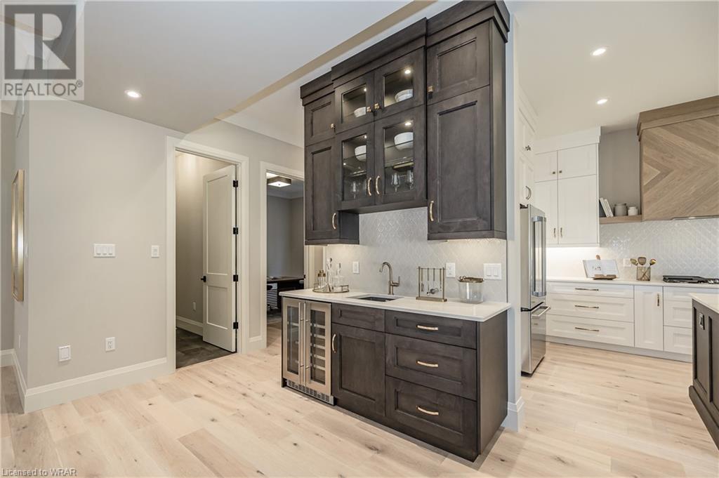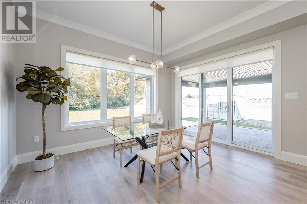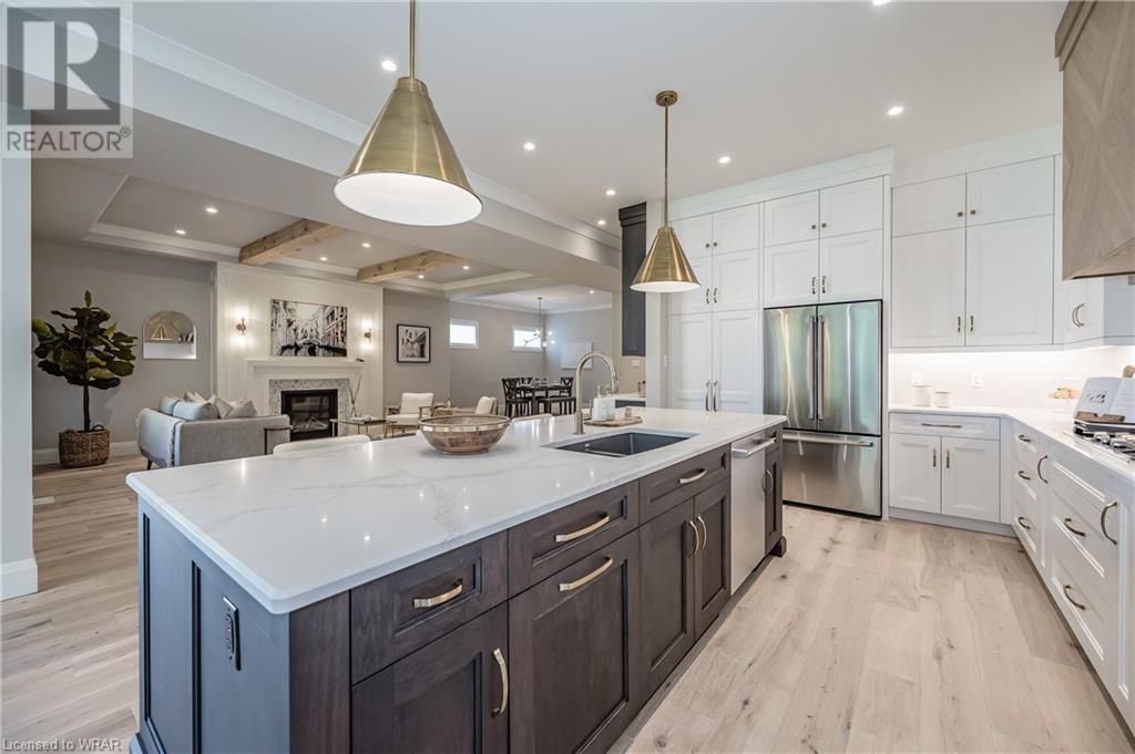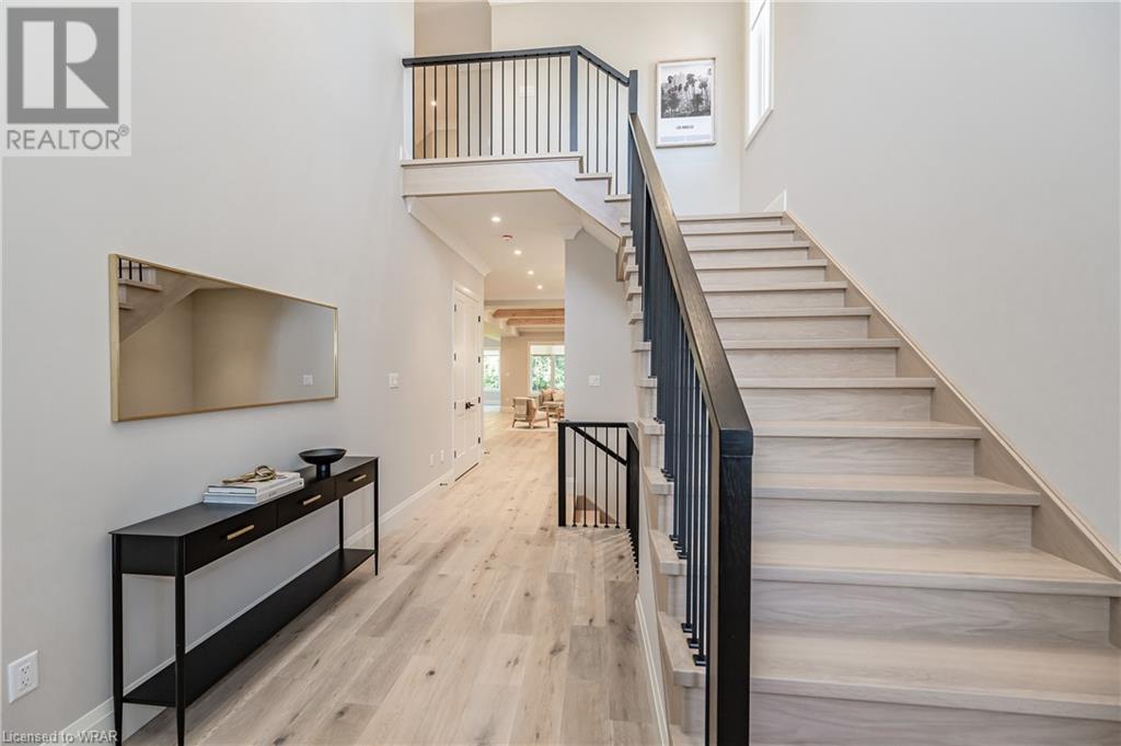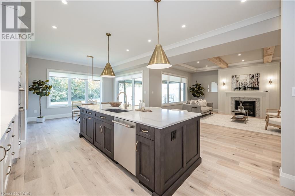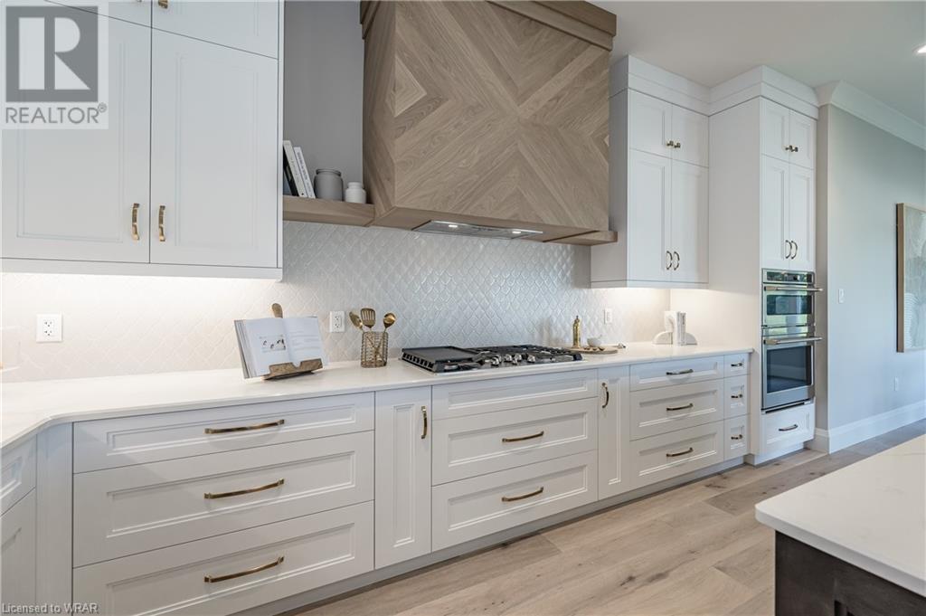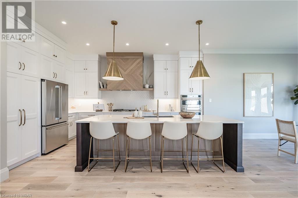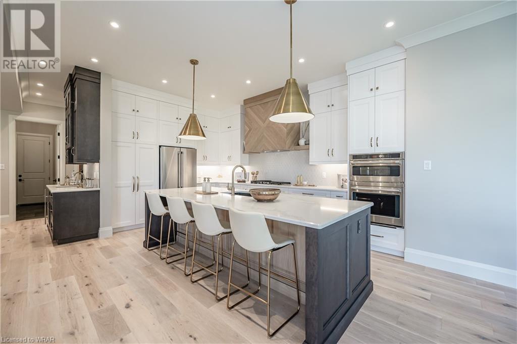 This brand new Klondike-built MOVE-IN READY home is located on a family-friendly street in one of KW's most exciting new neighbourhoods Blue Springs Village. Welcome to 279 Otterbein Road in Kitchener! This home has over 4500 sf of finished living space w/ 5 bedrooms, 4.5 bathrooms, an open concept main floor, luxurious primary suite & pool-sized yard. This home was curated to create an unmatched living experience. The quality craftsmanship & elegant touches throughout are second to none. The main floor features 10' ceilings, white oak engineered hardwood floors, crown moulding, custom ceiling details, & an open-concept floor plan flooded w/ natural light. The kitchen is home to top of the line stainless steel appliances including a gas range & combination wall oven. Chervin-built cabinetry, a custom white oak range hood, calacatta quartz countertops & Brizo faucets offer uncompromising quality & luxury. Enjoy family breakfast in the dinette, or formal dinners in the dedicated dining space w/ a wet bar nearby making hosting a breeze! The stunning second floor is home to 3 spacious bedrooms, each w/ a walk-in closet & access to an ensuite. The Primary Suite offers room for a king size bed w/ a dedicated sitting area showcasing the beautiful views that the Blue Springs Wooded Natural Area offers. W/ two large walk-ins closets & a 5-pc ensuite complete w/ a soaker tub you can truly relax & unwind. In addition, this home features a fully finished basement which includes 1 additional bedroom, full bathroom, large windows & room to grow. A Klondike-built home offers buyers the full package: a move-in ready home complete with appliances, window coverings, a paver stone driveway & landscaped yards. Premium location w/ hwy access, shopping, parks, trails, & plenty of amenities. Chicopee Resort, Bingemans & the Grand River nearby. Convenient access to Waterloo, Guelph and Cambridge. In a home with contemporary, yet classic design, you will see that no detail has been spared! (id:22211)