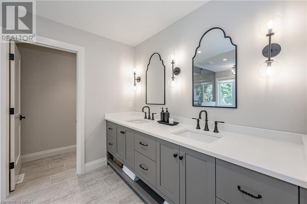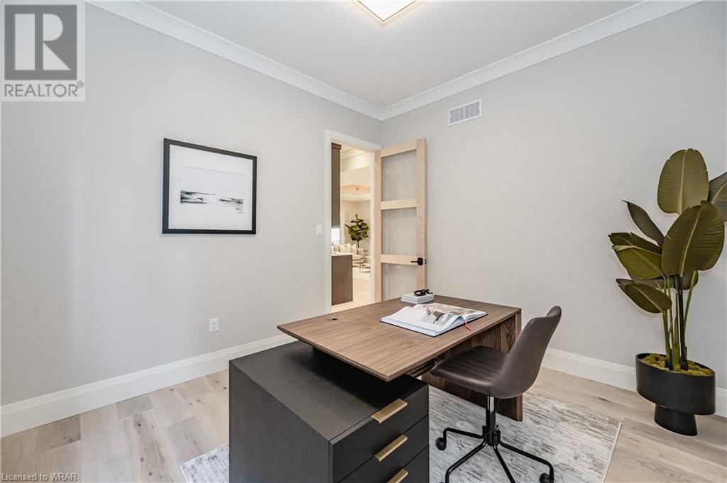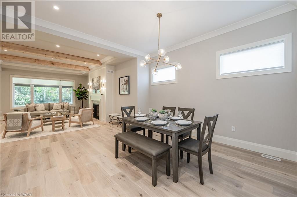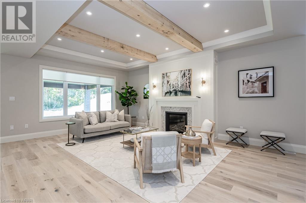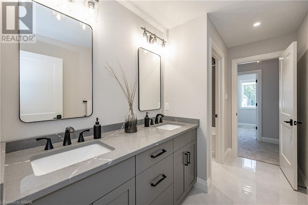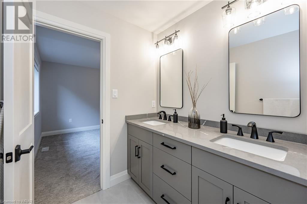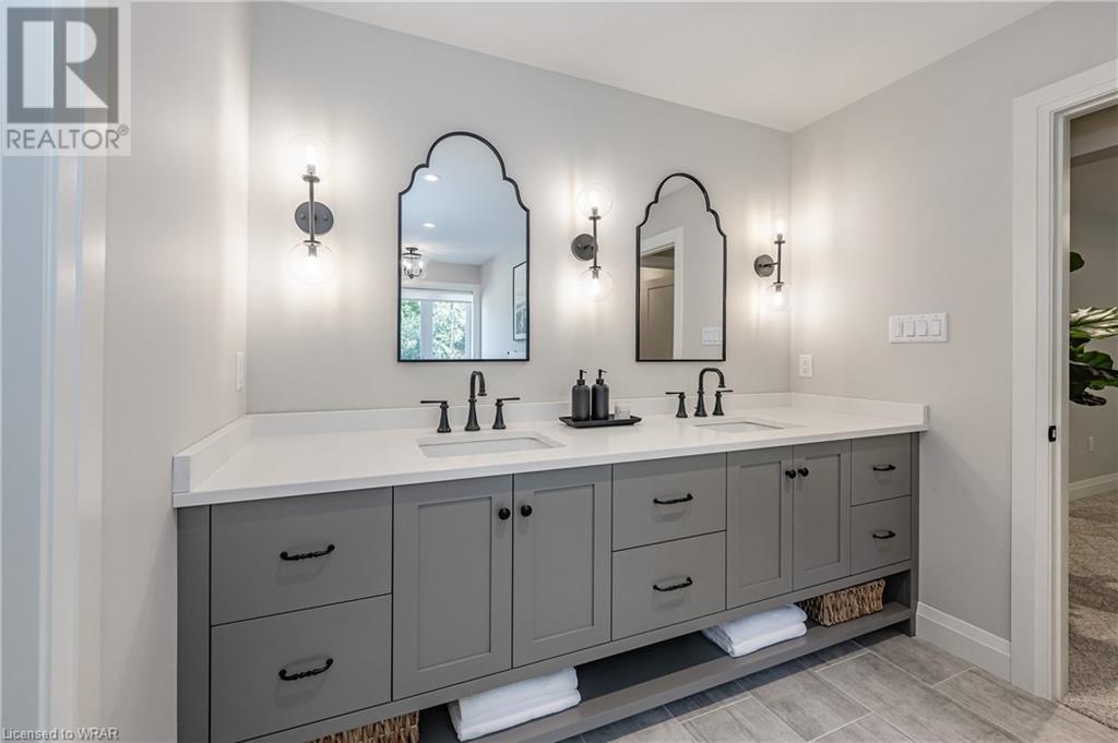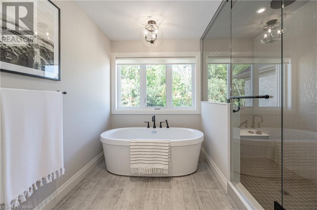 This brand new Klondike-built MOVE-IN READY home is located on a family-friendly street in one of KW's most exciting new neighbourhoods Blue Springs Village. Welcome to 279 Otterbein Road in Kitchener! This home has over 4500 sf of finished living space w/ 5 bedrooms, 4.5 bathrooms, an open concept main floor, luxurious primary suite & pool-sized yard. This home was curated to create an unmatched living experience. The quality craftsmanship & elegant touches throughout are second to none. The main floor features 10' ceilings, white oak engineered hardwood floors, crown moulding, custom ceiling details, & an open-concept floor plan flooded w/ natural light. The kitchen is home to top of the line stainless steel appliances including a gas range & combination wall oven. Chervin-built cabinetry, a custom white oak range hood, calacatta quartz countertops & Brizo faucets offer uncompromising quality & luxury. Enjoy family breakfast in the dinette, or formal dinners in the dedicated dining space w/ a wet bar nearby making hosting a breeze! The stunning second floor is home to 3 spacious bedrooms, each w/ a walk-in closet & access to an ensuite. The Primary Suite offers room for a king size bed w/ a dedicated sitting area showcasing the beautiful views that the Blue Springs Wooded Natural Area offers. W/ two large walk-ins closets & a 5-pc ensuite complete w/ a soaker tub you can truly relax & unwind. In addition, this home features a fully finished basement which includes 1 additional bedroom, full bathroom, large windows & room to grow. A Klondike-built home offers buyers the full package: a move-in ready home complete with appliances, window coverings, a paver stone driveway & landscaped yards. Premium location w/ hwy access, shopping, parks, trails, & plenty of amenities. Chicopee Resort, Bingemans & the Grand River nearby. Convenient access to Waterloo, Guelph and Cambridge. In a home with contemporary, yet classic design, you will see that no detail has been spared! (id:22211)