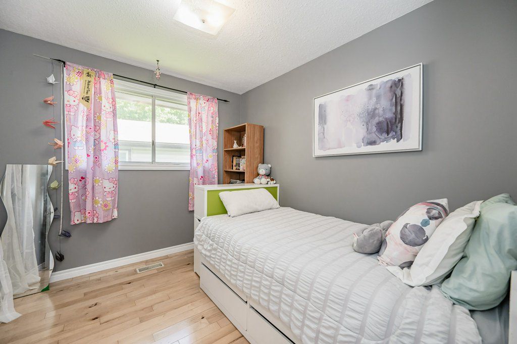 Welcome home! This well-maintained bungalow would make a great first home or investment property! Separate side entrance with walkout basement suitable for in-law suite or possible accessory apartment / duplex. Backing to treed greenspace making for a peaceful rear yard. 3 bedrooms upstairs plus 1 in the basement. Recent updates include hardwood flooring, kitchen vinyl plank (2023), kitchen counters (2023), electrical (2017), furnace (2020), and air conditioner (2021), dining room window (2022), water heater (2022), 3pc basement washroom (2020), basement sliding door (2019), attic insulation (2018). Located on a quiet crescent within walking distance of groceries, pharmacy, public transit, schools, and parks, including McLennon Park. Call your realtor to book your private viewing today!In-law Capability