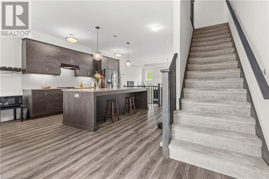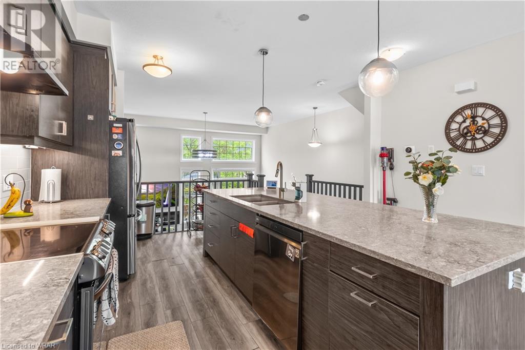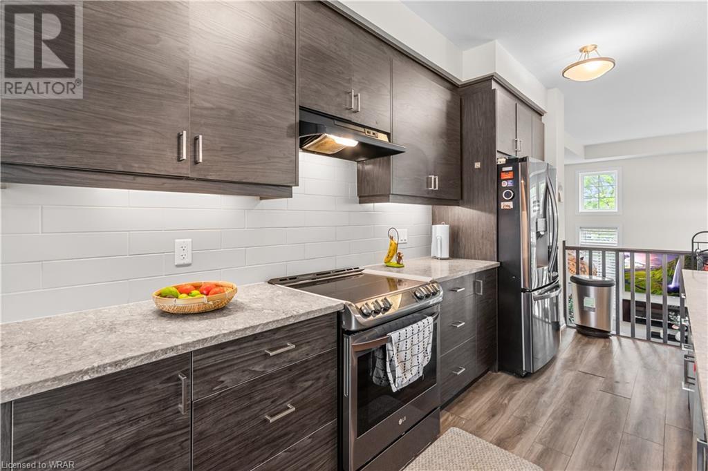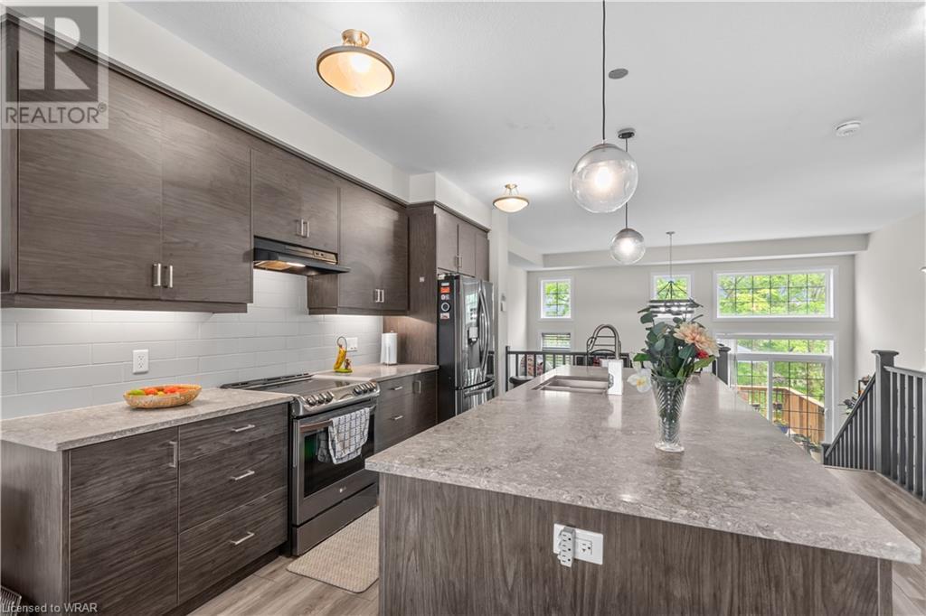 Welcome to 44 BANK SWALLOW CRESCENT, KITCHENER! Beautiful executive 3 bedroom townhome now available for RENT. 3 Storey Townhouse With its neutral decor & loads of upgrades, you won't be disappointed. Drive into this only 3 years old townhouse which comes with attached Garage & Driveway. Step inside the spacious foyer overlooking the tastefully done Powder Room. The Main & 2nd level is CARPET-FREE featuring Engineered HARDWOOD FLOORING. Step up to the Huge Great Room perfect for family gatherings, flooded with natural lights from wall of windows which provide access to outside on the beautiful deck where you can enjoy your Morning coffee or Evening Sunsets with spectacular scenic views & no BACKYARD NEIGHBOUR. Moving up to the 2nd level is stylish kitchen with Granite countertops, Voguish light-coloured cabinetry, SS Appliances, Subway tiled backsplash & huge Island in the centre. Formal Dining area adjacent to the kitchen has sliders that extends the living space with access to the Enclosed Balcony which adds another entertaining/bbq option. Moving to the upper floor, there are 3 sizeable bedrooms which includes huge primary bedroom with a large Walk-in closet and 5Pc en-suite with Glass Walk-in shower, Soaker Tub and Double Vanity. Two more generously sized bedrooms with full 4pc bath with Tiled Shower/Tub combo & Laundry complete the Upper Floor. Downstairs is Finished Space which would make a great family room/playroom, office space or perfect for a personal gym. This Gorgeous house with low condo fee includes HIGH SPEED INTERNET is rare to find. Location here is fantastic, plenty of new parks, golf and trails that bring you close to nature yet conveniently located just minutes to Top rated Schools, Conestoga college, Fairview mall, Hwy 401,7 & 8 for easy commuting. Don't miss this incredible house - Book a showing before it is gone! (id:22211)