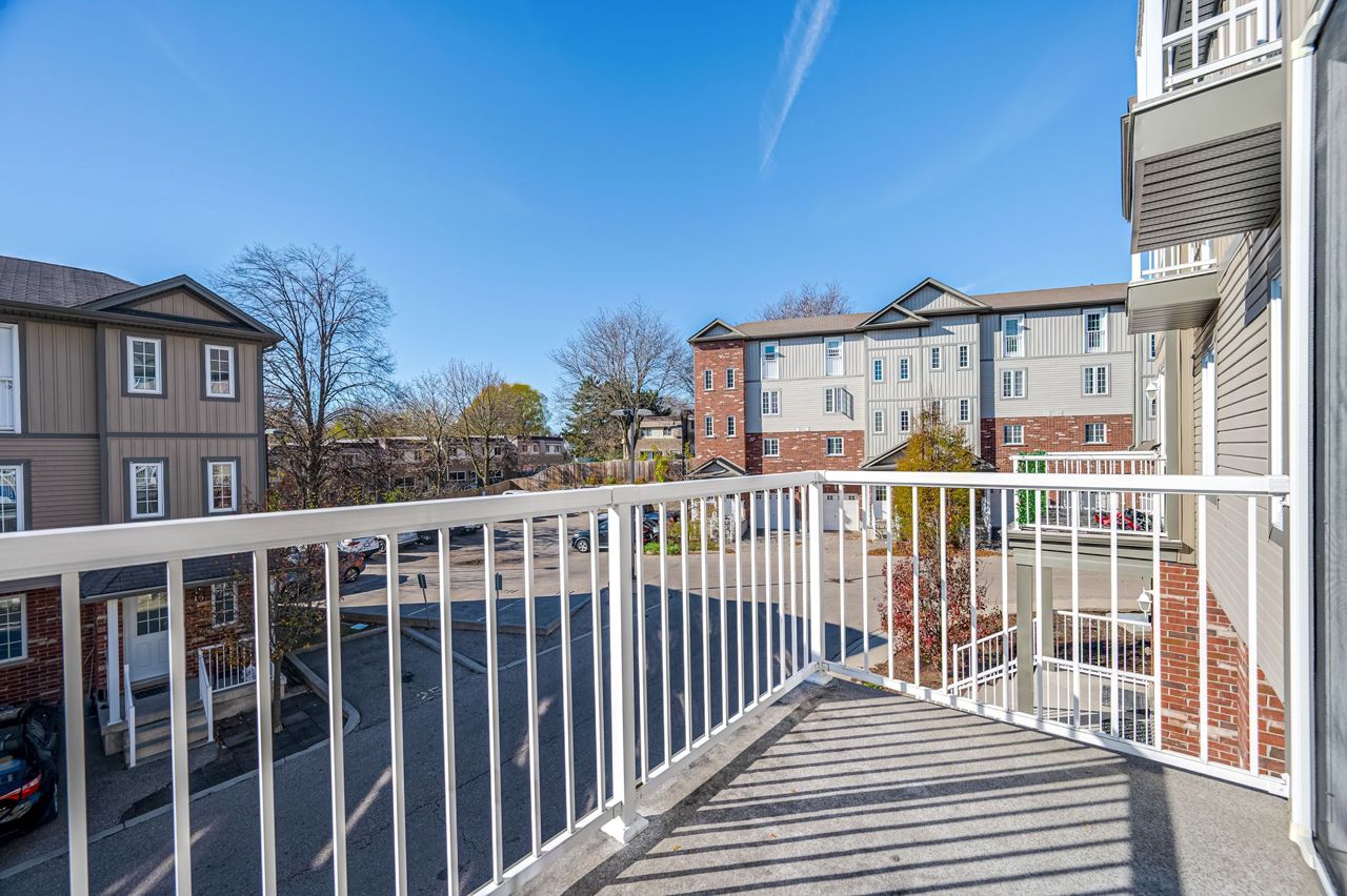 Welcome home to 55 Mooregate Cres Unit 15B. Location! Location! This large 2 bedroom 2 bathroom townhouse, is nestled in the quiet and family oriented neighborhood of Victoria Hills. Conveniently located close to schools, parks, public transit, places of worship, shops, and just minutes from downtown Kitchener, this home is perfect for first time homebuyers, investors and anyone who loves the perfect blend of modern living and incredible convenience. The main floor features an open concept living room with lots of natural light and a walk-out to private balcony for outdoor enjoyment. The open eat-in kitchen offers plenty of storage space, a wooden countertop and stainless steel appliances. The upper level features two large bedrooms with double closets, a 3 Pc bathroom and laundry room with reasonable storage space. The primary bedroom has a Juliette balcony adding a touch of elegance to the exterior. Delightfully with one parking space on the driveway just outside the front entrance and low maintenance fees of $237.32 rest assured this home will not disappoint you. Plenty of visitor parking completes this cozy and elegant townhouse.