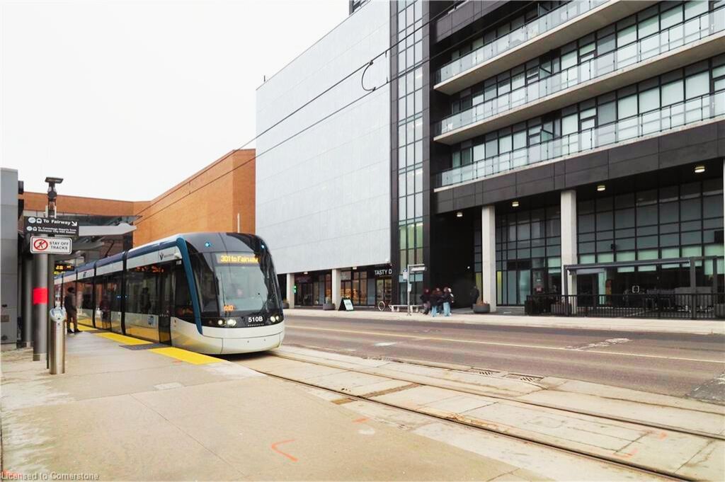 Upscale living in Kitchener's Innovation District, just steps from Google & Communitech. Designed for professionals who appreciate quality and efficiency, this 1-bedroom, 1-bath condo offers 549 square feet of well-planned living space, plus a 106 sqft balcony, in the heart of Kitchener's tech hub. Step inside to discover a bright, open-concept layout with floor-to-ceiling windows, offering stunning city views and an abundance of natural light. The sleek modern kitchen is equipped with quartz countertops, stainless steel appliances, and stylish cabinetry, ideal for home cooking or entertaining. The spacious bedroom provides a peaceful retreat, while the 4-piece bath and in-suite laundry add everyday convenience. Enjoy a stress-free, car-free lifestyle with Google, Communitech, and other major tech employers just a short walk away. With the ION LRT right outside your door, commuting is effortless, whether you're heading to meetings, or catching the train to Toronto. When it's time to unwind, Charlie West's premium amenities enhance your lifestyle. Stay active in the fully equipped fitness center, relax on the expansive outdoor terrace, or socialize in the entertainment lounge. The pet-friendly outdoor space ensures your four-legged companion feels at home, and the dedicated concierge adds an extra level of convenience. Surrounded by trendy cafs, award-winning restaurants, boutique shops, and vibrant nightlife, this condo offers more than just a home it's a gateway to downtown Kitchener's best experiences. For professionals seeking a refined, walkable lifestyle in the heart of the Innovation District, this is the ideal place to call home. Book your private viewing today!