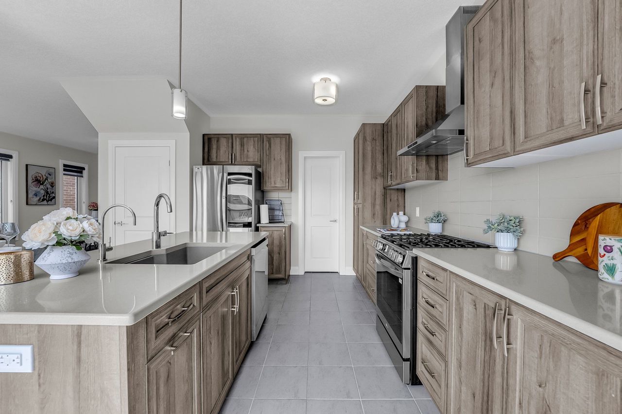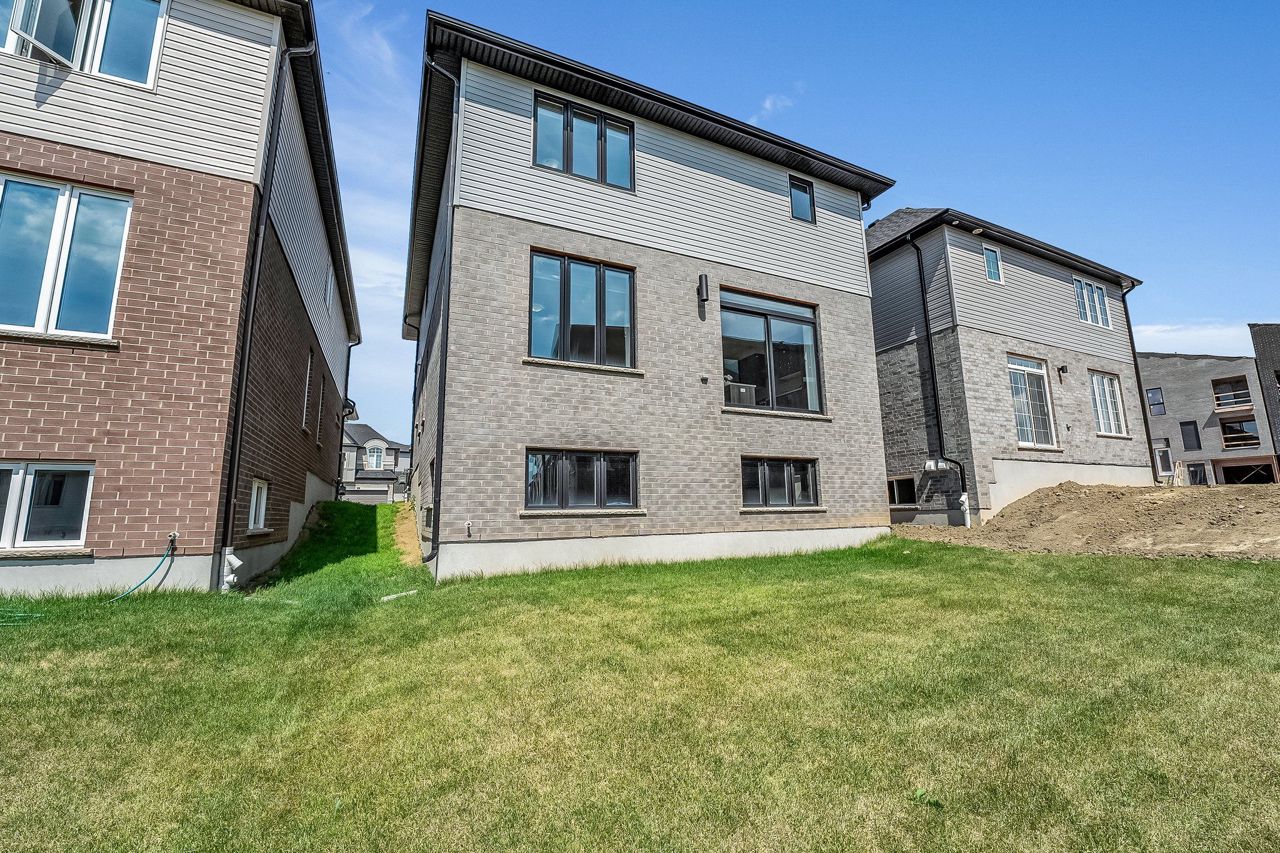 Welcome to Absolutely Gorgeous 10 months old Double Car Detached Home on a Premium Lookout lot in most sought after new subdivision in TRUSSLER WEST neighborhood of Kitchener. Built by Activa, thisHome combines superb craftsmanship and is designed to be Net Zero Ready. On the main floor you will find open space with 9 foot ceilings, large dining & Great Room and an oversized eat-in kitchen with Tile Backsplash & upgraded quartz counters! Kitchen opens onto the beautiful Backyard through upgraded wide slider doors! The Great room sets the stage with Engineered Hardwood Floor with open concept kitchen. This Home Features Lovely 4 Bdrm with 2 Full Washrooms on 2nd Flr offering ample space for family members or guests! The primary bedroom boasts a luxurious walk-in closet and alavish 4-piece ensuite, complete with a stand-up shower, providing a private retreat for relaxation and rejuvenation. 3 additional spacious bedrooms and a 4-piece bath along with an office/den completes the floor.Large Windows Throughout! Unfinished Lookout Basement presents a blank canvas, eagerly awaiting your personal touch to transform it into your dream space. Don't miss this opportunity to be the owner to this stunning home.