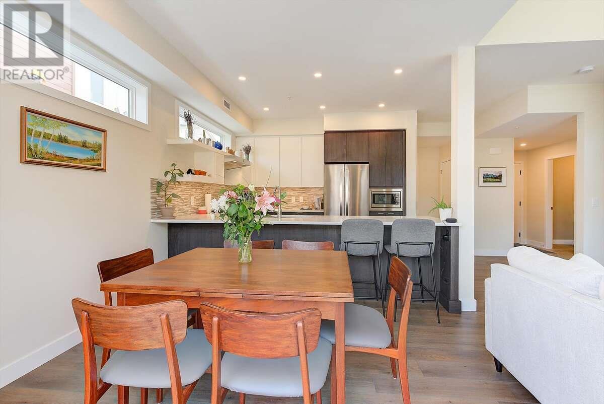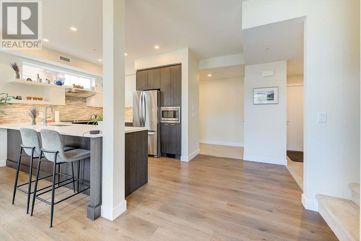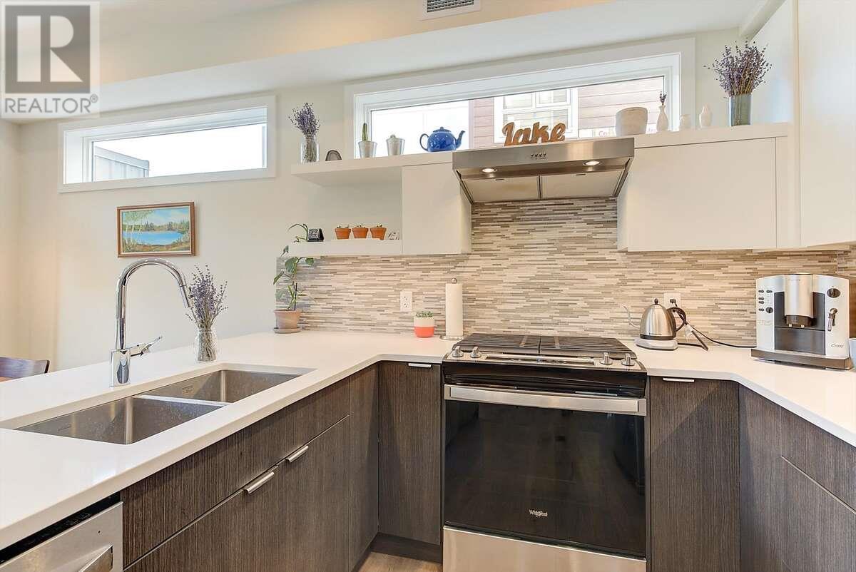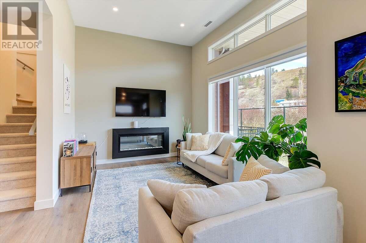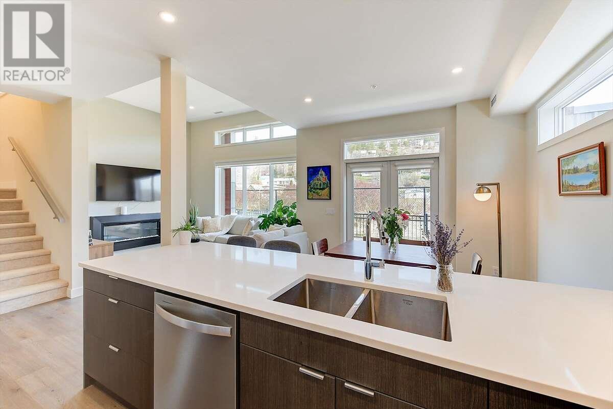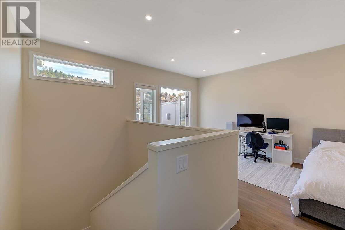 For additional information, please click on Brochure button below. Beautiful 1 year old corner unit townhome in Lake Country backing onto the Rail Trail and green space. Features 3 Bedrooms + 1 loft, 2.5 Bath! No GST. Upgrades include fireplace, entry way tile, two-toned cabinetry and central vacuum in home and in the garage! And an outdoor storage unit, perfect for your bikes. Also includes central air, garden plot and fenced yard space. Swell B' floor plan features main-level living and potentially less stairs than traditional new townhomes! Gorgeous open kitchen with modern two-toned cabinetry, quartz counter-tops, quality stainless steel appliances and a large island. Includes a large patio (with gas BBQ outlet), high ceilings and lots of natural light. Upstairs, the master bedroom features large walk-in closet and ensuite with dual vanities with beautiful tile and glass shower. Two additional bedrooms, laundry and a full guest bathroom complete this floor. The upstairs loft area is an amazing flex/office space or could be used for a 4th bedroom. The roof top private deck is ready for your hot tub! Tranquil and maintenance-free lifestyle. Incredible location - across from tennis courts, 2 parks, Wood Lake and dog beach! UBCO and airport are just minutes away! Measurements supplied by iGuide. (id:22211)