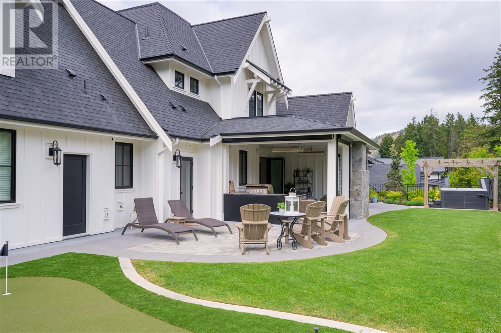 2212 Riviera Place, a custom Modern Farmhouse in one of Bear Mountains' coveted golf course neighbourhoods.Offering over 3200sqft this inviting home boasts a soaring great room with cozy fireplace, dining room complete with oak beams and a quaint snug, the perfect spot to read and unwind.The chefs kitchen presents Dacor appliances,a quartz waterfall island, custom cabinetry and pantry with coffee nook. The primary bedroom is a sanctuary of luxury, featuring a vaulted ceiling, walk in closet and 5 piece ensuite with marble tile,cast iron clawfoot tub and walk in shower. The upper level offers 2 additional bedrooms, a 5 piece bath and a bonus media room. Enjoy the walk out patio with stone fireplace, gas heaters, built in BBQ and putting green. This expansive backyard will allow you to enjoy and entertain all year. A short walk to Bear Mountain Village,two 18 hole Championship Golf Courses and Goldstream Provincial Park,the resort lifestyle awaits.Golf Membership available! (id:22211)