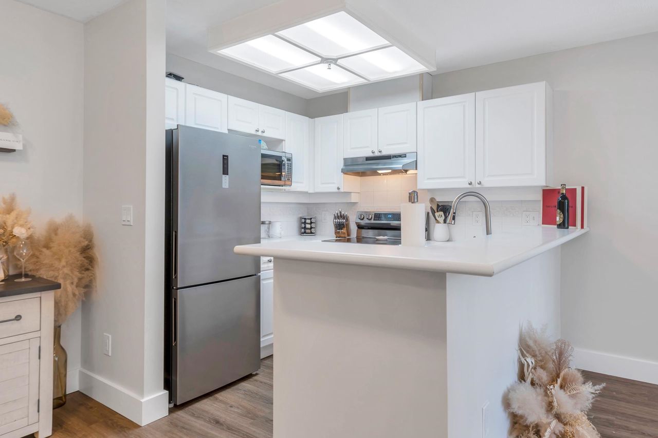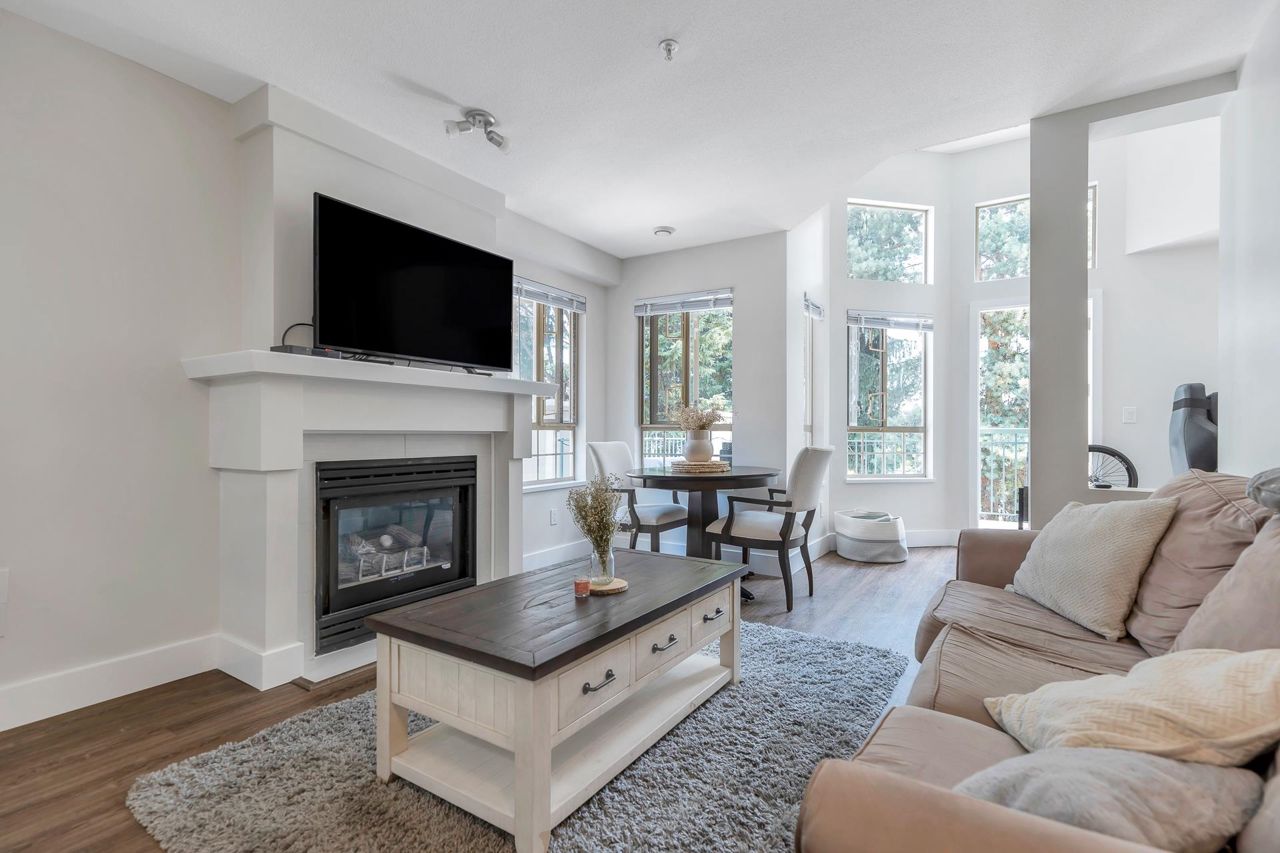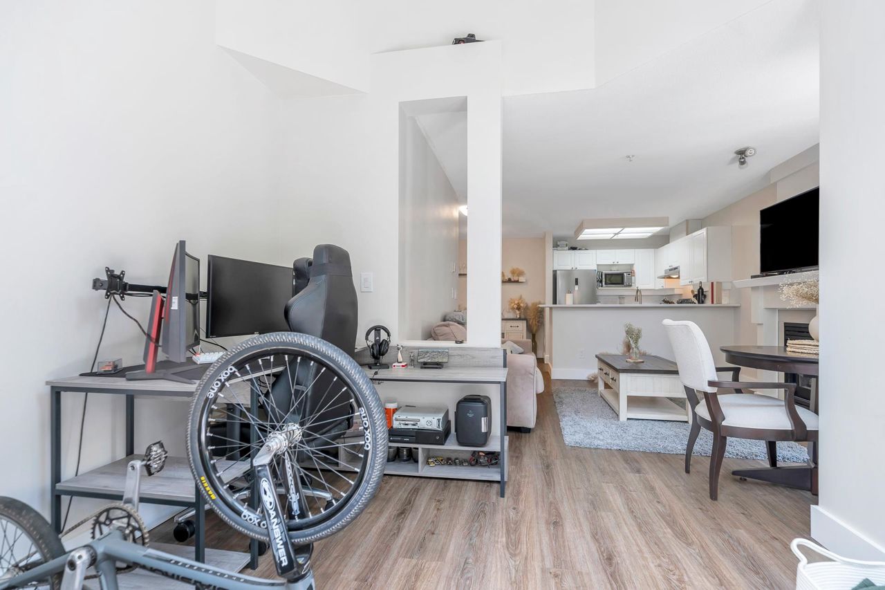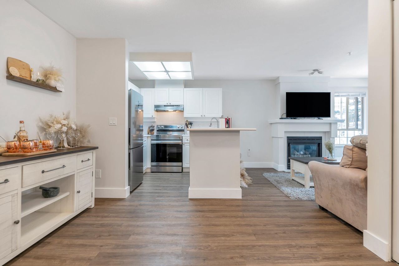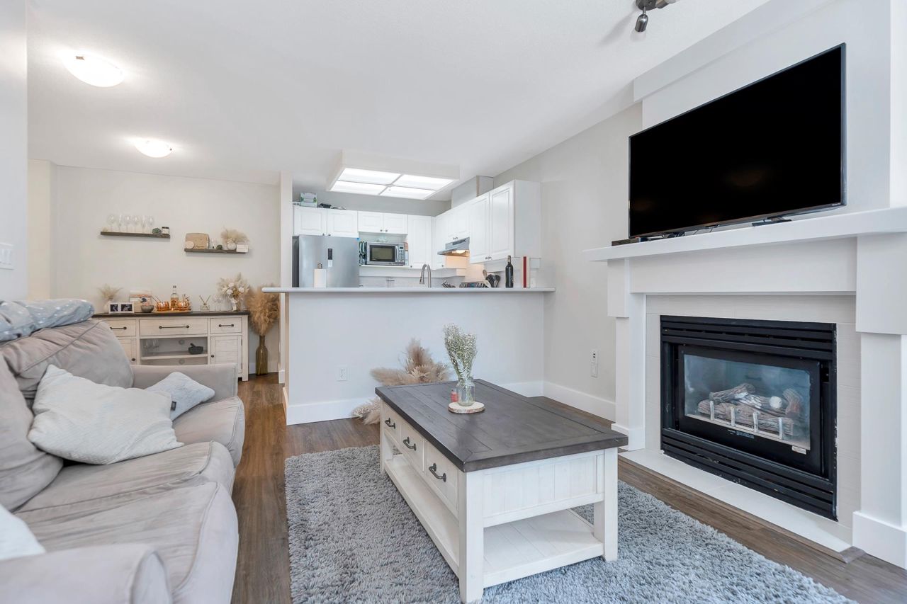 Beautifully maintained Top floor unit. Spacious open plan living area with lovely vinyl plank flooring throughout. Bright contemporary kitchen with timeless white cabinets and a convenient sit up bar. The living room boasts a cozy gas fireplace. A great den area off the living room with high ceilings is perfect for your hobby area or an office. The master bedroom has a large closet and a cheater door to the bathroom for privacy. Large windows provide great natural light. A huge east facing sundeck for your enjoyment and is a wonderful entertaining space for those summer bbq’s. A well run (non smoking) complex with great amenities including a gym and recreation center perfect for private parties. A fabulous location in Murrayville, walk to shops, restaurants, library, pool and recreation.