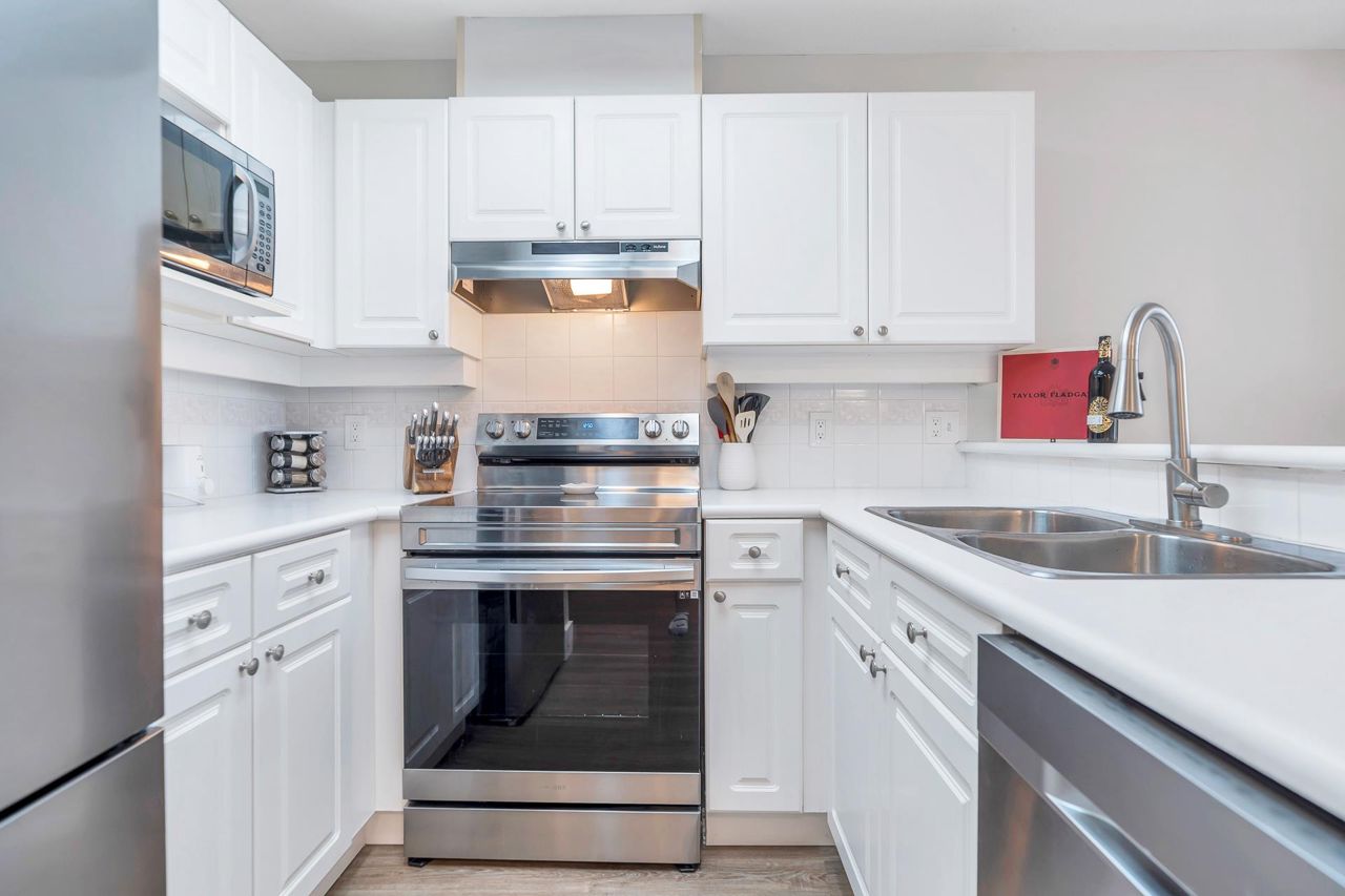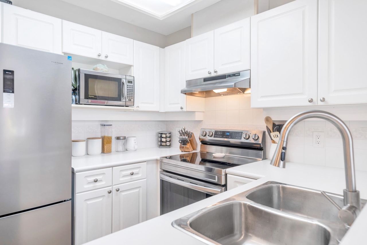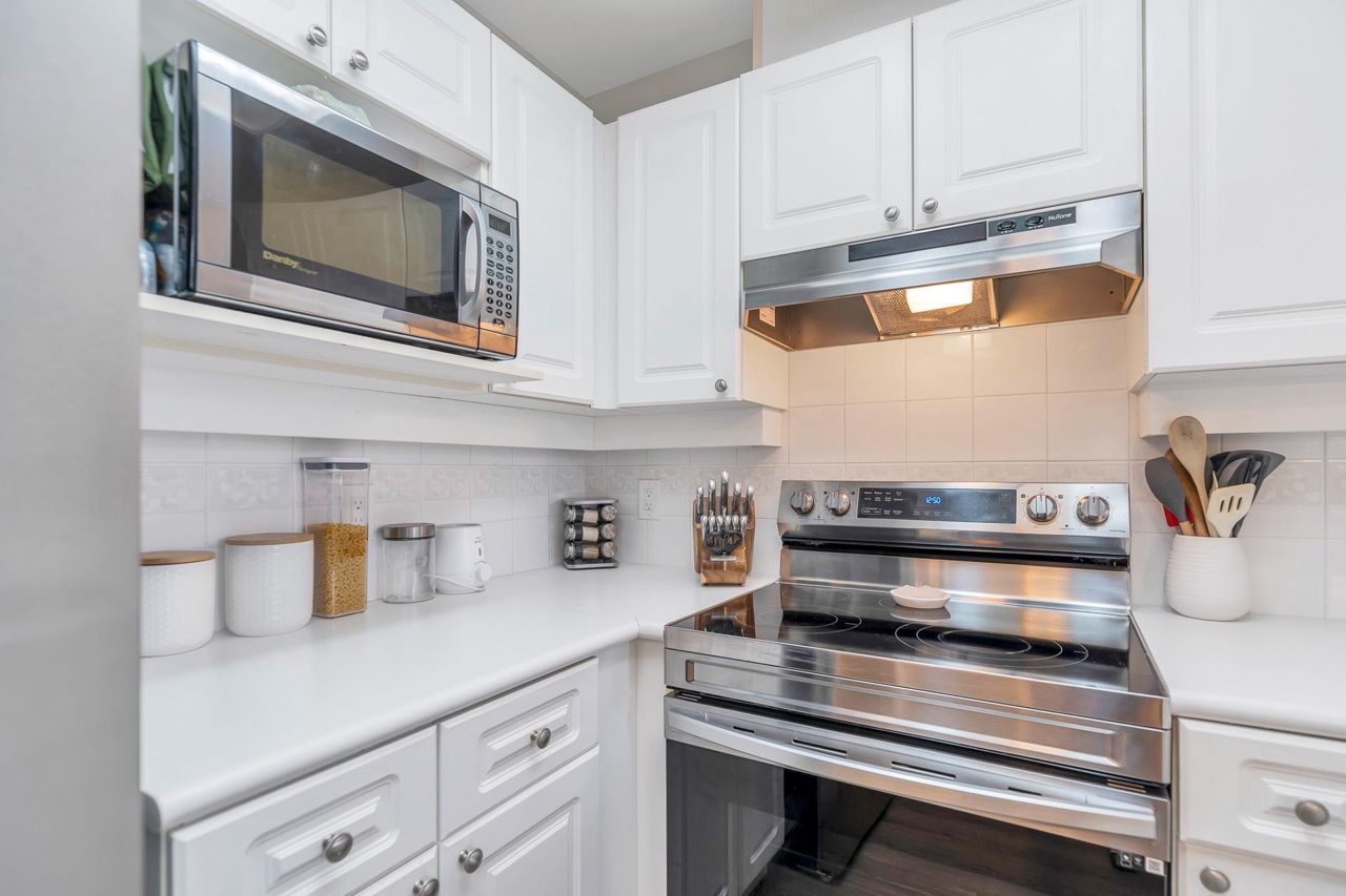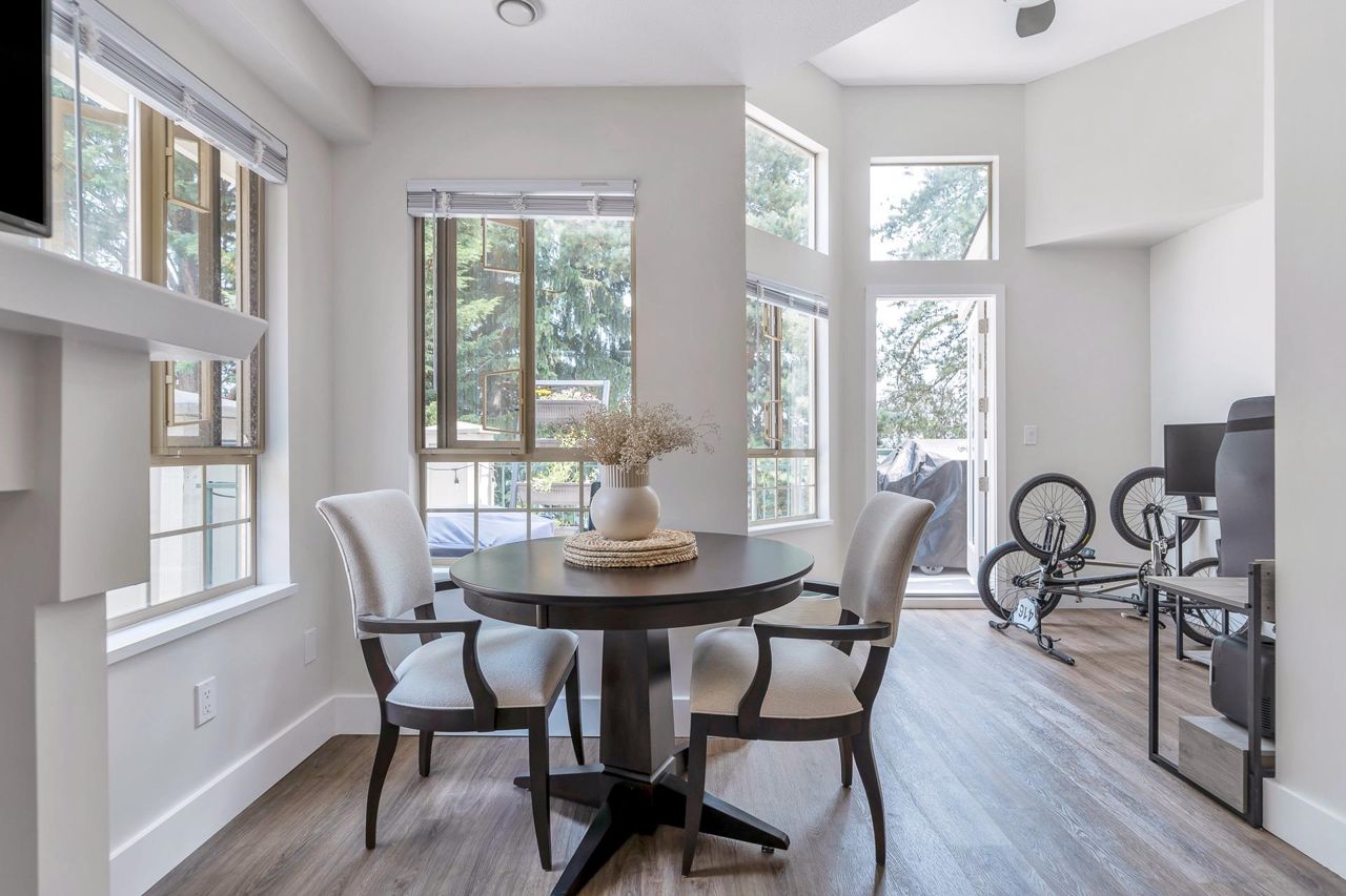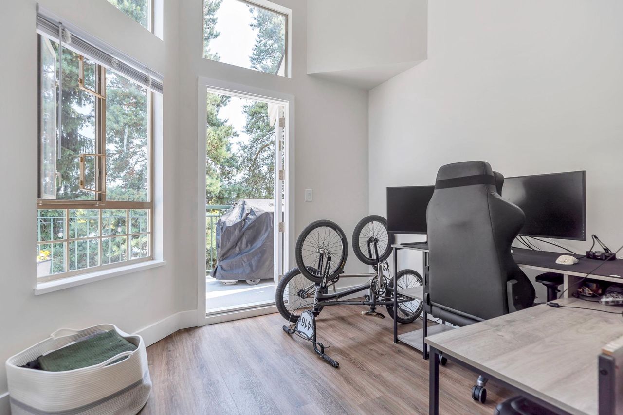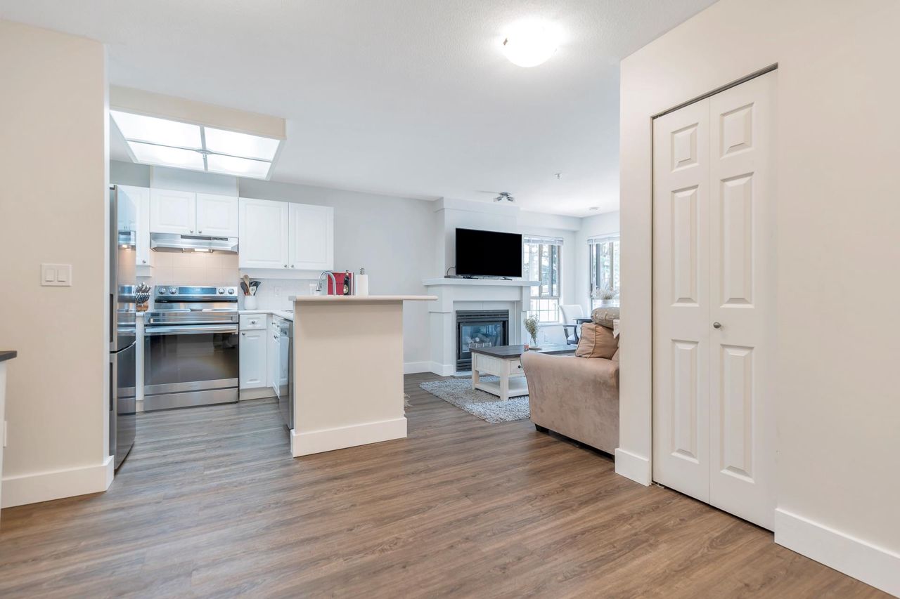 Beautifully maintained Top floor unit. Spacious open plan living area with lovely vinyl plank flooring throughout. Bright contemporary kitchen with timeless white cabinets and a convenient sit up bar. The living room boasts a cozy gas fireplace. A great den area off the living room with high ceilings is perfect for your hobby area or an office. The master bedroom has a large closet and a cheater door to the bathroom for privacy. Large windows provide great natural light. A huge east facing sundeck for your enjoyment and is a wonderful entertaining space for those summer bbq’s. A well run (non smoking) complex with great amenities including a gym and recreation center perfect for private parties. A fabulous location in Murrayville, walk to shops, restaurants, library, pool and recreation.