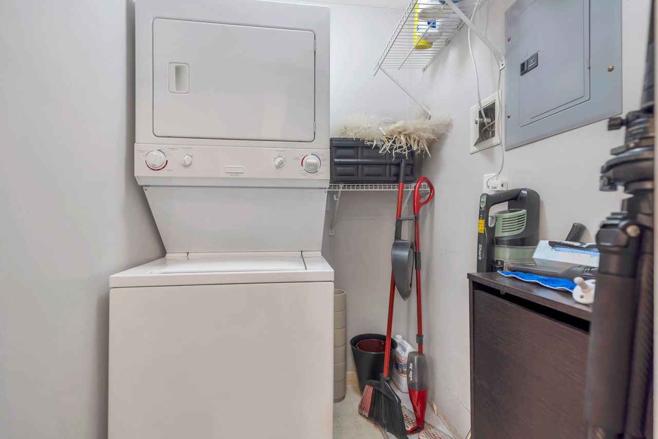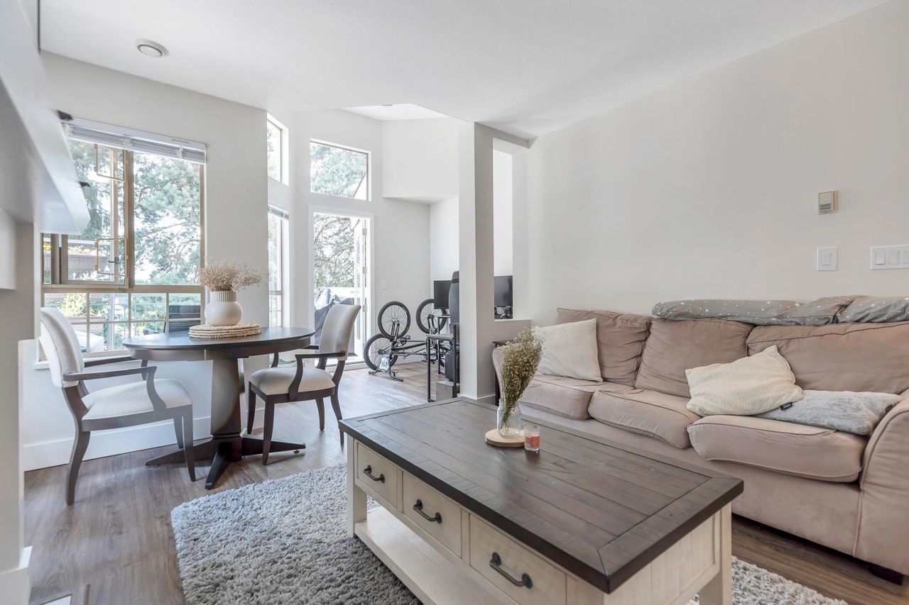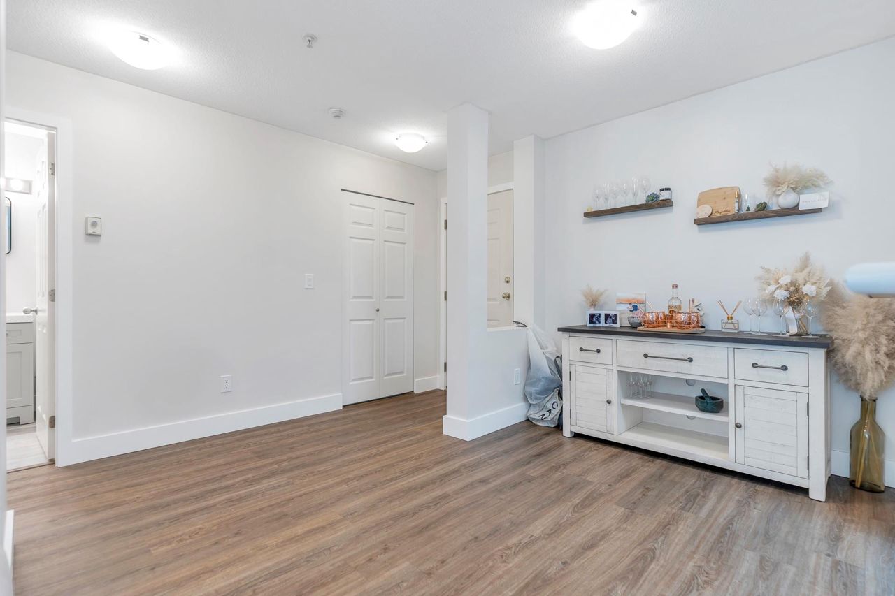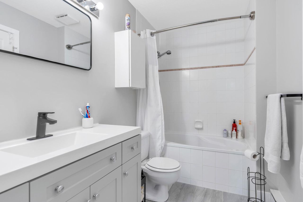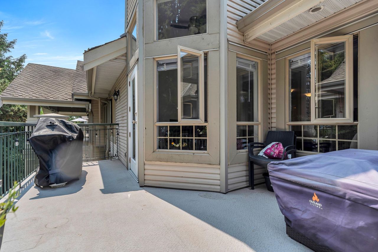 Beautifully maintained Top floor unit. Spacious open plan living area with lovely vinyl plank flooring throughout. Bright contemporary kitchen with timeless white cabinets and a convenient sit up bar. The living room boasts a cozy gas fireplace. A great den area off the living room with high ceilings is perfect for your hobby area or an office. The master bedroom has a large closet and a cheater door to the bathroom for privacy. Large windows provide great natural light. A huge east facing sundeck for your enjoyment and is a wonderful entertaining space for those summer bbq’s. A well run (non smoking) complex with great amenities including a gym and recreation center perfect for private parties. A fabulous location in Murrayville, walk to shops, restaurants, library, pool and recreation.