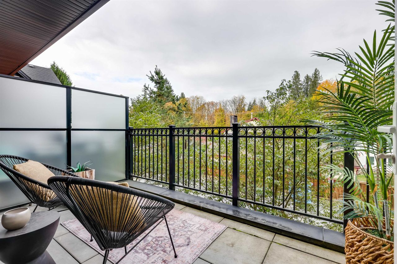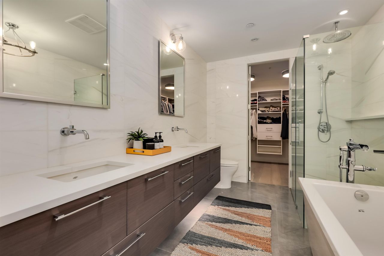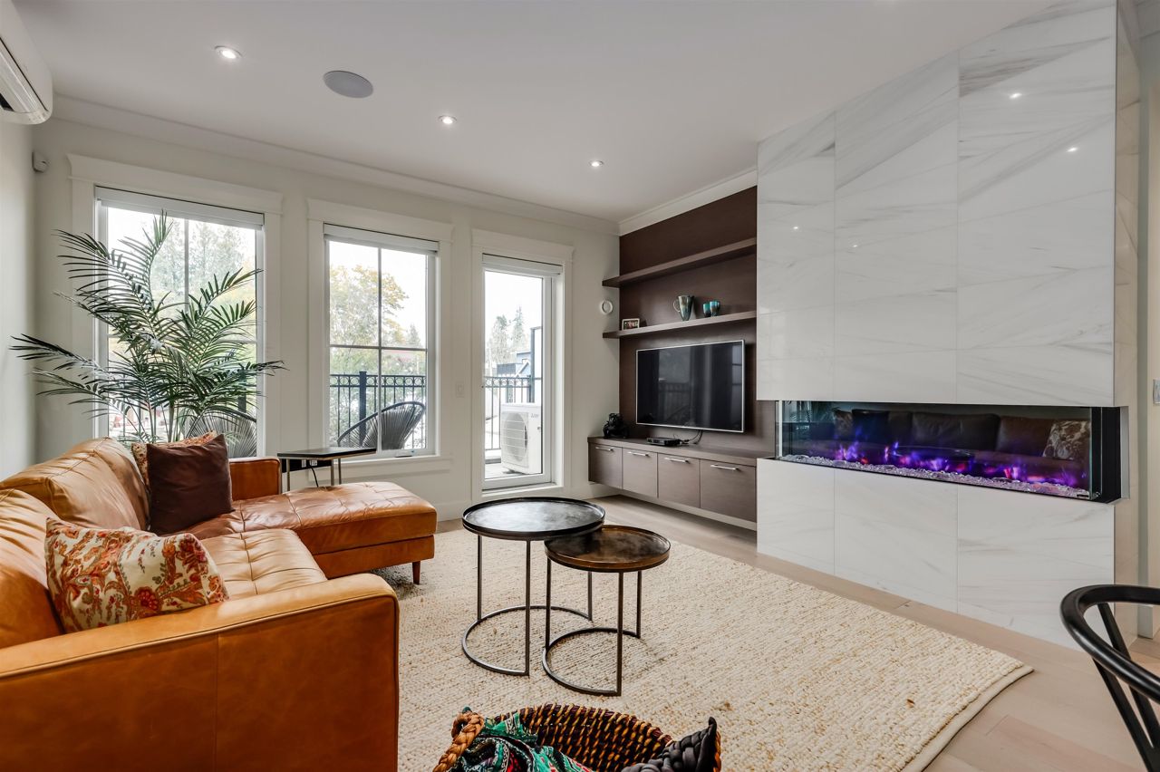 Experience the epitome of Fort Langley living! This 2-bed + den, 2-bath residence exudes luxury with its 9-foot ceilings & top-notch finishes. Revel in the elegance of engineered hardwood flooring that spans the home. The gourmet kitchen, an epicurean's dream, showcases a 6-burner Bertazzoni gas range, Sub-zero refrigerator and wine fridge. The Caesarstone countertops and waterfall edge island add a touch of sophistication. Primary bedrm, you'll find a oversized walk-in closet with custom shelving, ensuring ample storage. The ensuite bathroom features marble-walled elegance, with heated tile floors and a luxurious freestanding soaker tub. You'll have access to the Roof top deck for your large private gatherings, 2 parking stalls & large 7x5 storage locker. Book your private showing today.