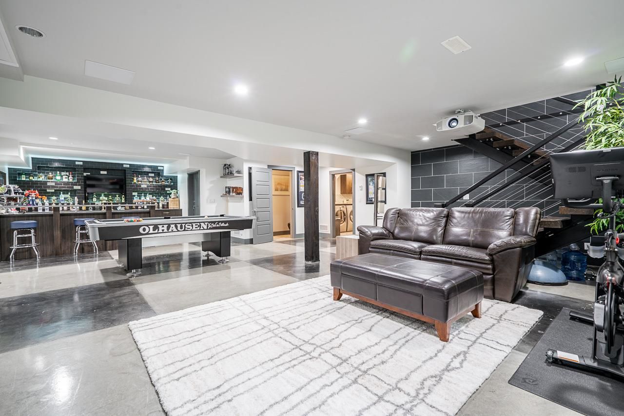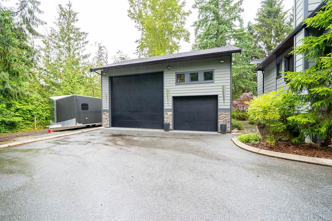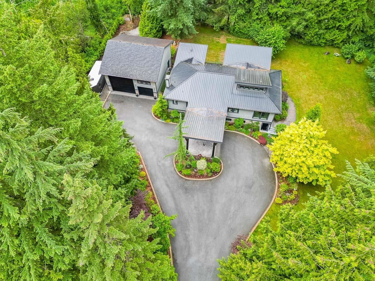 Langley dream home with 1,600 sqft shop! Situated on 1-acre, 4,068 sq ft, 5 beds, and 3 full/2 half baths. Substantially re-built in '09 with 20' ceilings, heated floors, AC, exposed beams, Control 4 automation. Recently added auto-blinds ($35k), 4K theater ($25k), home audio ($25k), security cams. Great room layout kitchen, dining, and family room. 40x16' covered deck with a gas fire pit and hot tub. 3 bdrms up + 2 more and a home office with a separate entrance downstairs. The basement boasts a bar, games area, and a 4K projector for entertainment. A 1,600 sq ft shop with a mezzanine, heat, wifi, and an alarm system accommodates hobbies and toys. Situated on a quiet dead-end street with easy highway access, this private oasis is a must-see. Don't miss out, schedule a viewing today!