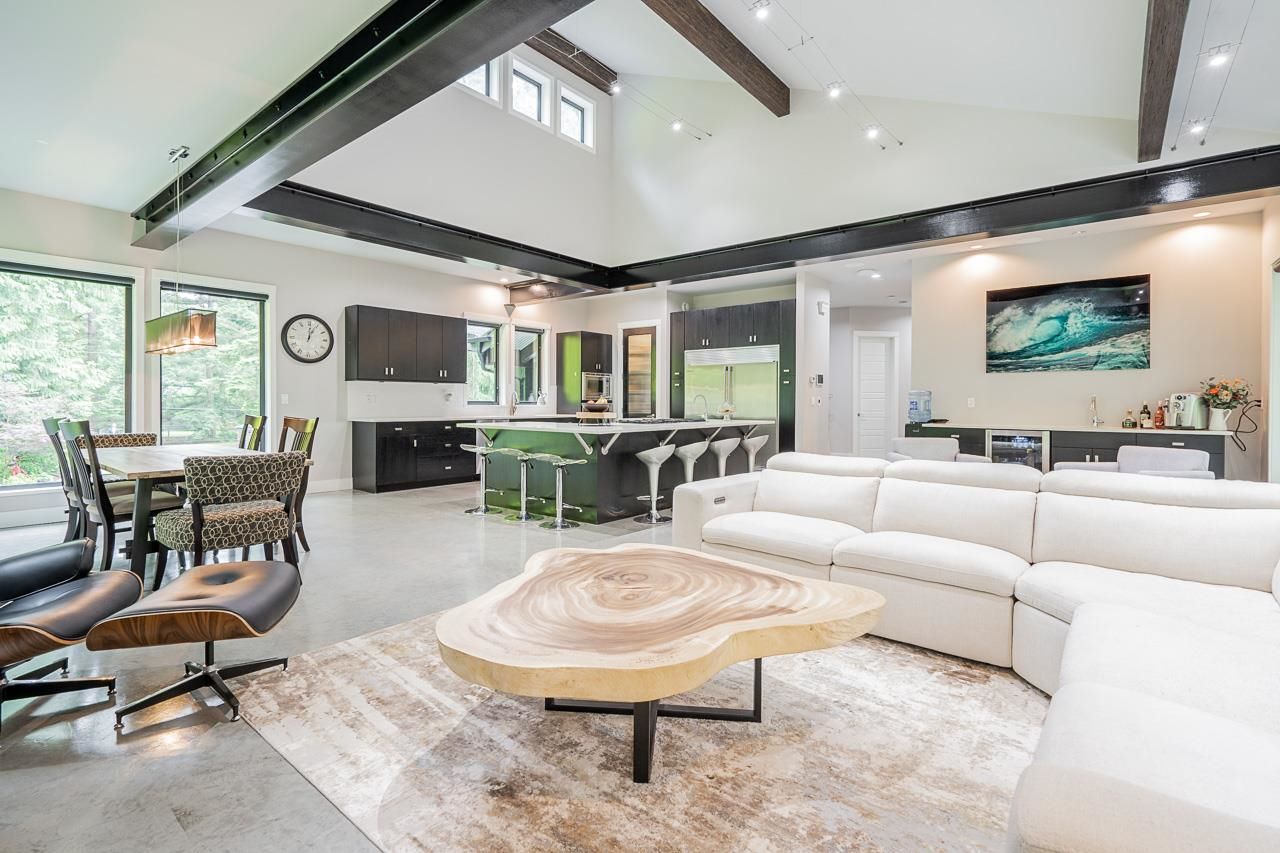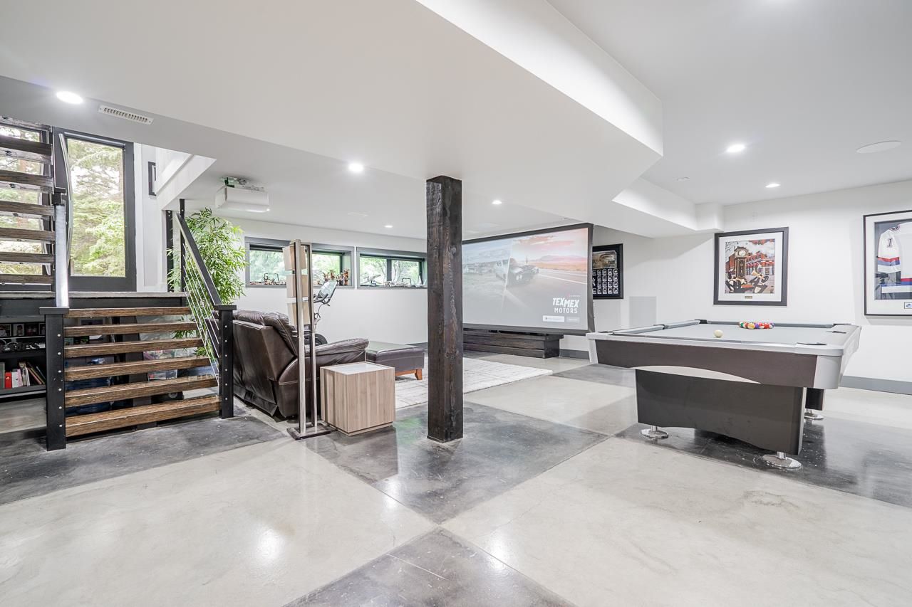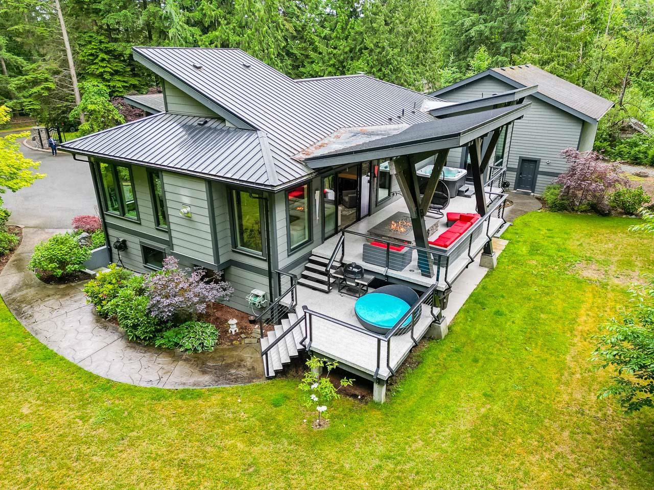 Langley dream home with 1,600 sqft shop! Situated on 1-acre, 4,068 sq ft, 5 beds, and 3 full/2 half baths. Substantially re-built in '09 with 20' ceilings, heated floors, AC, exposed beams, Control 4 automation. Recently added auto-blinds ($35k), 4K theater ($25k), home audio ($25k), security cams. Great room layout kitchen, dining, and family room. 40x16' covered deck with a gas fire pit and hot tub. 3 bdrms up + 2 more and a home office with a separate entrance downstairs. The basement boasts a bar, games area, and a 4K projector for entertainment. A 1,600 sq ft shop with a mezzanine, heat, wifi, and an alarm system accommodates hobbies and toys. Situated on a quiet dead-end street with easy highway access, this private oasis is a must-see. Don't miss out, schedule a viewing today!
