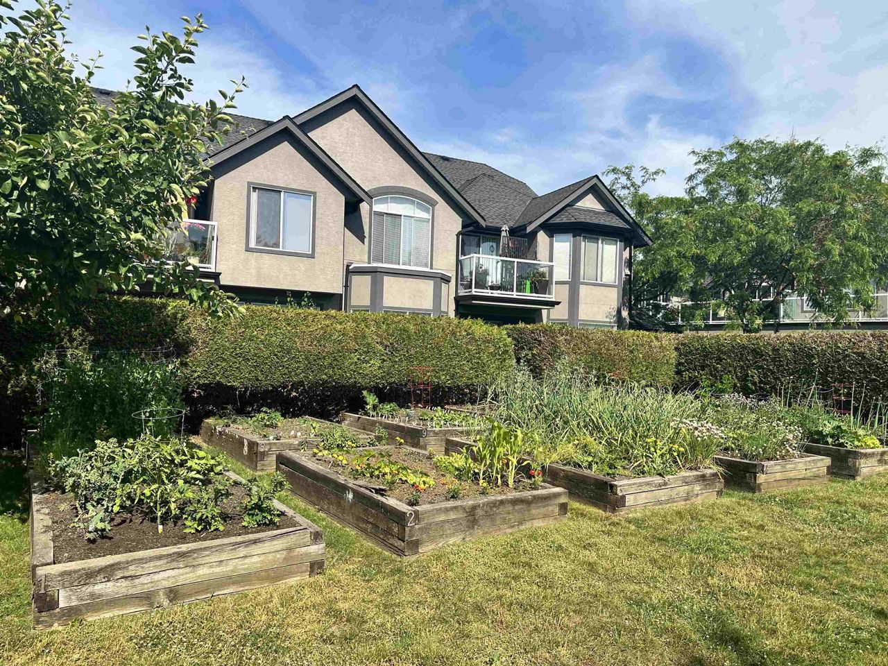 This 1758 sqft UPPER-end unit in the Eaglecrest gated community is your chance to live a QUEIT lifestyle in the heart of Murrayville. A bright and spacious living space, this 2 bed plus den home features vaulted ceilings in the family room, dining room, and primary bedroom for a grand vibe. A bay window living area warmed by a gas fireplace adds coziness while the large family room opens to a sizable deck. The second bedroom has its own private deck, and there's radiant hot water heating and side-by-side laundry. 2 parking (1 garage). Enjoy the quiet and private complex's clubhouse and community gardens, and the convenience of being near transit, recreation, dining, shopping, and services. Rc parking available. Live in style starting today!