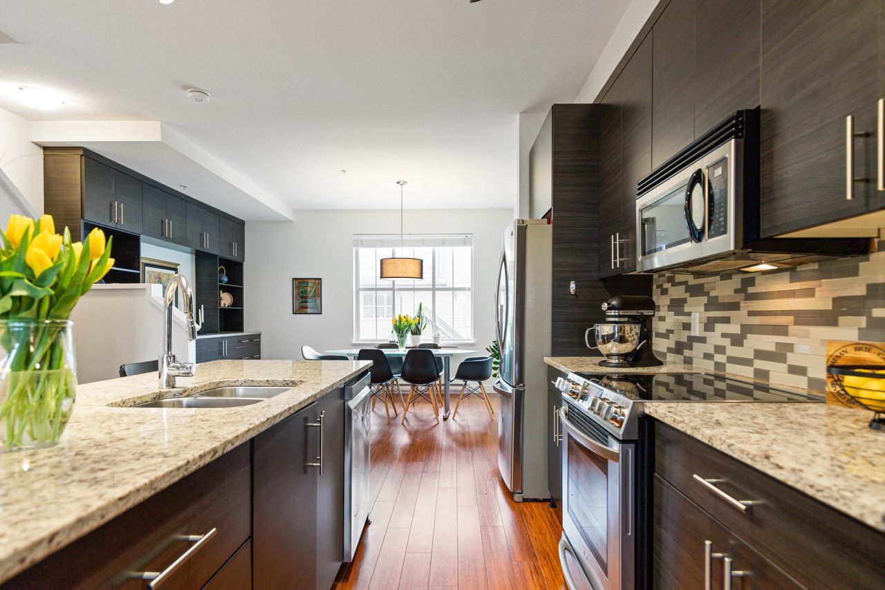 TIME at Walnut Grove. Built by AWARD Winning PARKLANE Homes. This BEAUTIFULLY maintained townhome has 3 full bedrooms plus 2 full baths. The recreation room down could be a 4th bedroom. OPEN CONCEPT MAIN FLOOR features granite countertops, S/S appliances, custom BUILT INS in the dining area, 9' ceilings. The large covered balcony off the living room plus a lovely covered patio down off the (bedroom or rec room) that opens onto the fenced yard. Bedrooms have custom closet organizers. Pets allowed. Located in Walnut Grove with easy access to HWY 1, Golden Ears Bridge, Carvolth Exchange and the Langley Greenway. Close to all levels of schools, recreation and shopping.