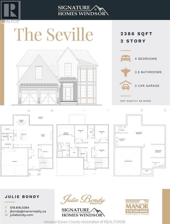 WELCOME TO SIGNATURE HOMES WINDSOR NEWEST 2 STORY MODEL ""THE SEVILLE "" . LOCATED IN TRINITY WOODS IN LASALLE SURROUNDED BY NATURE AND CONSERVATION AREAS . NO REAR YARD NEIGHBOURS, CONSERVATION GREENSPACE ON BOTH SIDES PLUS A DEAD END CUL DE SAC. THIS 2 STY DESIGN HOME FEATURES GOURMET KITCHEN W/LRG CENTRE ISLAND FEATURING GRANITE/ STONE COUNTERS THRU-OUT AND HUGE WALK IN KITCHEN PANTRY WITH CABINTRY AND COUNTERTOPS. A BEAUTIFUL DINING AREA OVERLOOKING REAR YARD WITH VIEW OF CONSERVATION AND SPACIOUS COVERED REAR PORCH. OPEN CONCEPT FAMILY ROOM WITH MODERN STYLE FIREPLACE. 4 UPPER LEVEL BEDROOMS. MAIN FLOOR BEDROOM OR FLEX ROOM TO BE AN OFFICE OR EXTRA REC ROOM . STUNNING MASTER SUITE WITH TRAY CEILING, ENSUITE BATH WITH HIS & HER SINKS WITH CUSTOM GLASS SURROUND SHOWER WITH FREESTANDING GORGEOUS TUB. SIGNATURE HOMES EXCEEDING YOUR EXPECTATION IN EVERY WAY! . TRINITY WOODS LOTS AVAILABLE LOTS 12-14 OKE, LOTS 16-17 MAYFAIR SOUTH . CALL TO INQUIRE ! L/S RELATED TO OWNER FLOOR PLAN / LIST OF LOTS AVAILABLE AND MAP OF LOTS AVAILABLE UNDER DOCUMENTS OR REQUEST TO L/S . EXISTING MODEL IS CURRENTLY AT 2512 MAYFAIR SOUTH (id:61201)