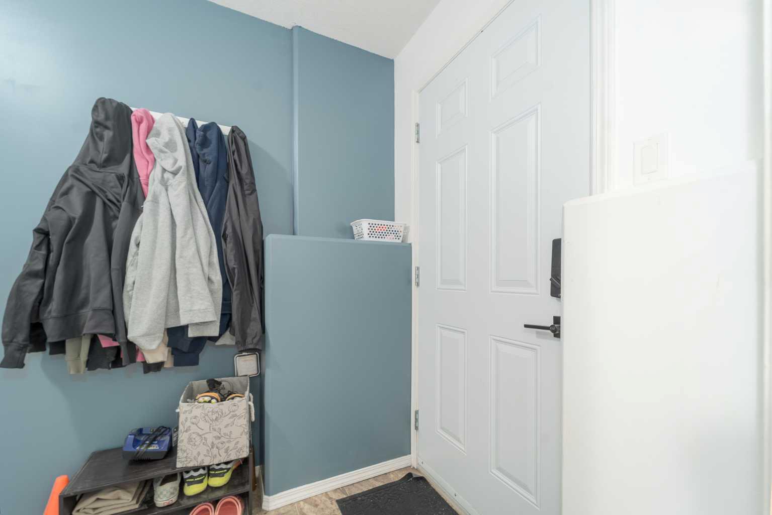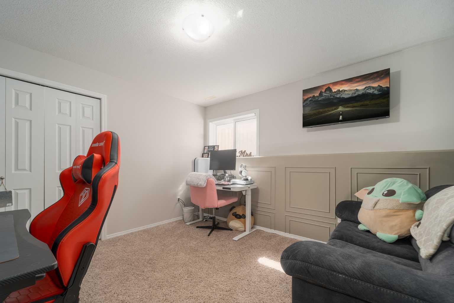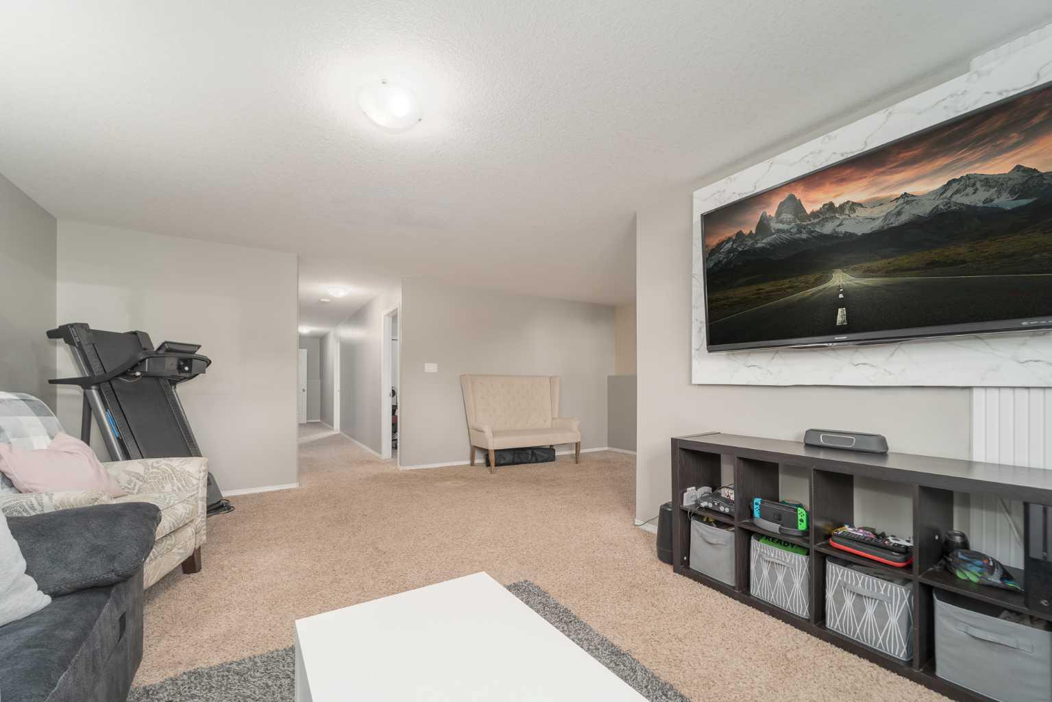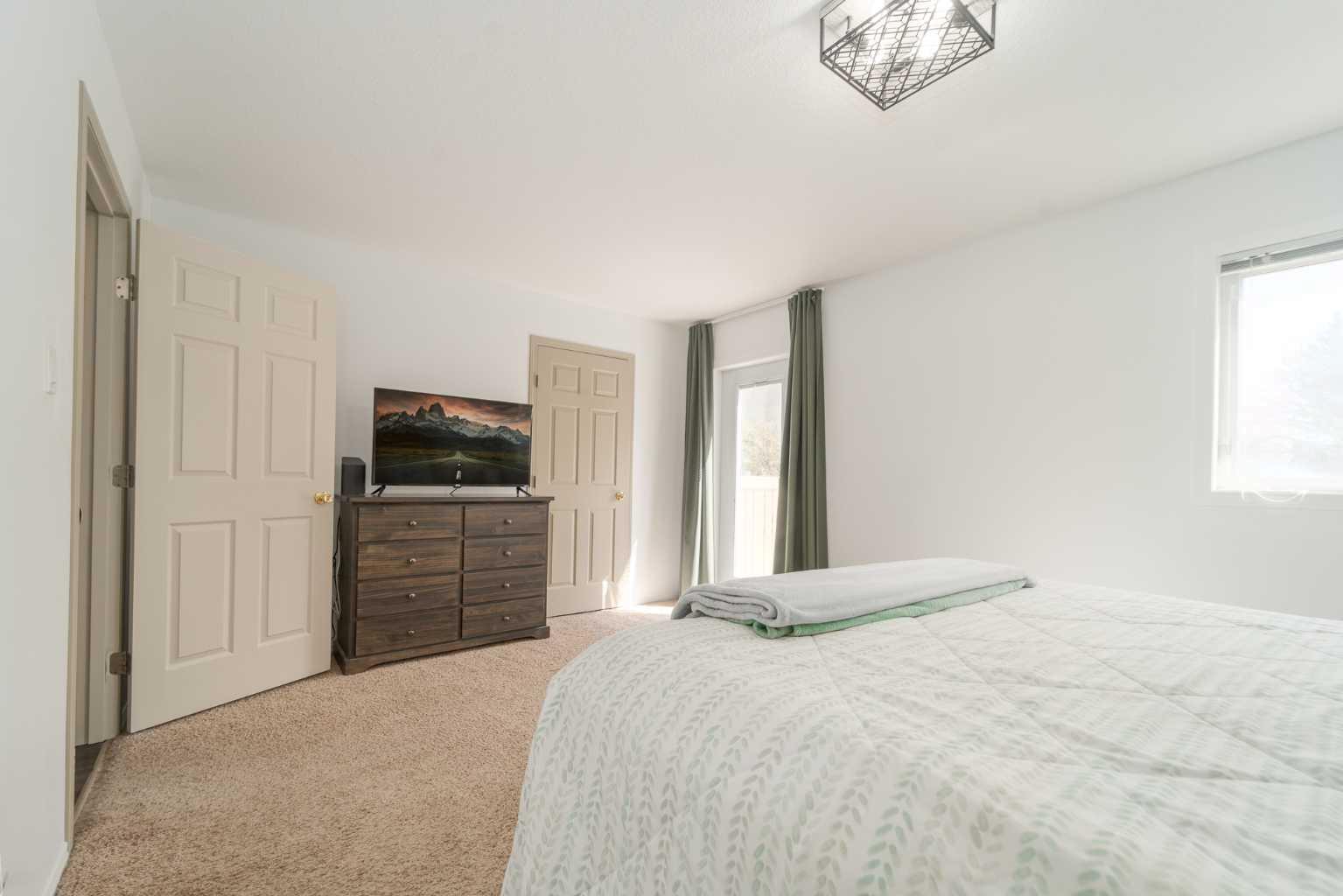 The main floor includes two bedrooms, including a generous primary suite with a walk-in closet and direct access to the back deck. A full 4-piece bathroom completes the level.