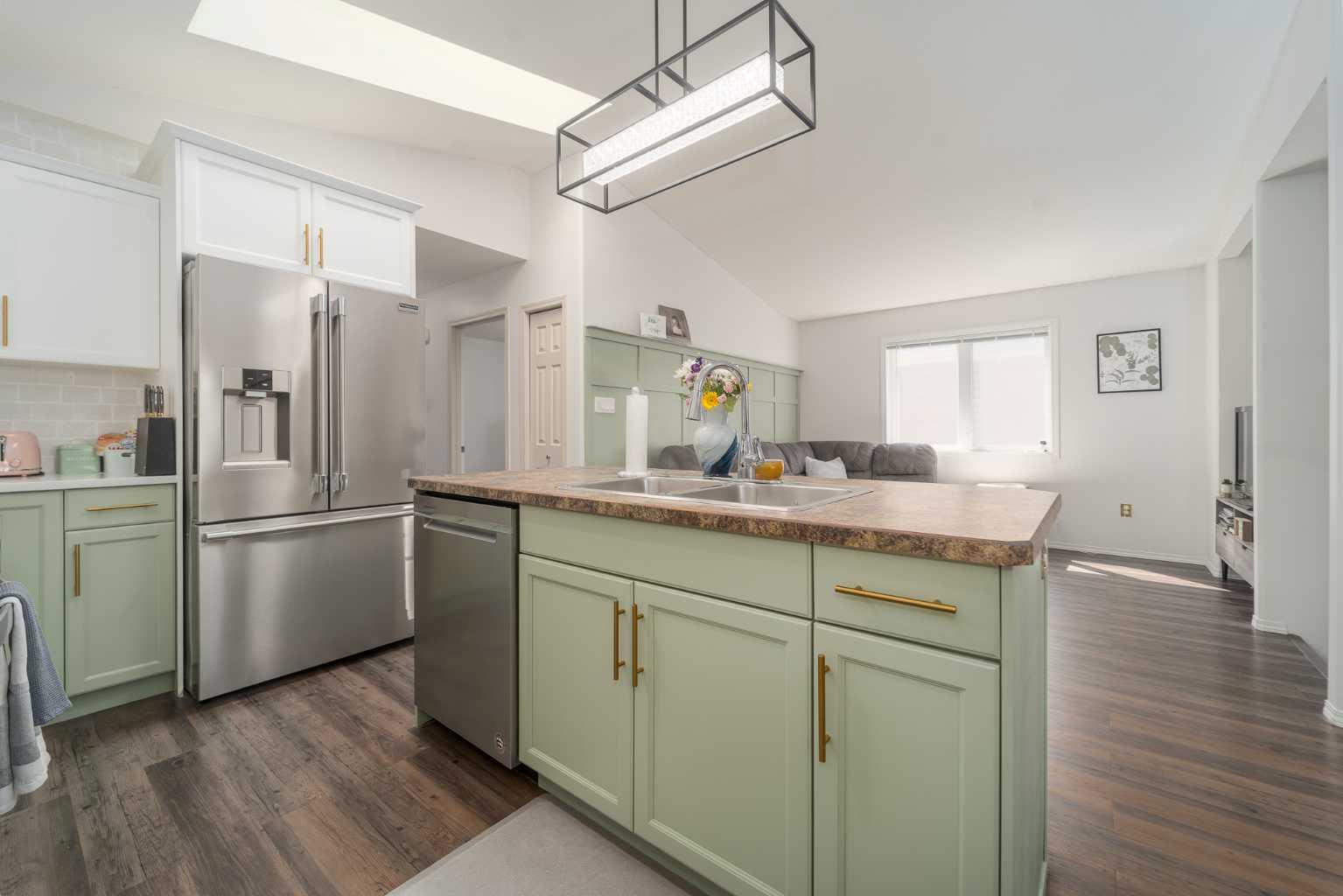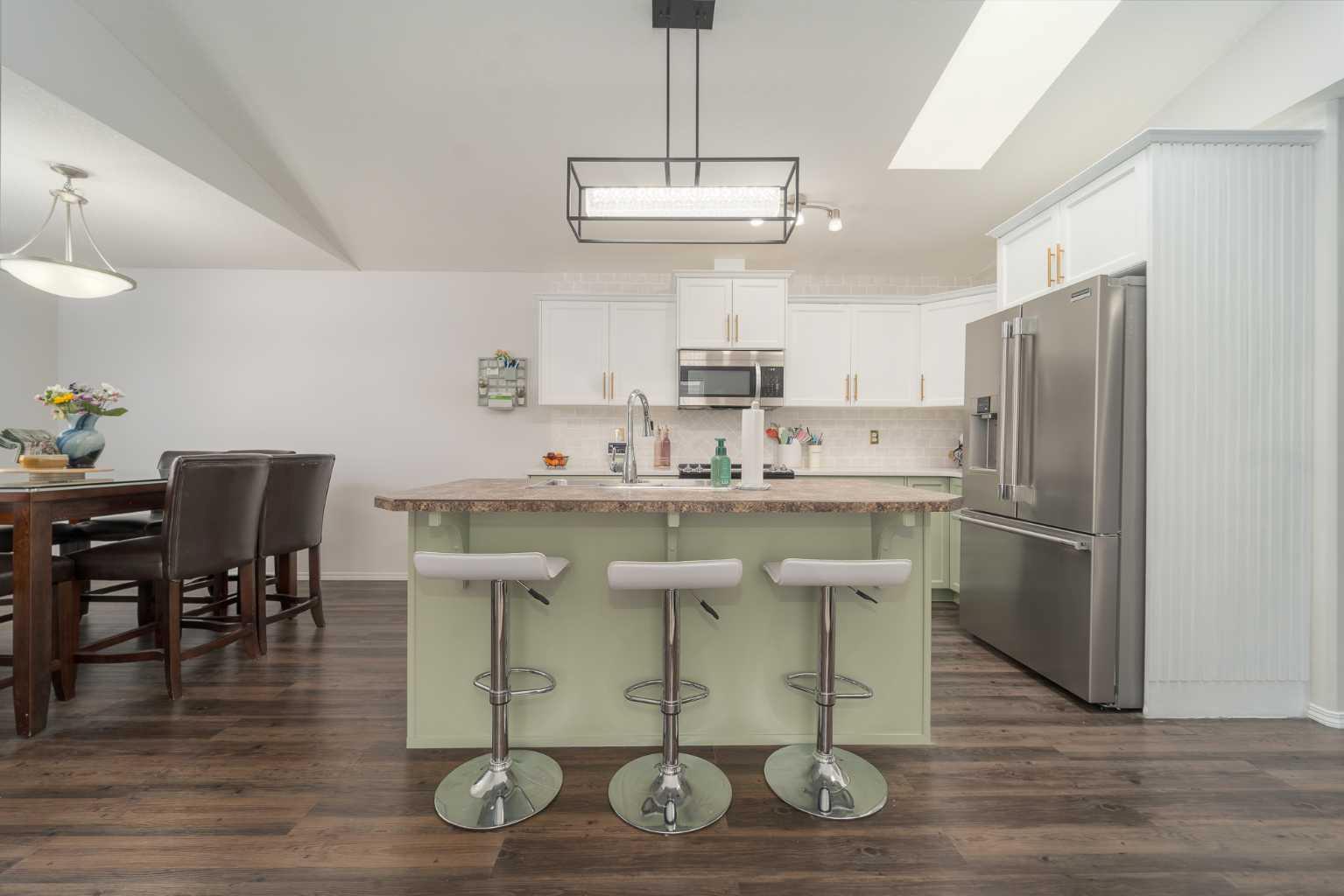 This bright and well-maintained 4-bedroom, 2-bath half duplex offers a functional open-concept layout with vinyl plank flooring throughout the main level. The kitchen is equipped with a large island, stainless steel appliances, and an oversized walk-in pantry—ideal for both everyday living and entertaining. A skylight brings in plenty of natural light to the spacious dining area.